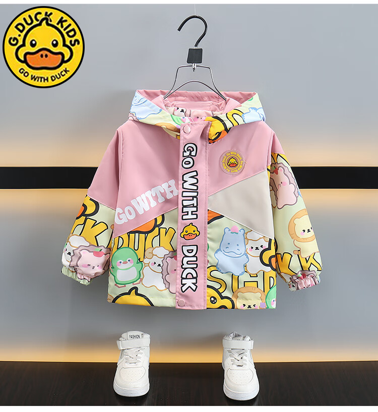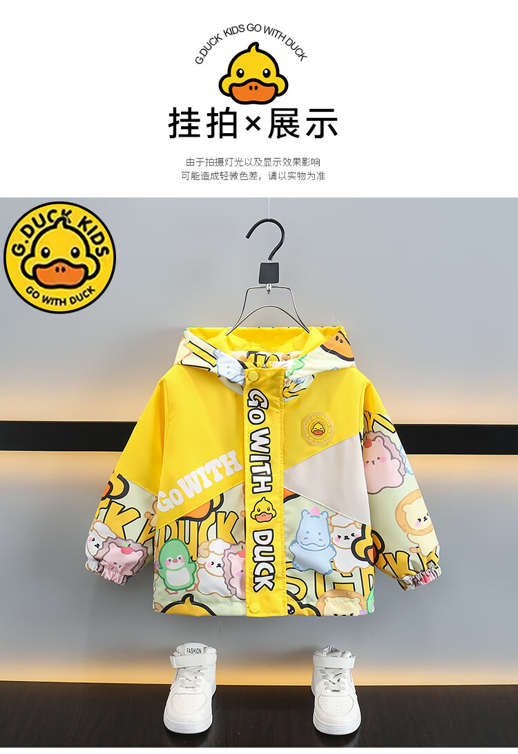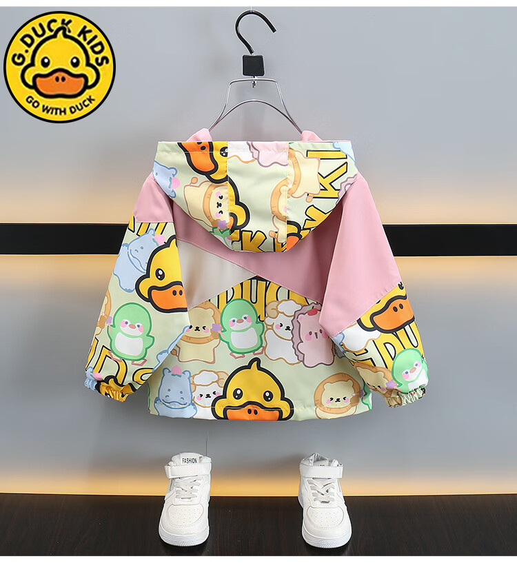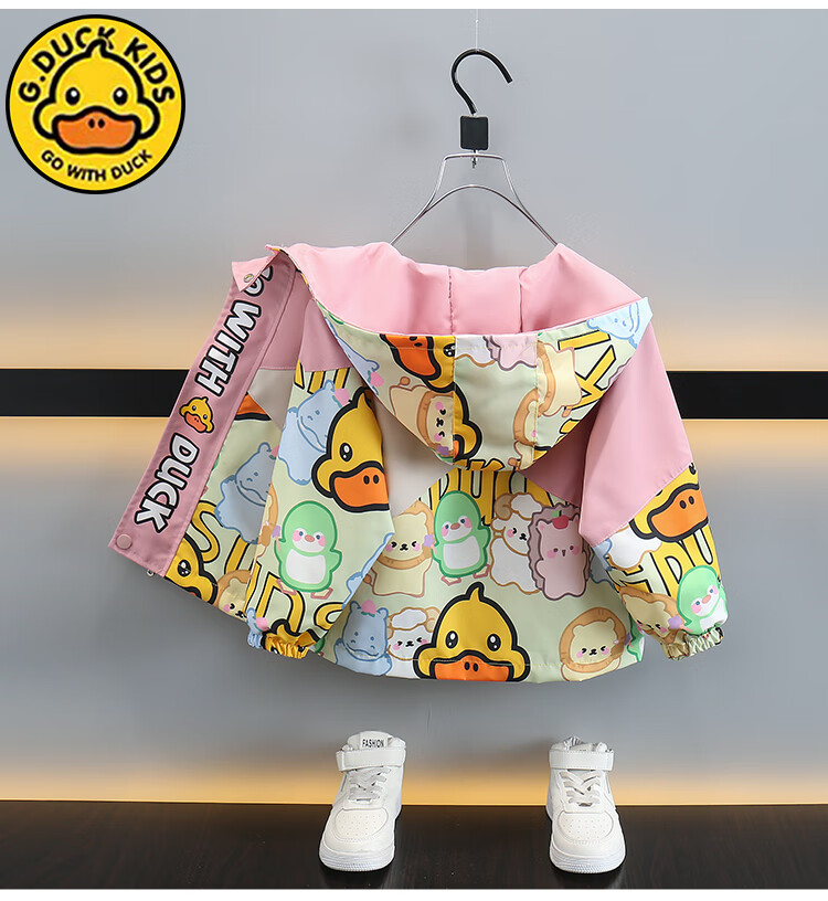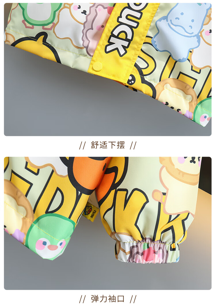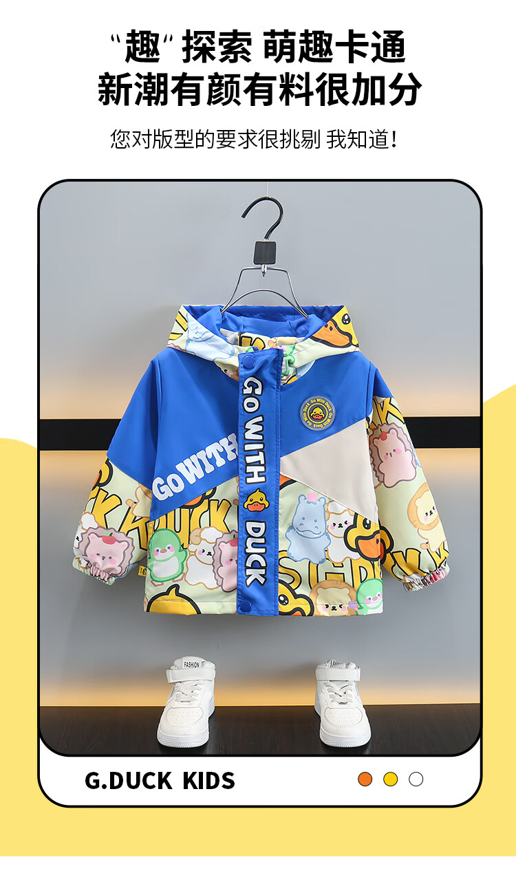 Little yellow duck hooded windbreaker, children's jacket, men's and women's baby jacket, casual fashion jacket, trendy blue light jacket 130