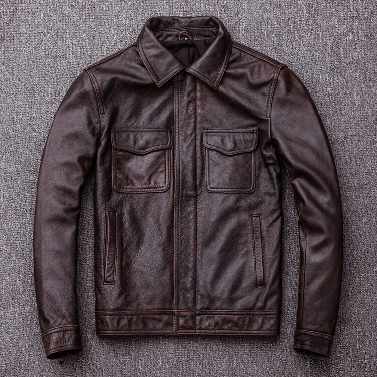 Пугало Распродажа Действительно хорошая кожаная куртка Мужская специальная цена Короткая кожаная куртка с лацканами для людей молодого и среднего возраста Хлопковая кожаная куртка большого размера Осенне-зимний тренд Тонкая секция Красный Коричневый Состаренный 2XL