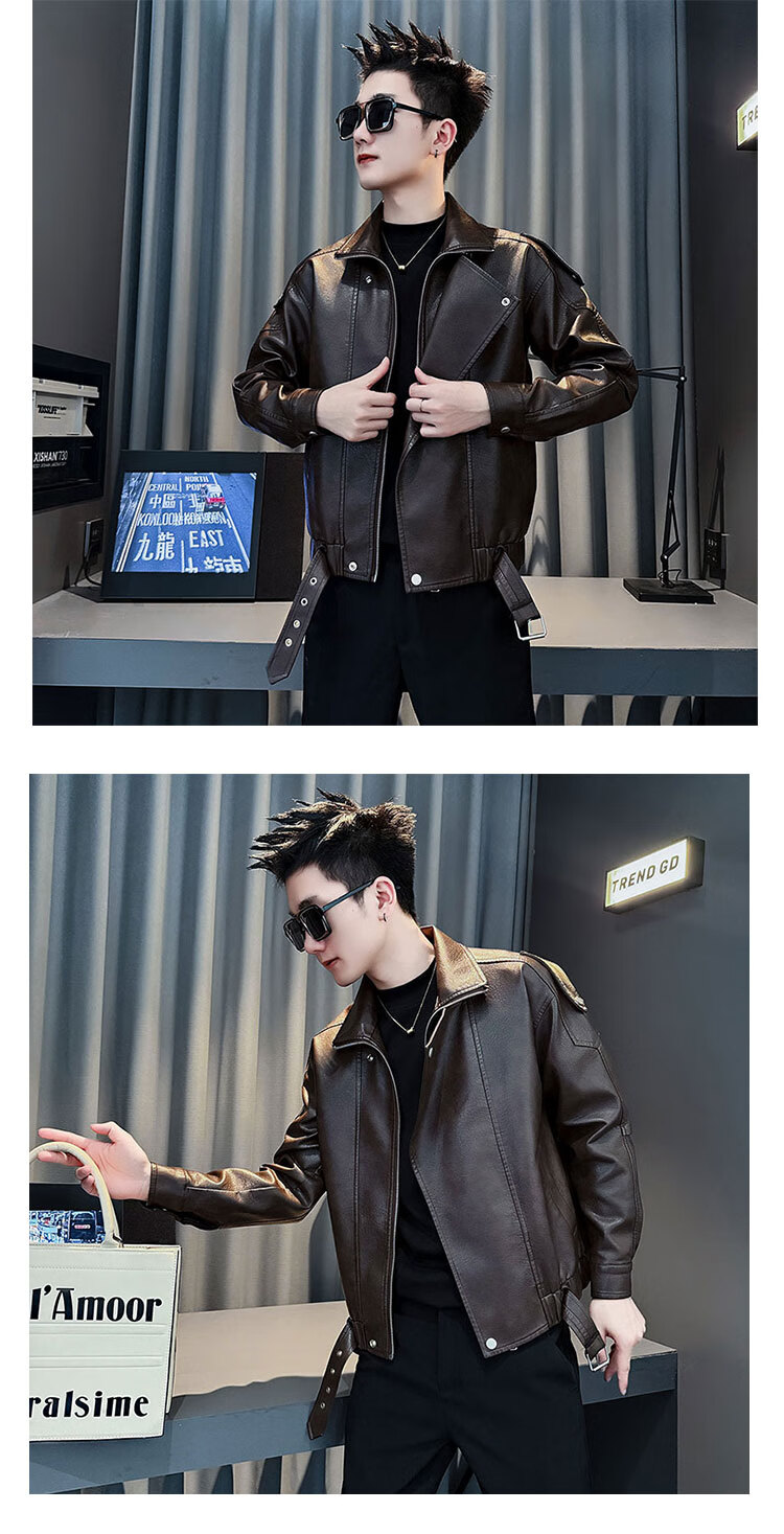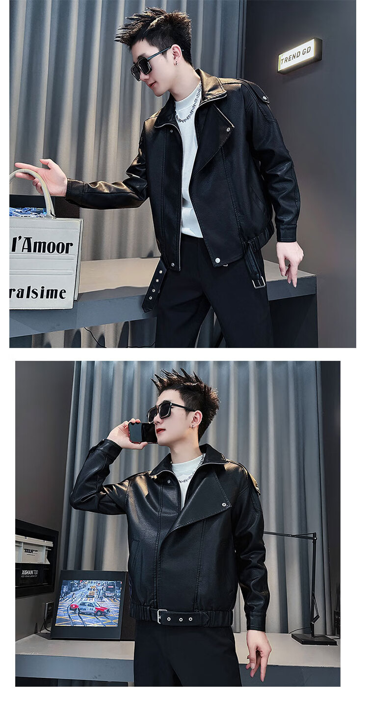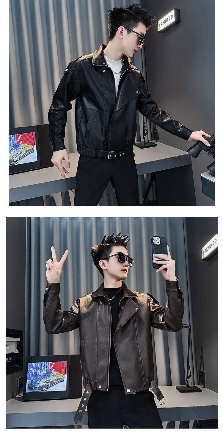 Jason leather jacket men's autumn and winter trendy brand short motorcycle men's tops 2025 new trend handsome leather jacket JK244 black M