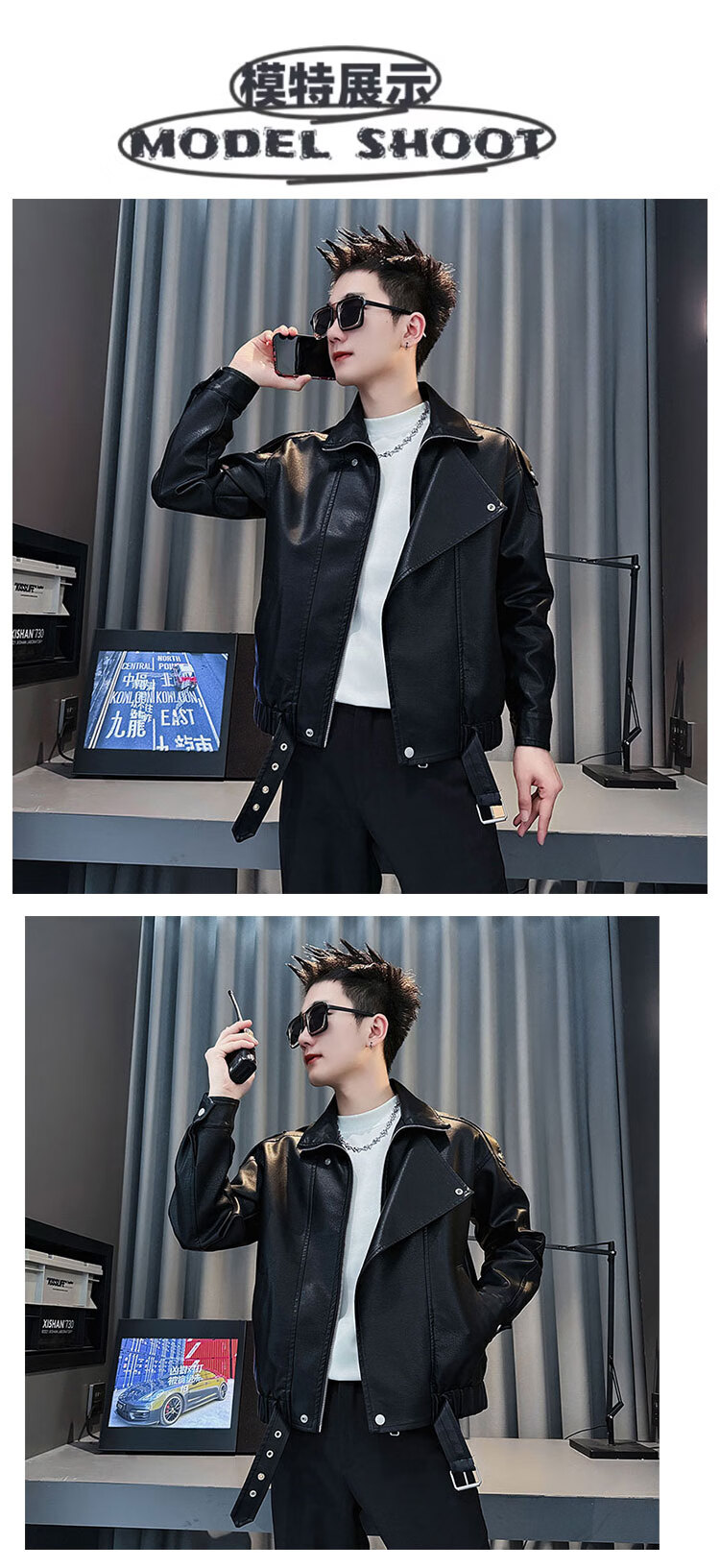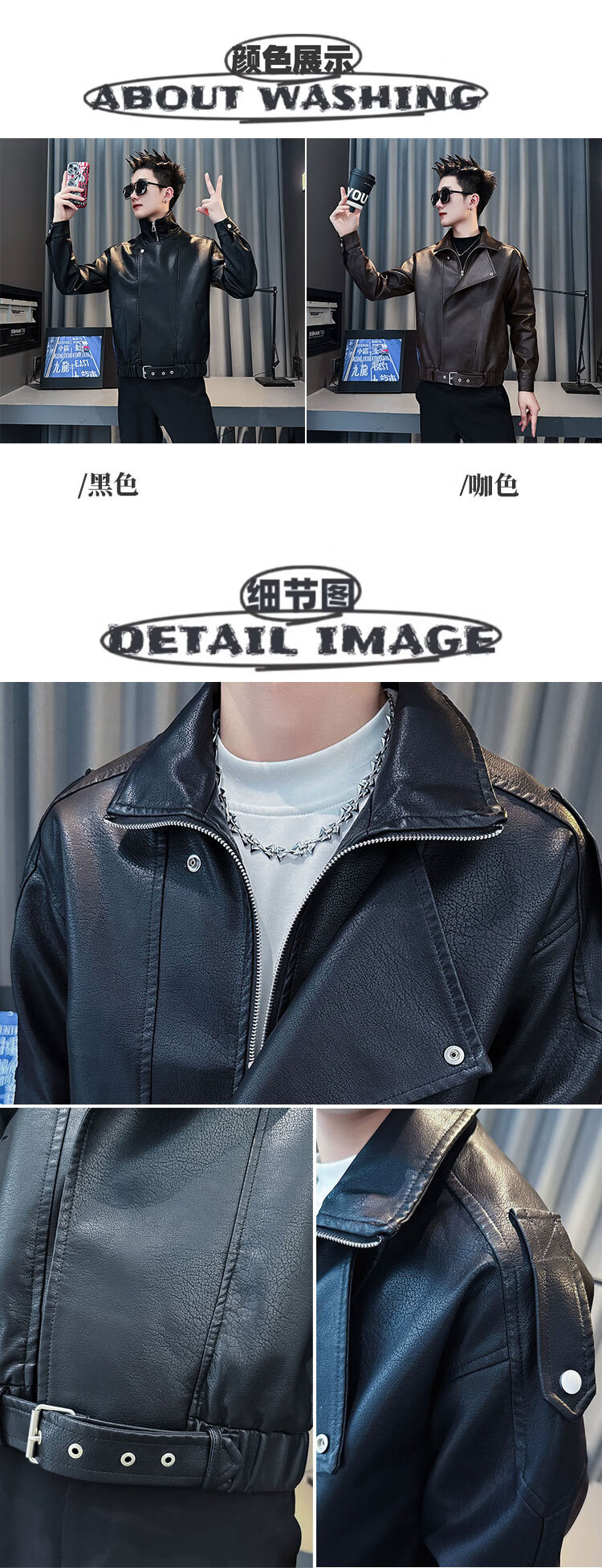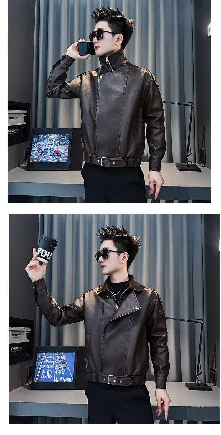 Jason leather jacket men's autumn and winter trendy brand short motorcycle men's tops 2025 new trend handsome leather jacket JK244 black M