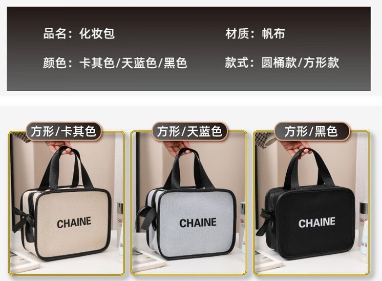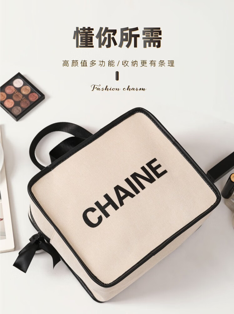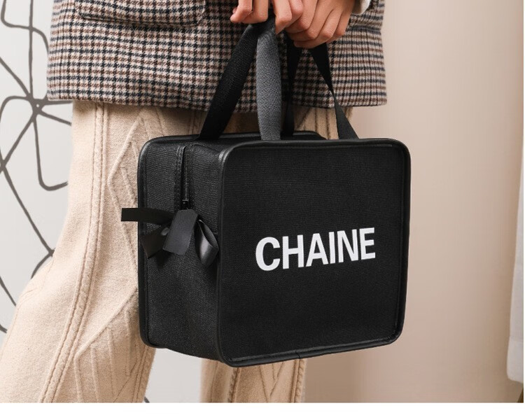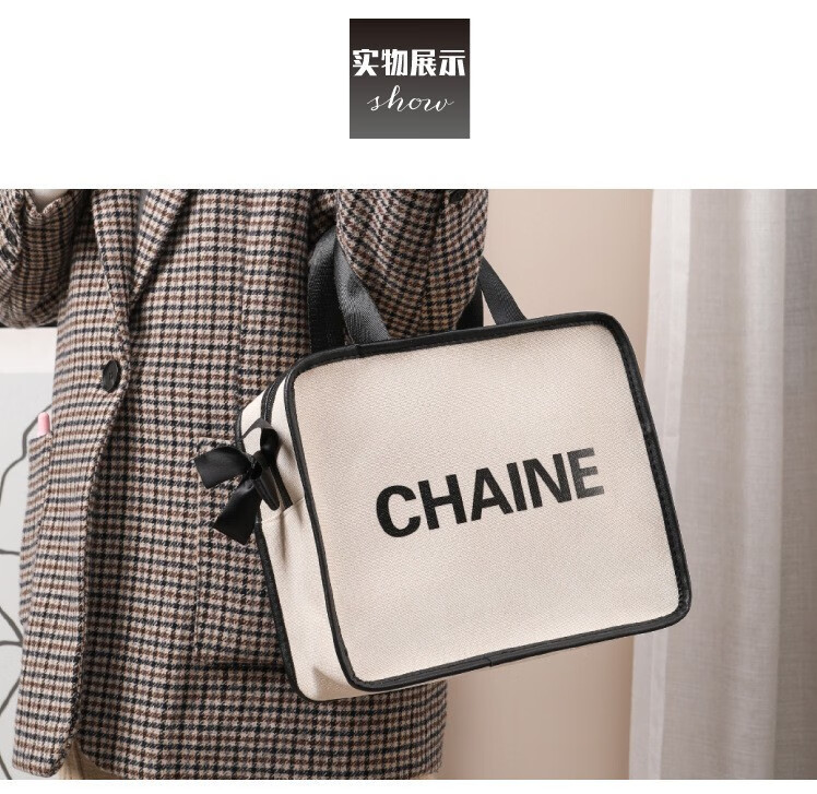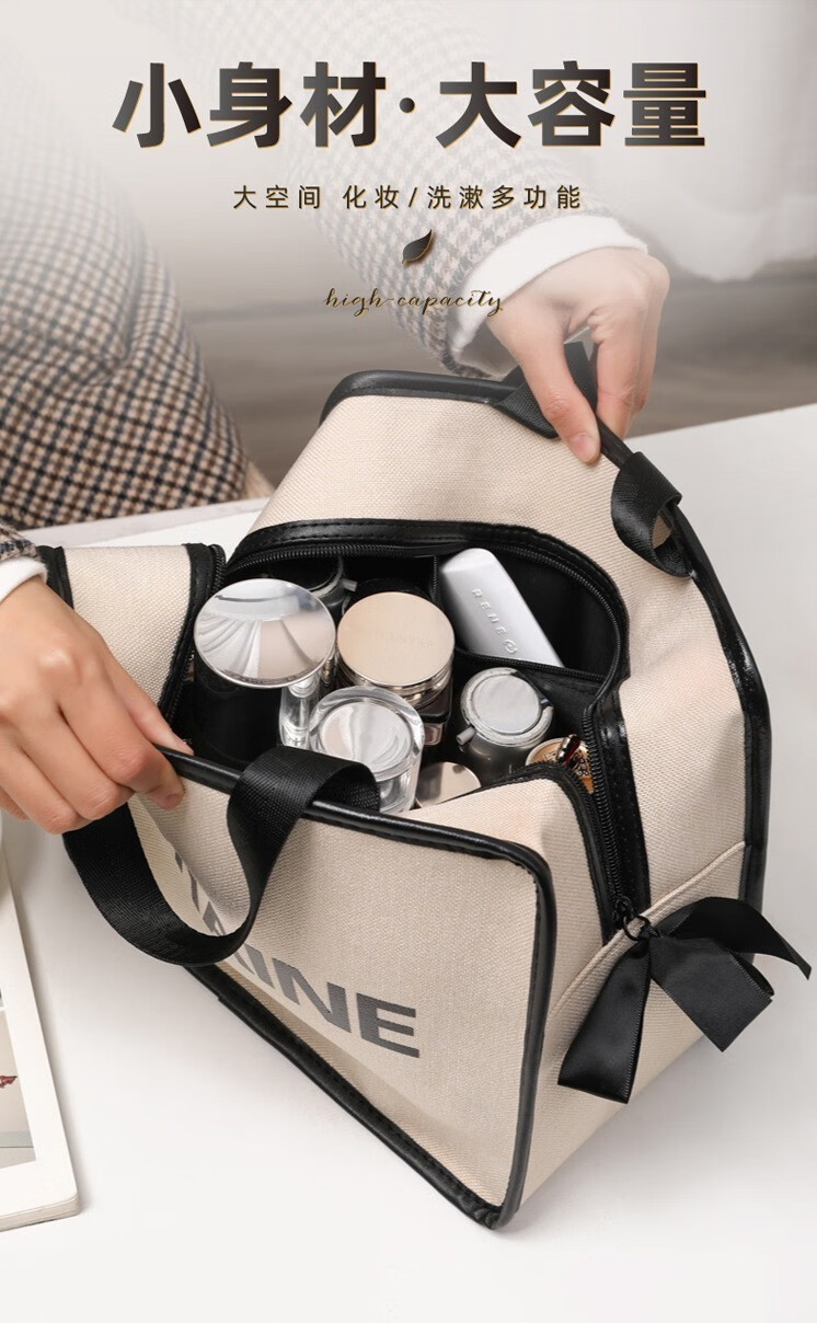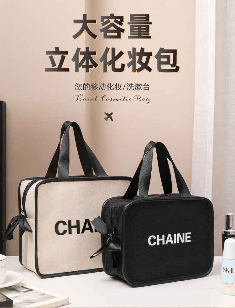 New internet celebrity super popular ins waterproof canvas cosmetic bag portable large capacity skin care product storage wash travel bag black large size