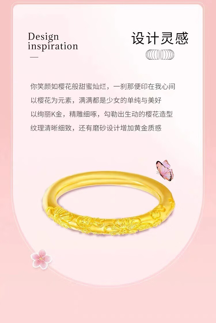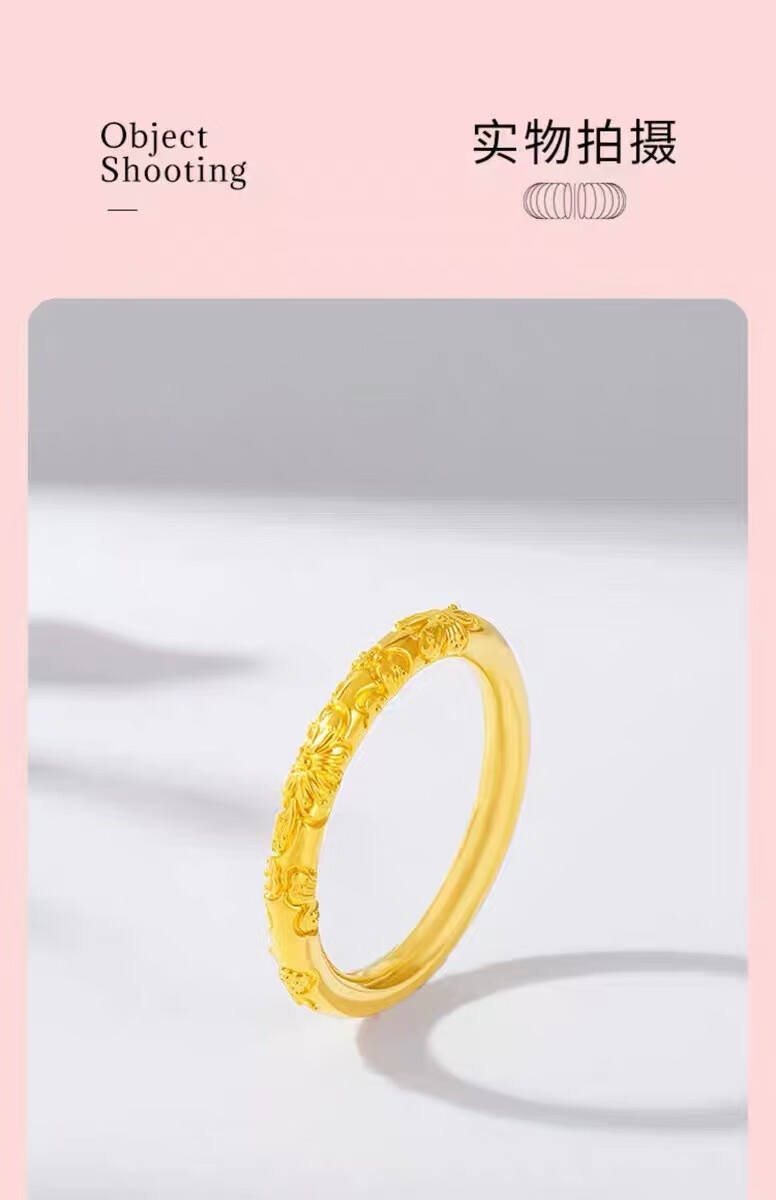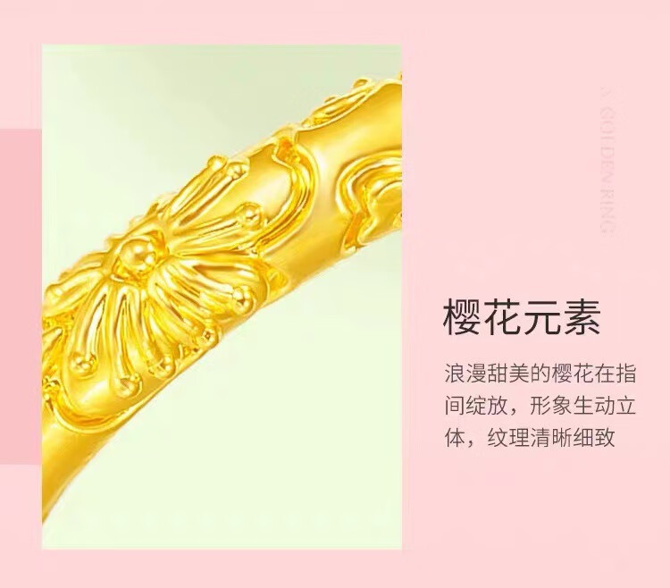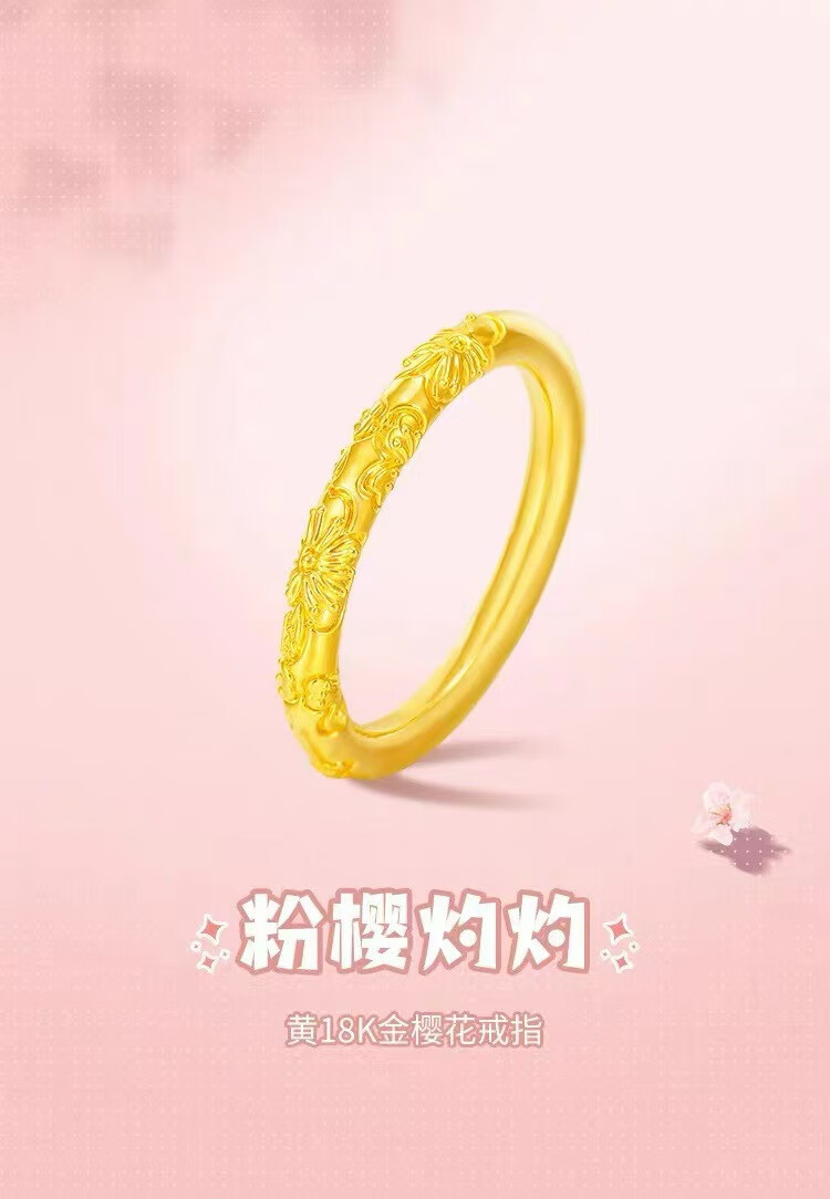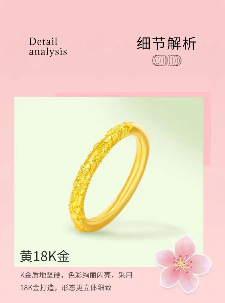 Chenru 18k gold cherry blossom ring for men and women, au gold color 750 solid ring, Bauhinia flower carved closed couple ring, cherry blossom ring (solid non-moulded version) No. 17 (about 2 grams)