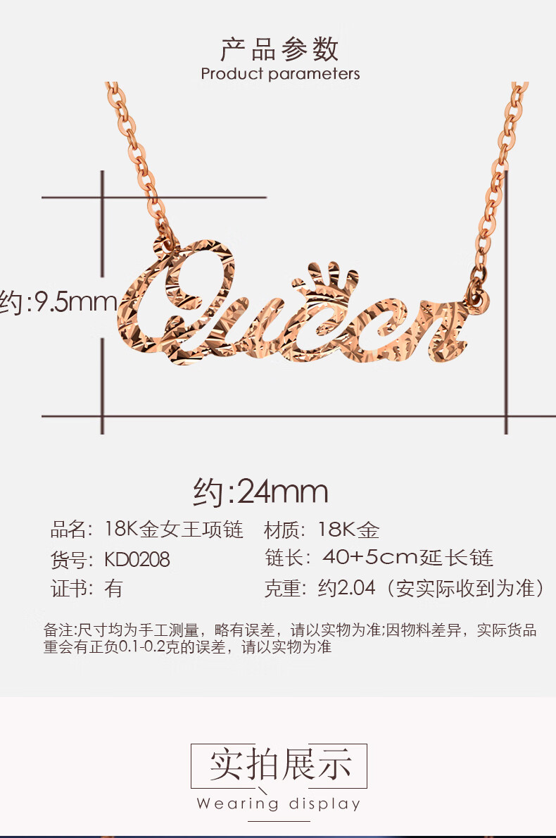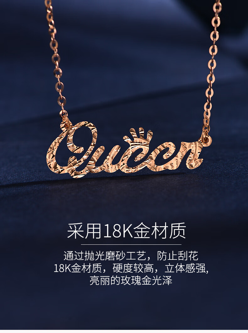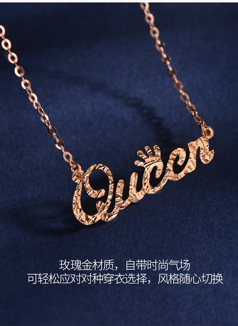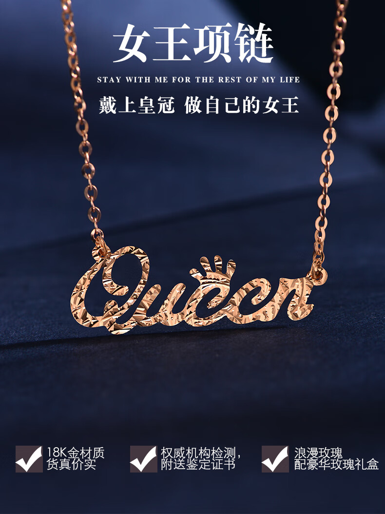 Duchen old Phoenix color gold necklace women's 18K gold queen goddess letter pendant rose gold gold clavicle chain new 18K gold queen chain