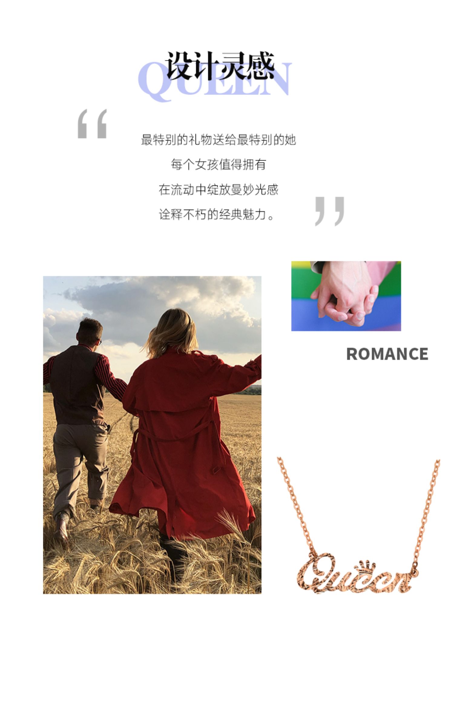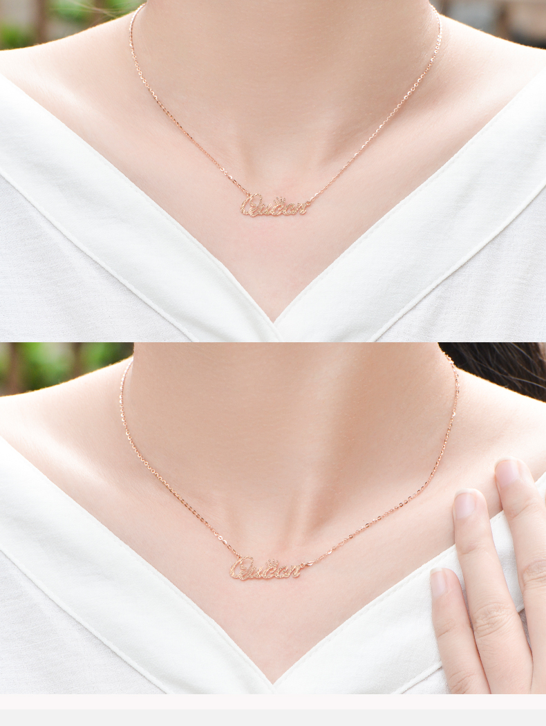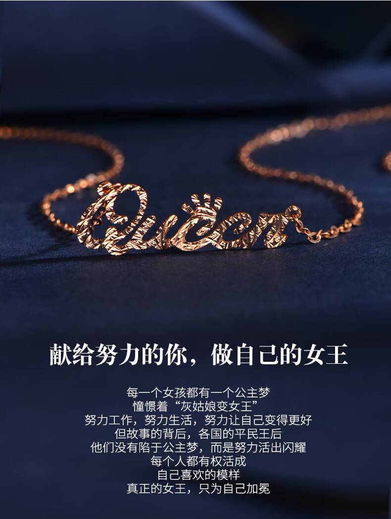 Duchen old Phoenix color gold necklace women's 18K gold queen goddess letter pendant rose gold gold clavicle chain new 18K gold queen chain