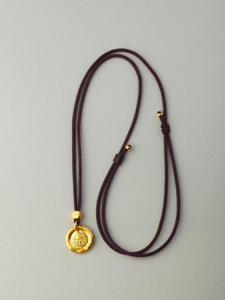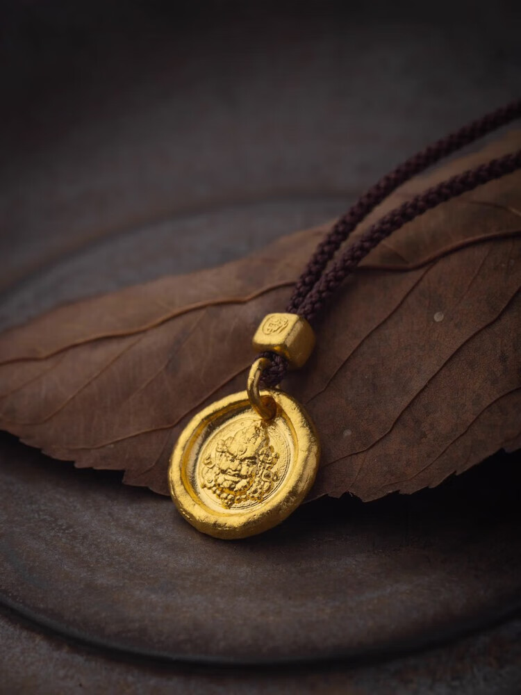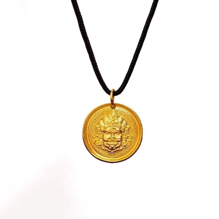 Dushen 999 pure gold ancient method 18k new version of Huang Wealth God pendant disc pendant ancient method Tibetan pendant necklace Huang Wealth God pendant