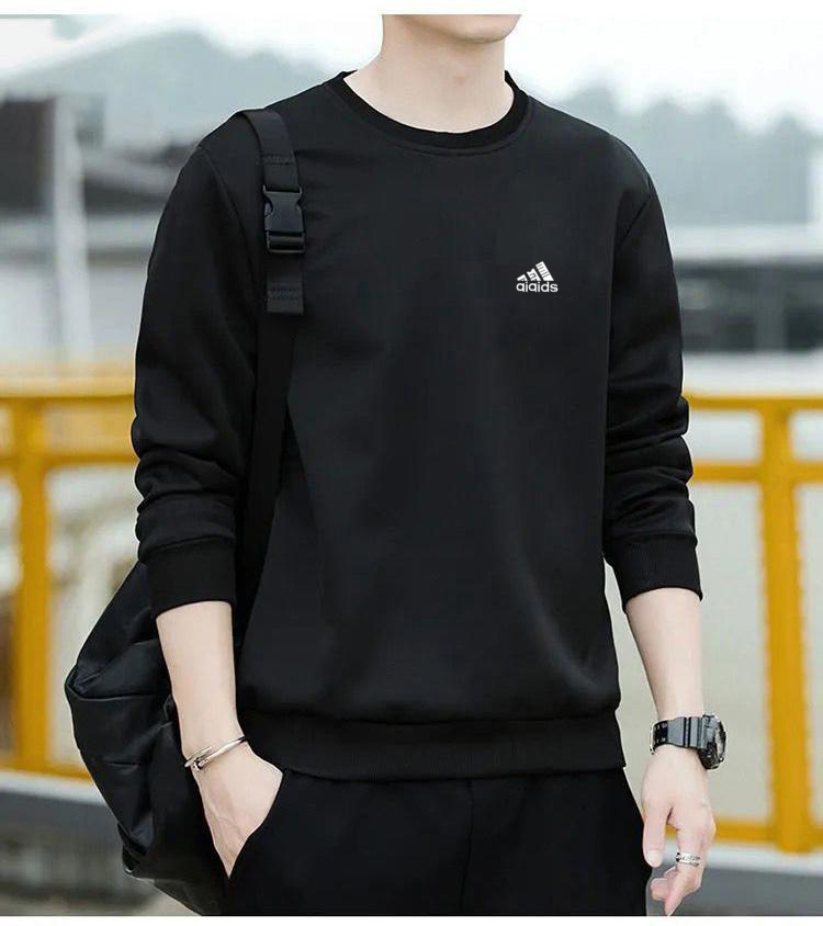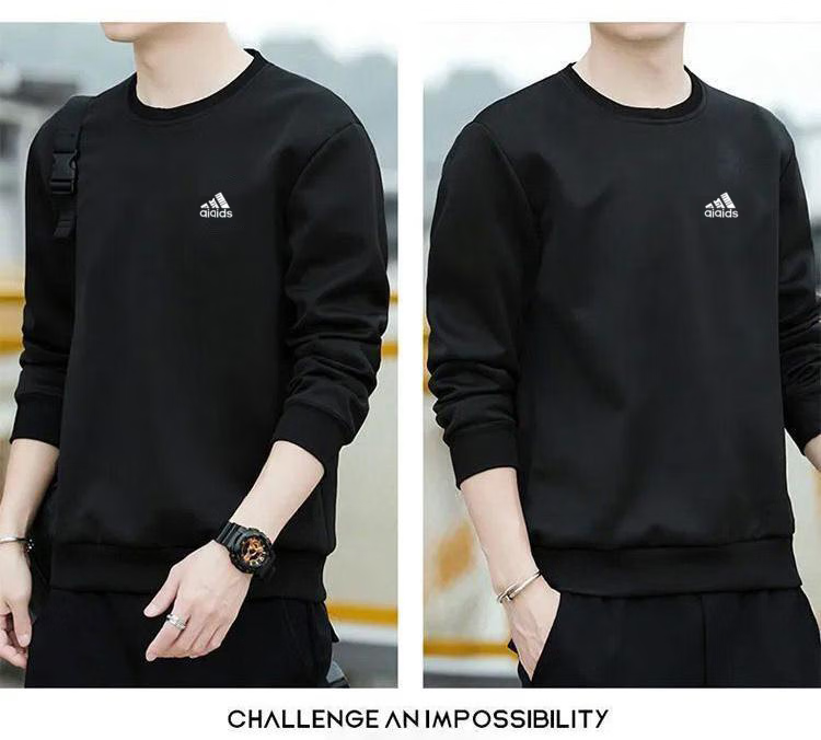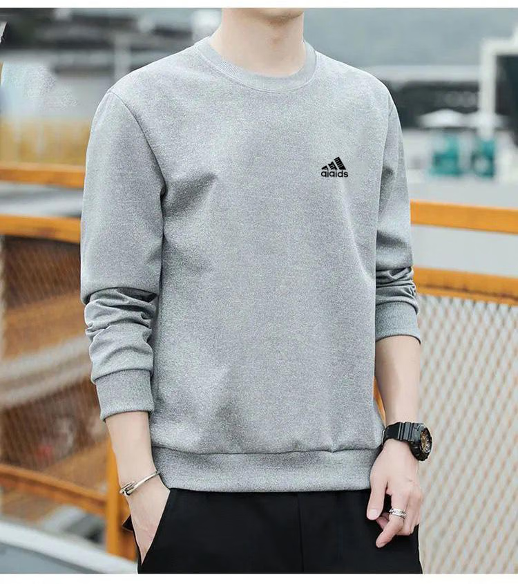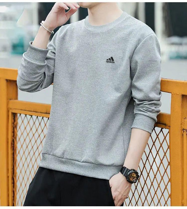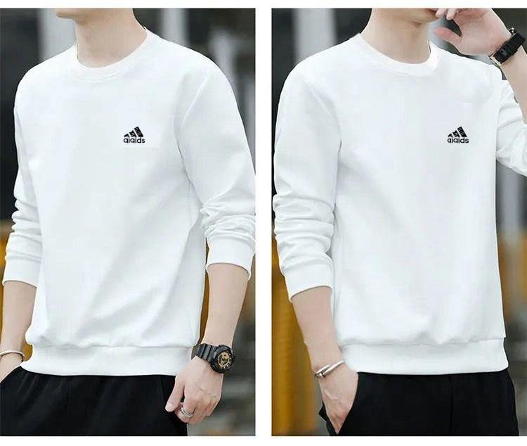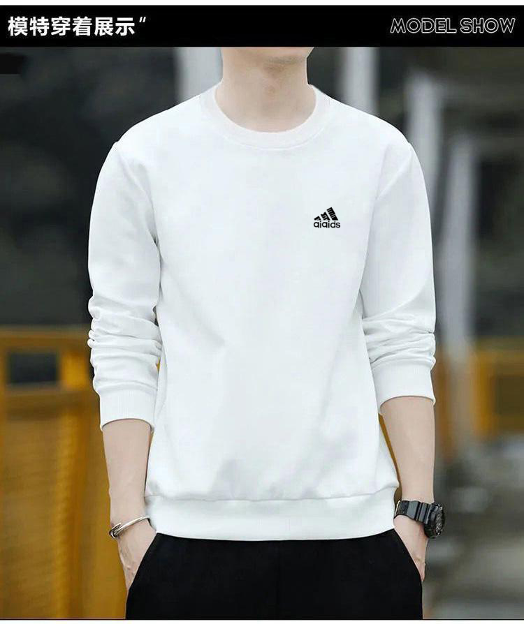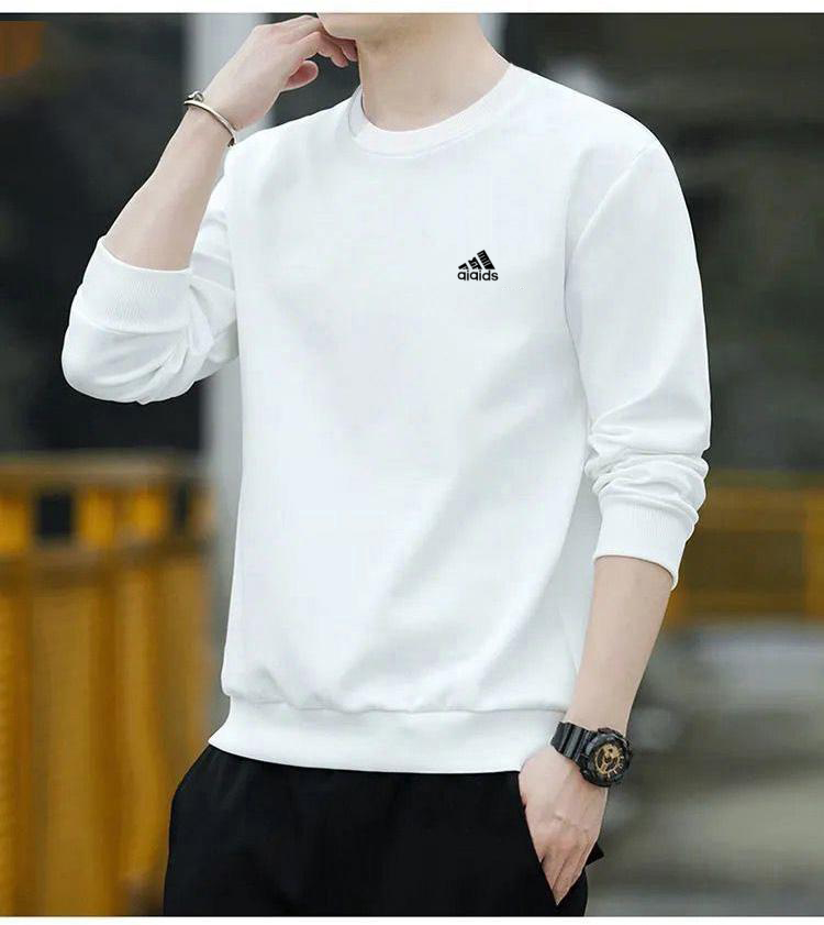 Brand pure cotton sweatshirt men's 2025 spring and autumn new round neck T-shirt plus velvet long-sleeved top casual bottoming shirt white regular 2XL