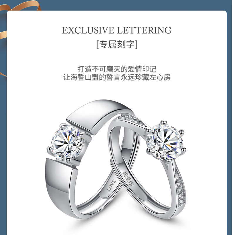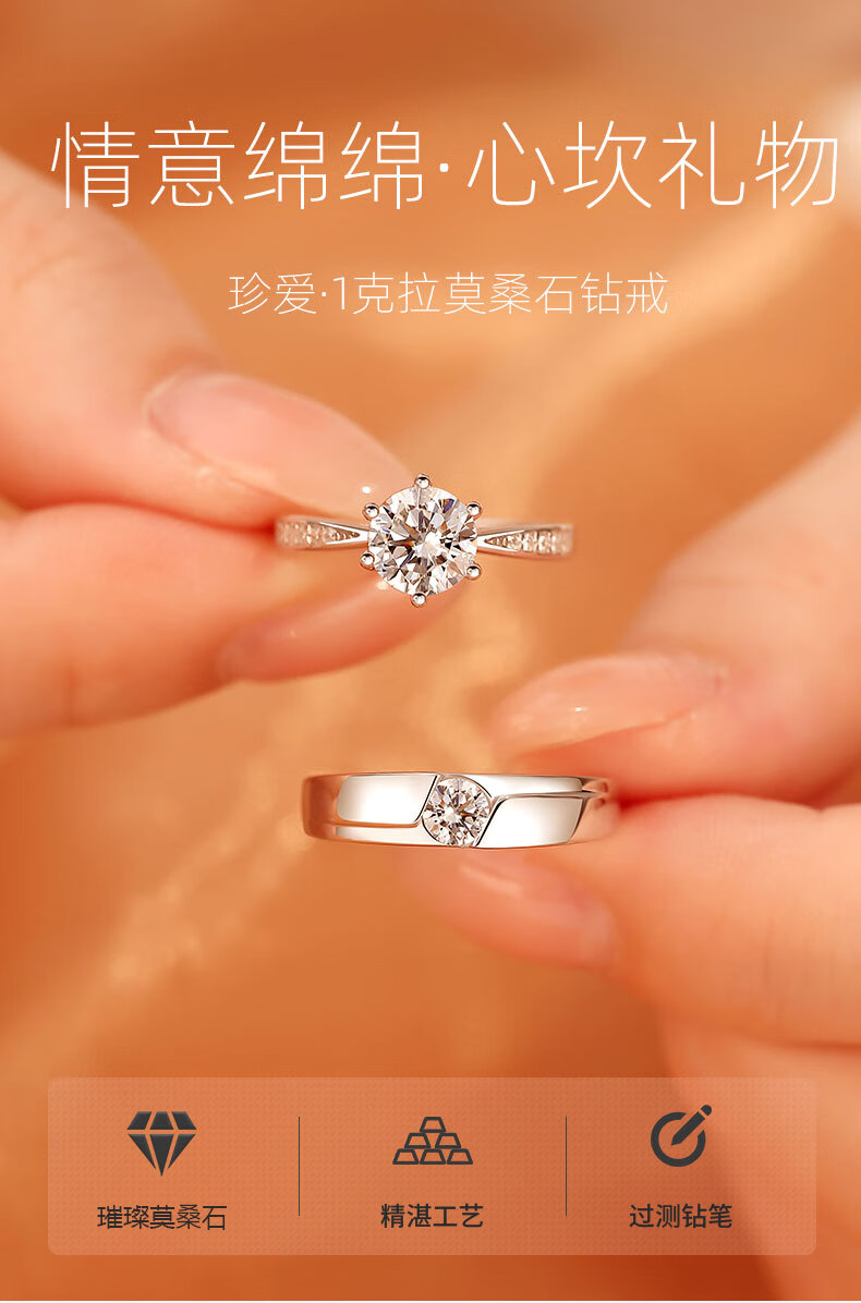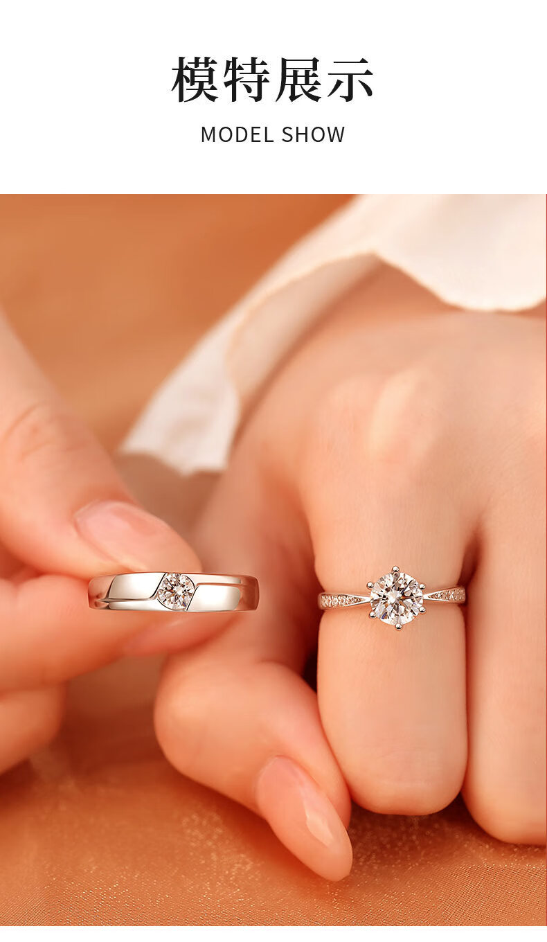 Jiangyan genuine D-grade moissanite diamond ring 1 carat sterling silver closed-mouth couple ring for a man and a woman to propose and marry as a gift to their girlfriend. 50 points for women and 30 points for men. The default is to send a live mouth. If you want to take a picture with a closed mouth, leave a message for the size.