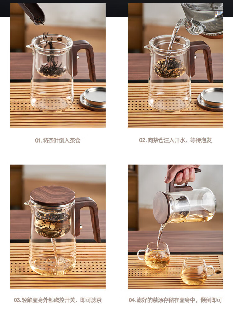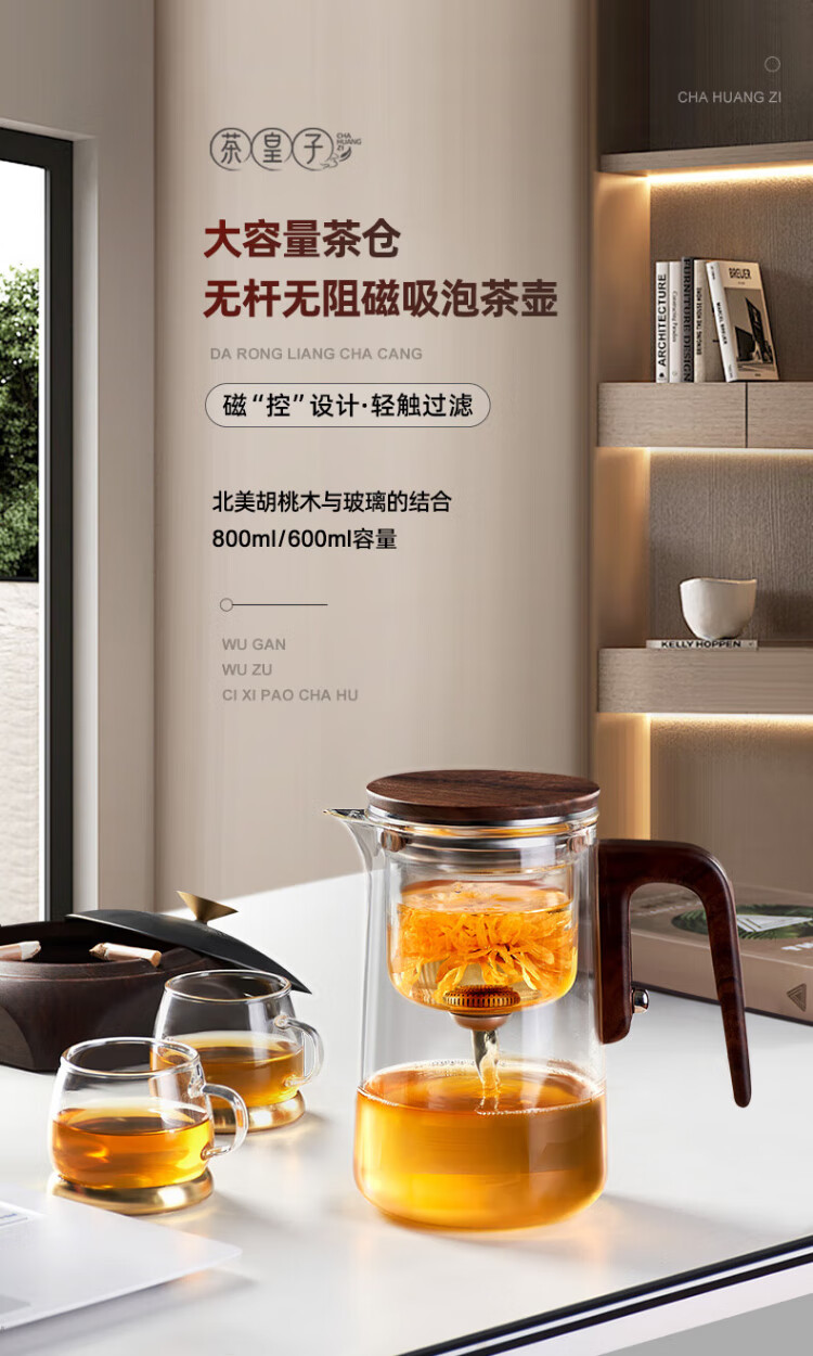 Tea Prince Magnetic Teapot Patented Design Filters Tea Water Separation High Borosilicate Glass Tea Making Artifact Tea Set Transparent 800ml + 2 Tea Cups