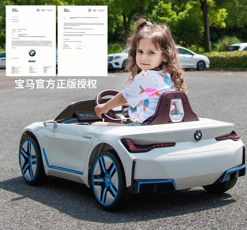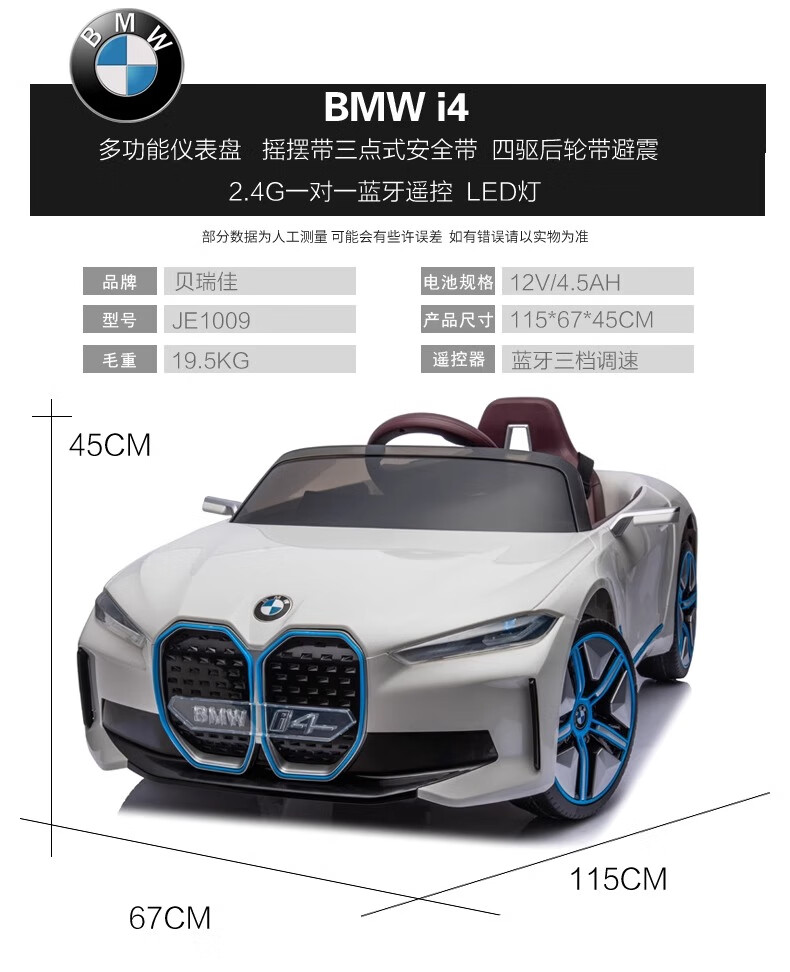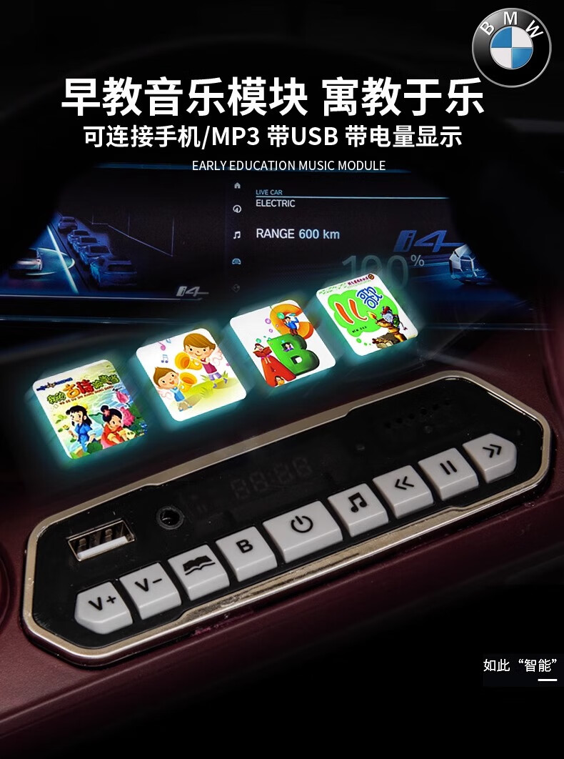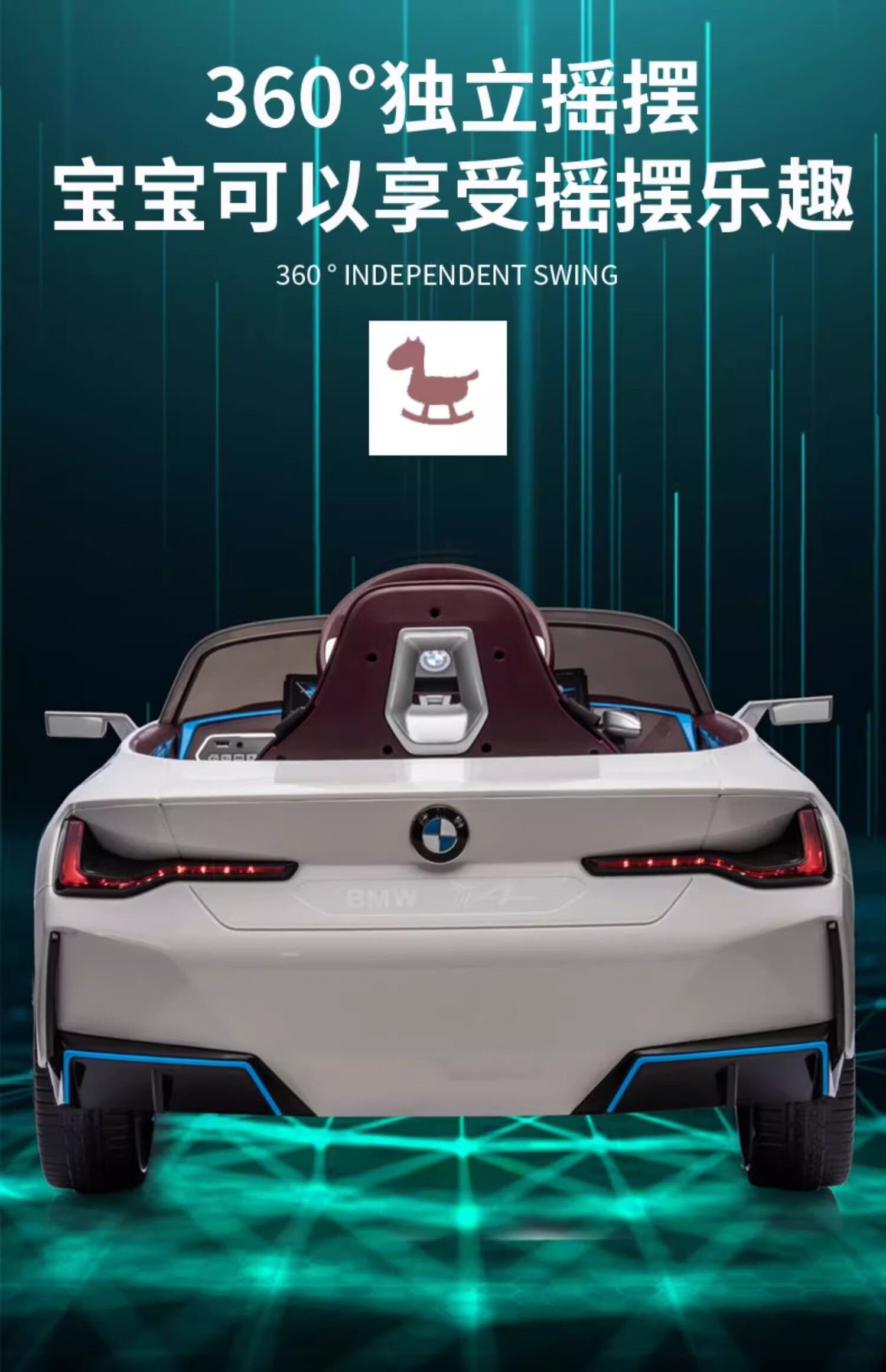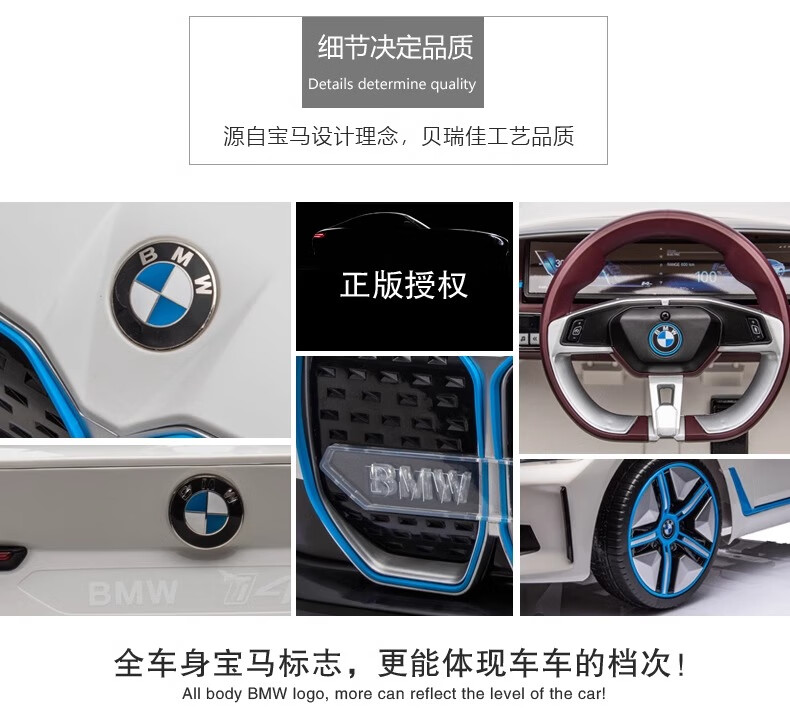 Berejia children's remote control car can sit on BMW children's electric car four-wheel drive men's and women's toy car baby stroller exclusive version white four-wheel drive + swing + leather seat + early education