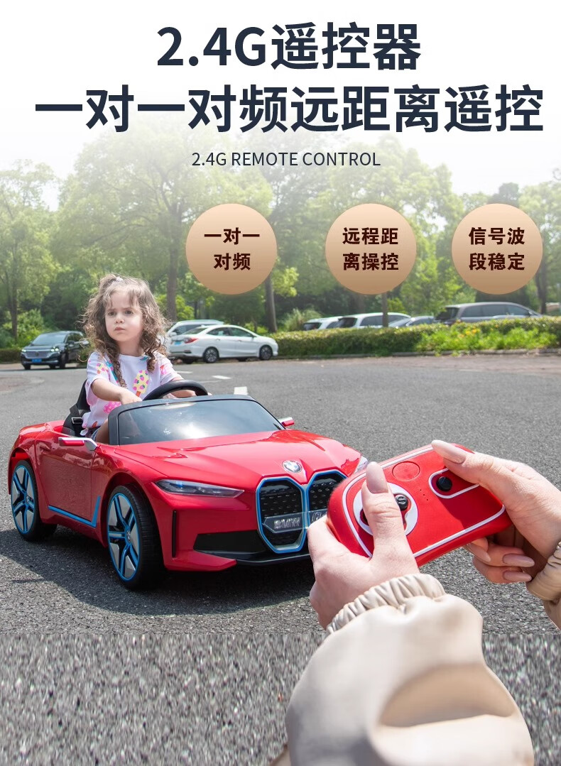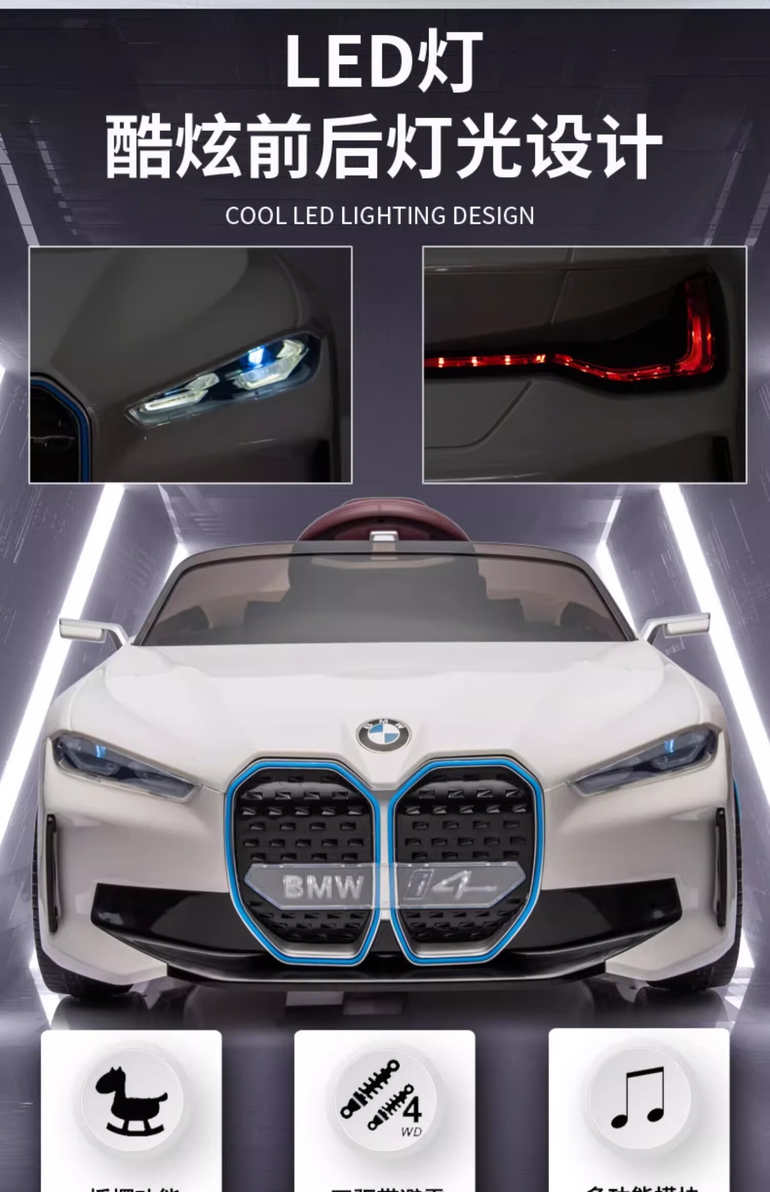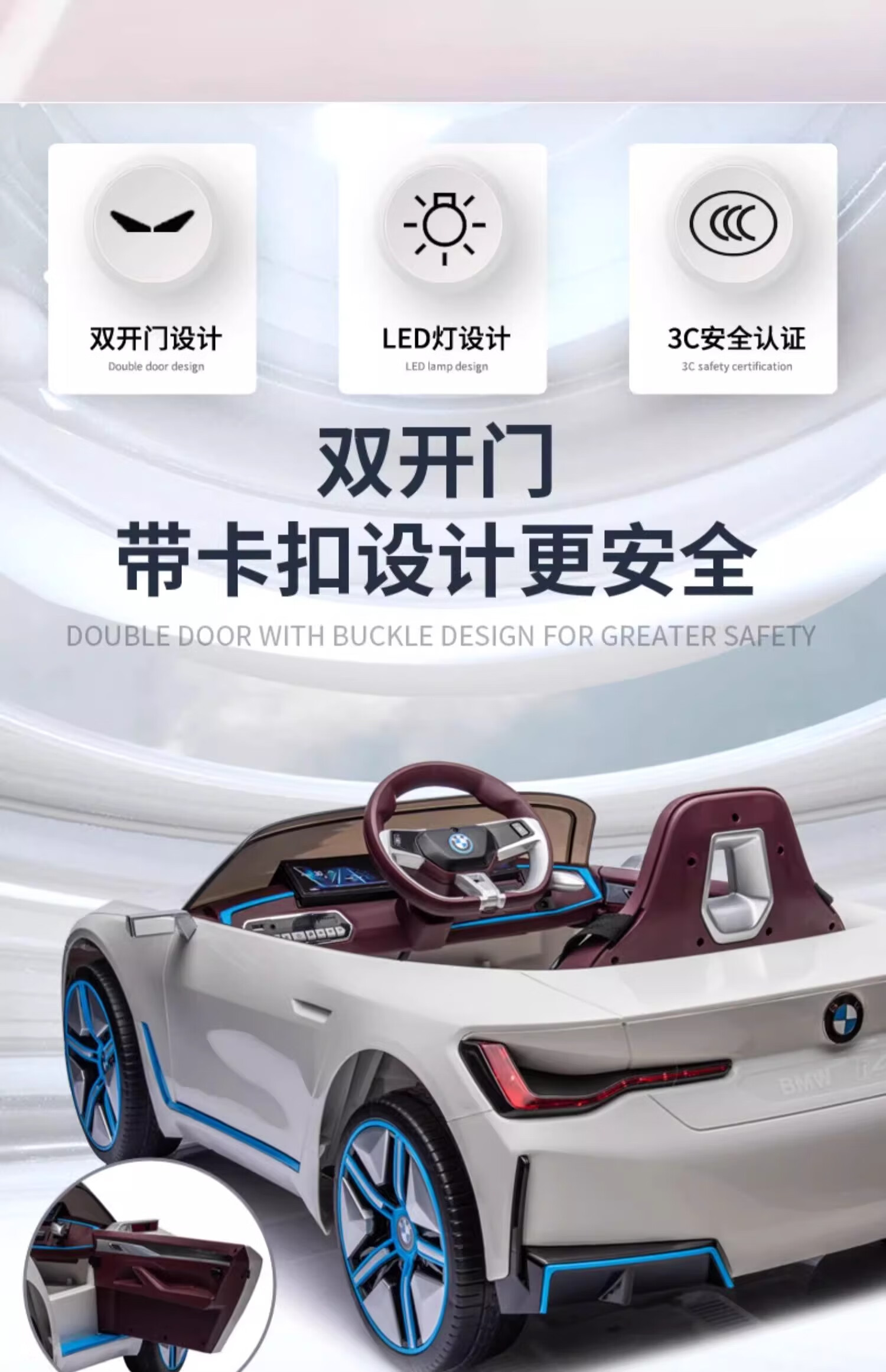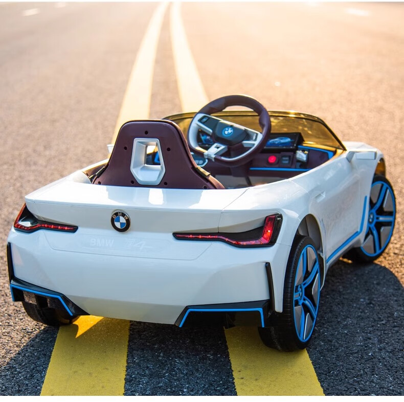 Berejia children's remote control car can sit on BMW children's electric car four-wheel drive men's and women's toy car baby stroller exclusive version white four-wheel drive + swing + leather seat + early education
