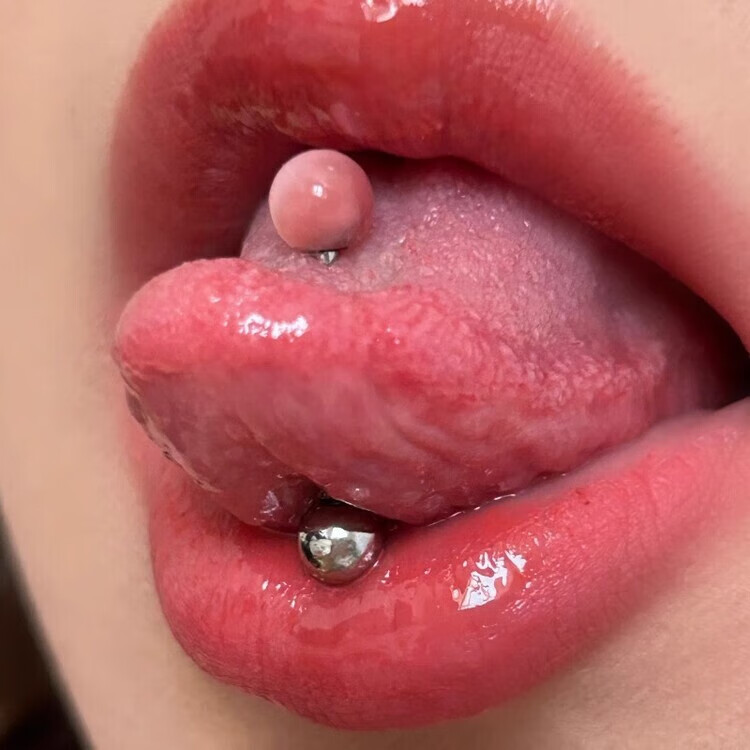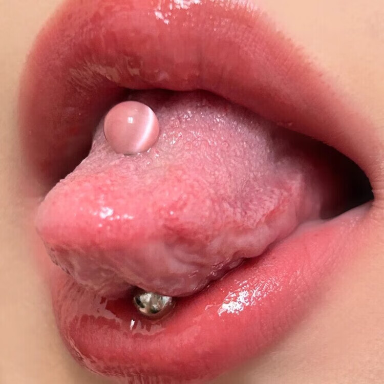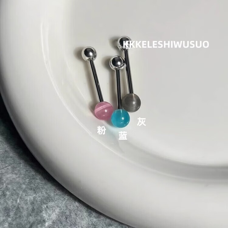 Spring Brocade and Autumn Carp Super Beautiful Flashing Cat's Eye Tongue Nail Can Drink Hot Girl Tongue Nail Medical Titanium Steel Sweet and Cool Puncture Jewelry Pink Rod Length 14mm Rod Thickness 1.6mm