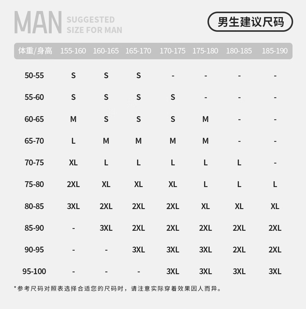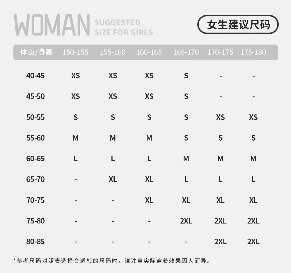 China (cm) 160-165/84-86 165-170 / 88-90 167-172 / 92-96 168-173 / 98-102 170-176 / 106-110