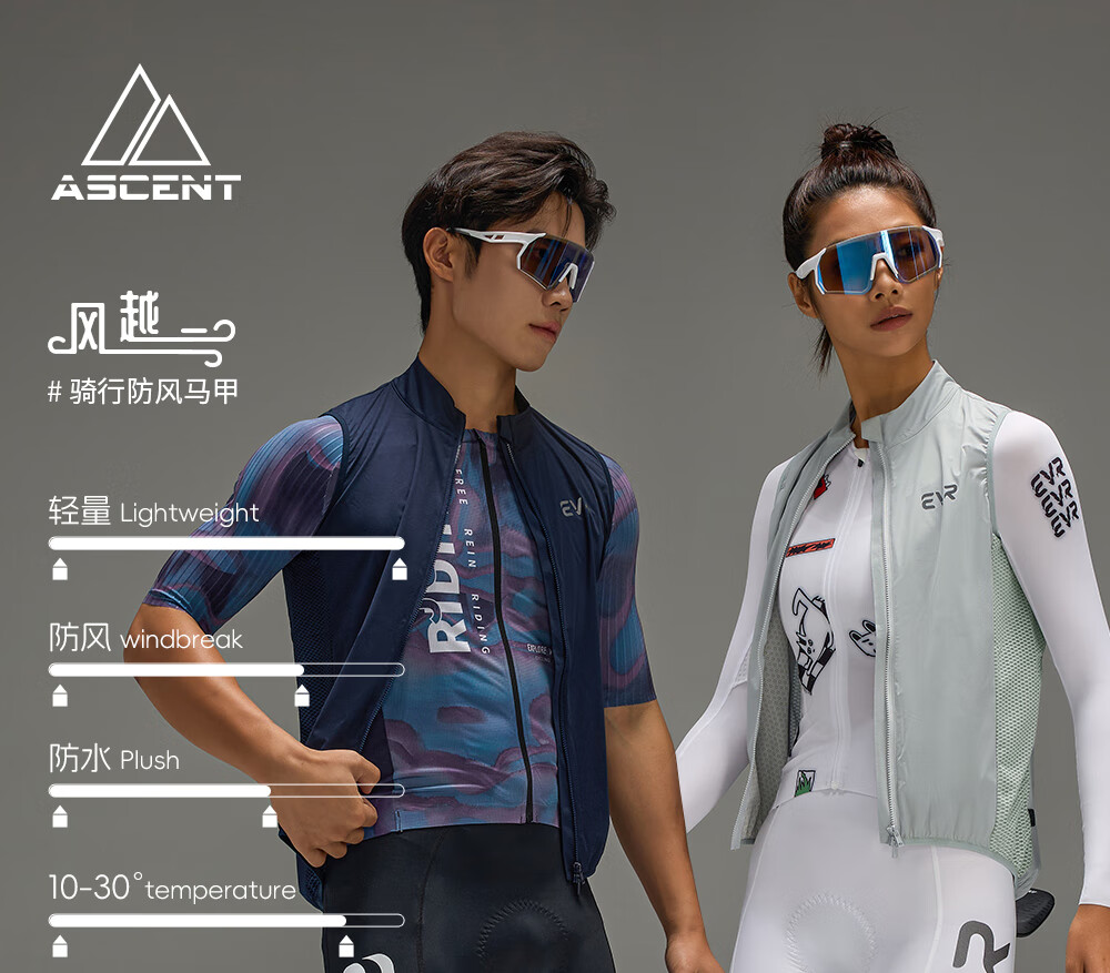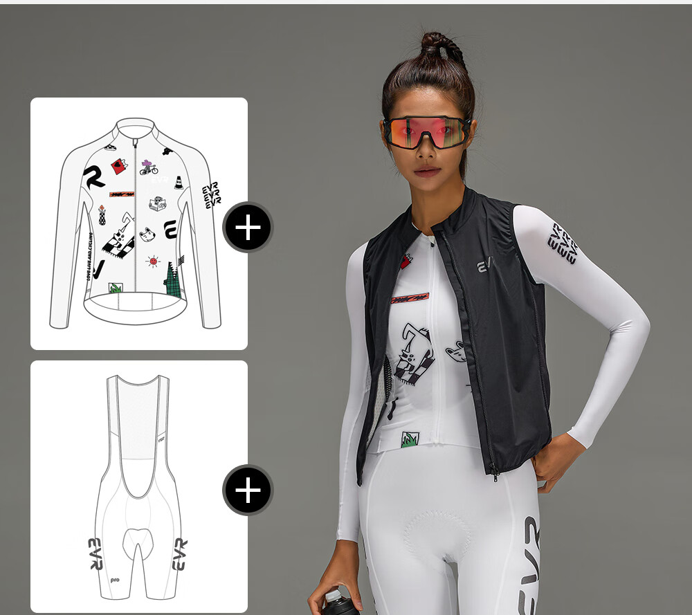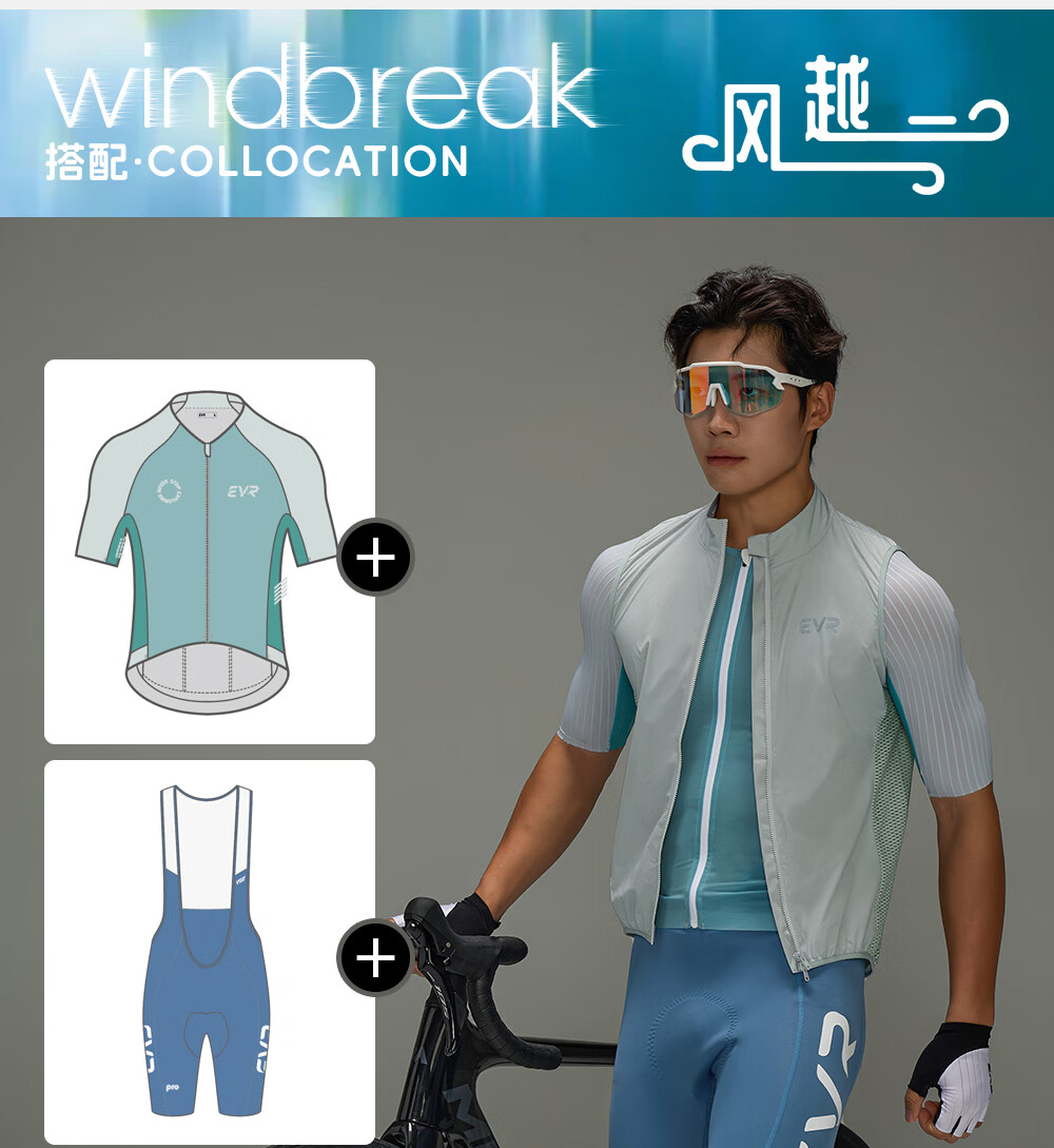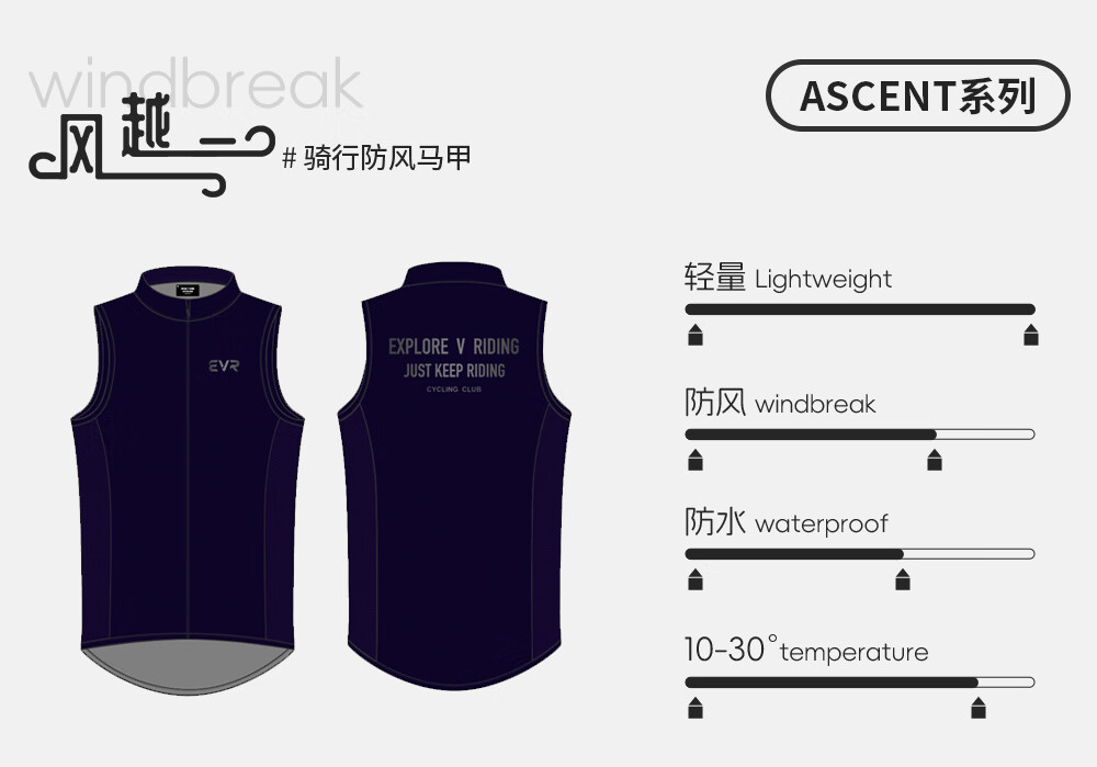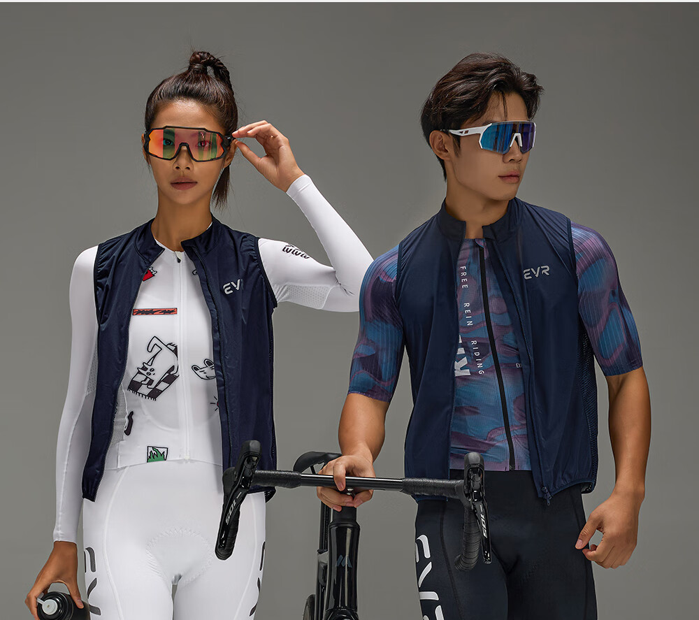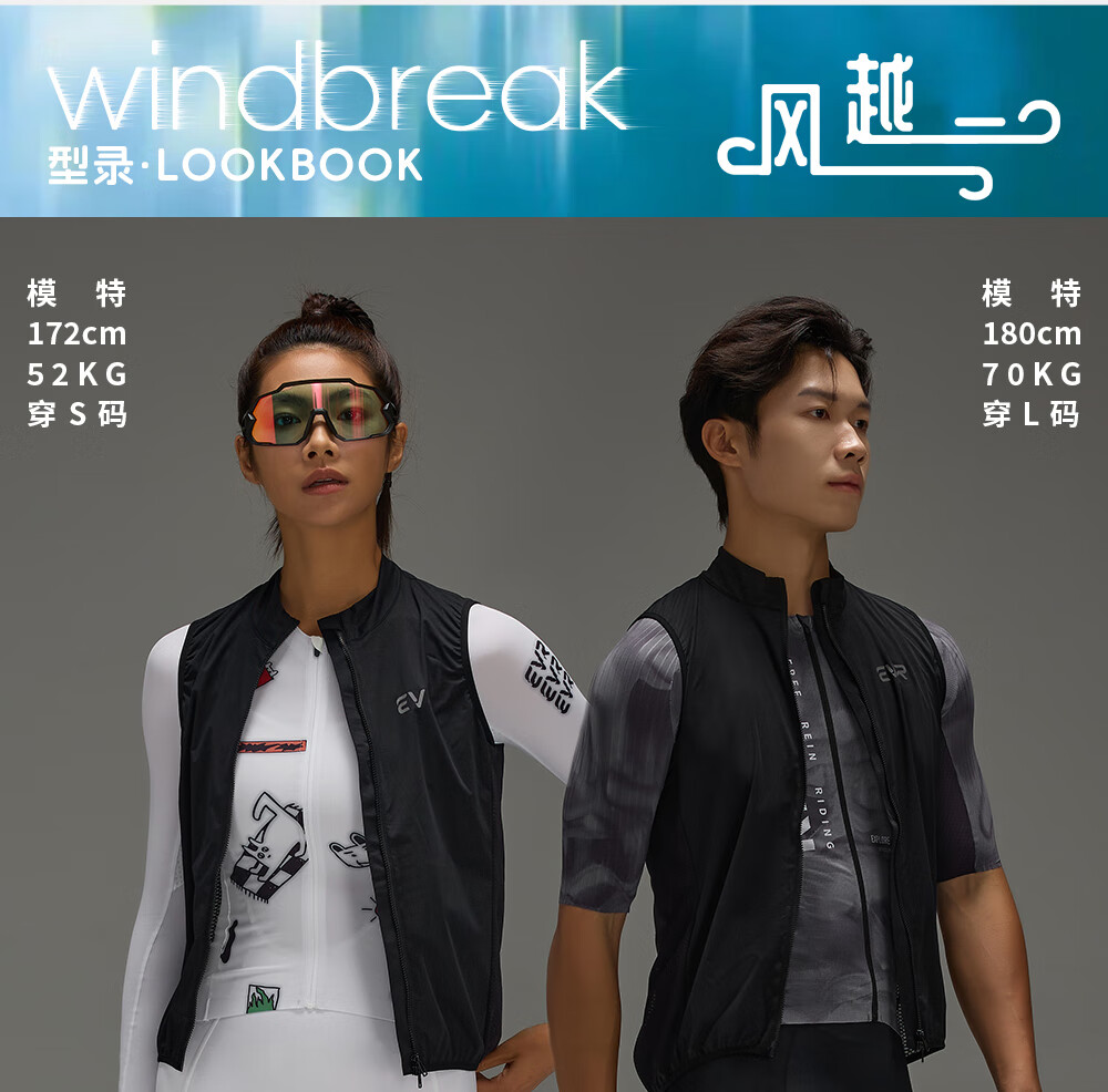 EVR Cycling Windproof Vest Cycling Suit Men's and Women's Same Top Jacket Highly Elastic Breathable Water-Repellent Bicycle Ascent Feng Yue - Obsidian Black 2XL