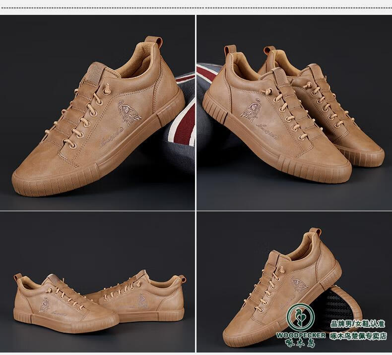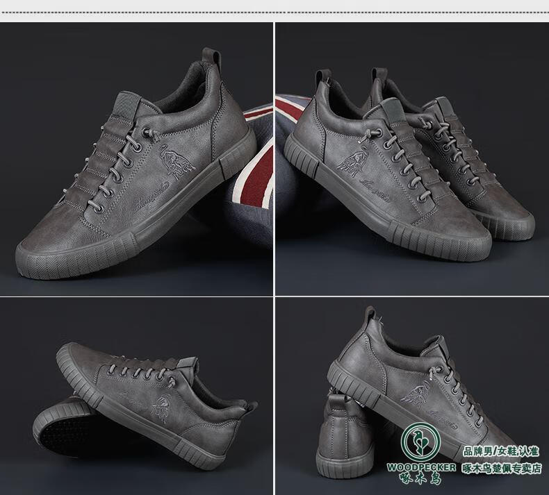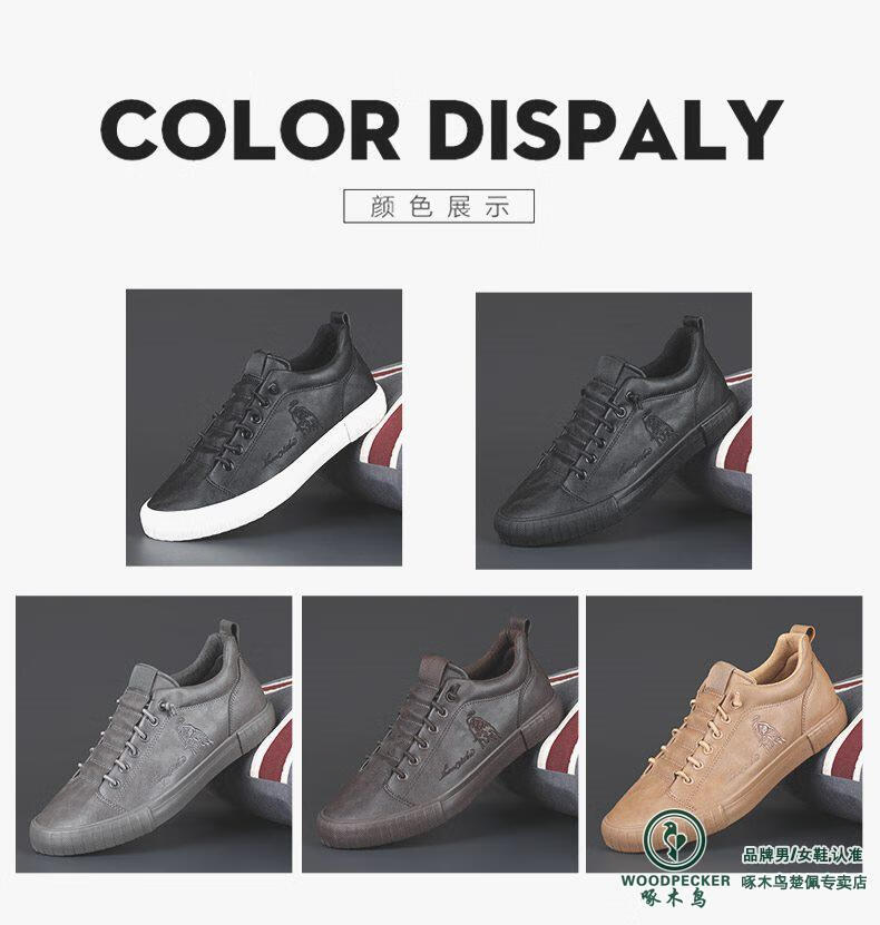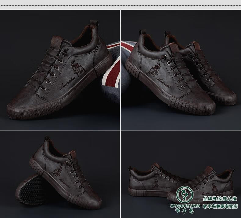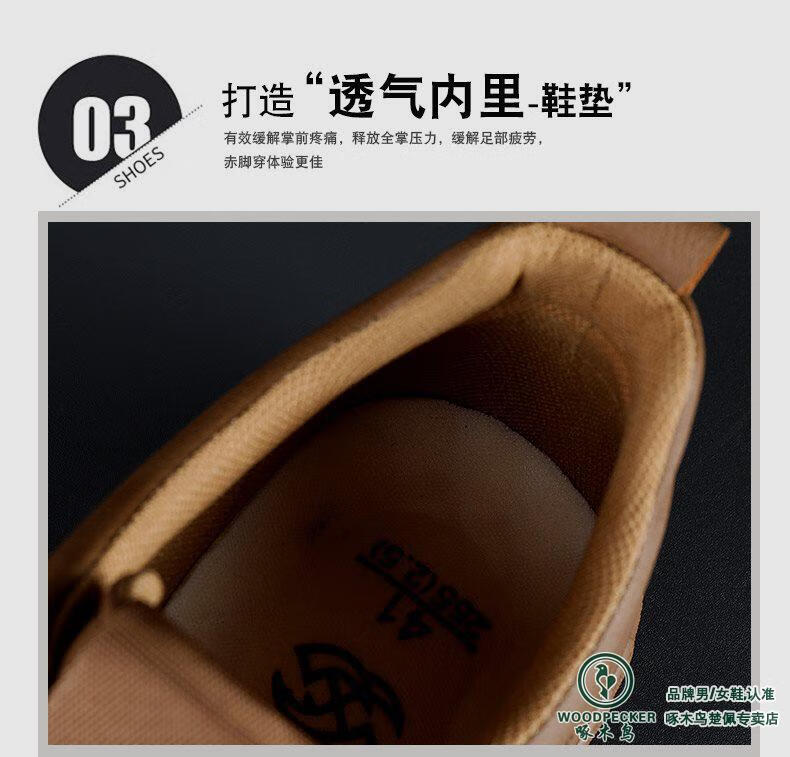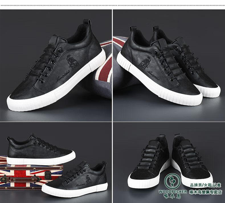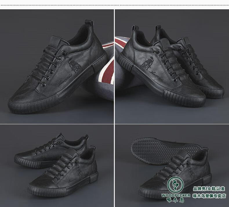Woodpecker All Black Leather Men's Shoes 2025 Autumn New Soft Sole Soft Panel Shoes Business Casual Leather Shoes All Black 43 Loose Fit, One Size Smaller for Thin Feet