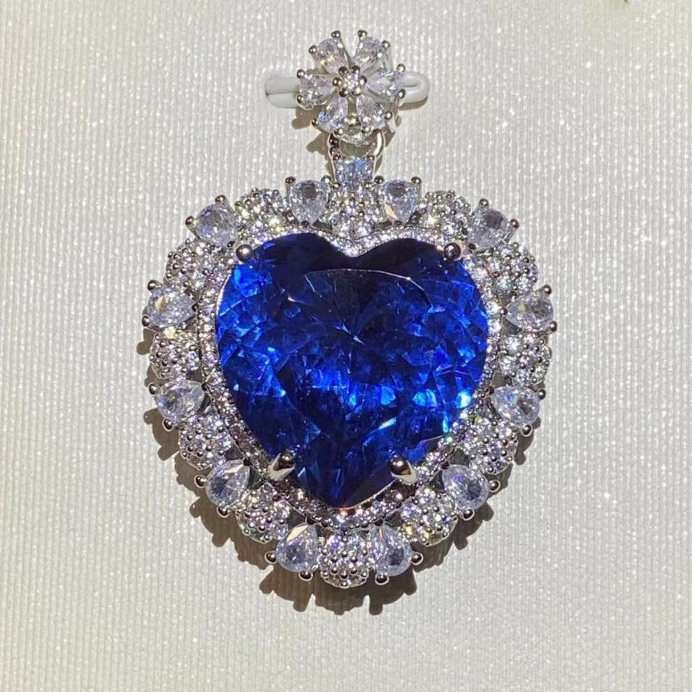 Extravagant and extravagant heart-shaped sapphire and tanzanite pendant, clean and flawless to the naked eye, 925 silver plated with 18K gold, extra-large heart-shaped sapphire and tanzanite pendant.