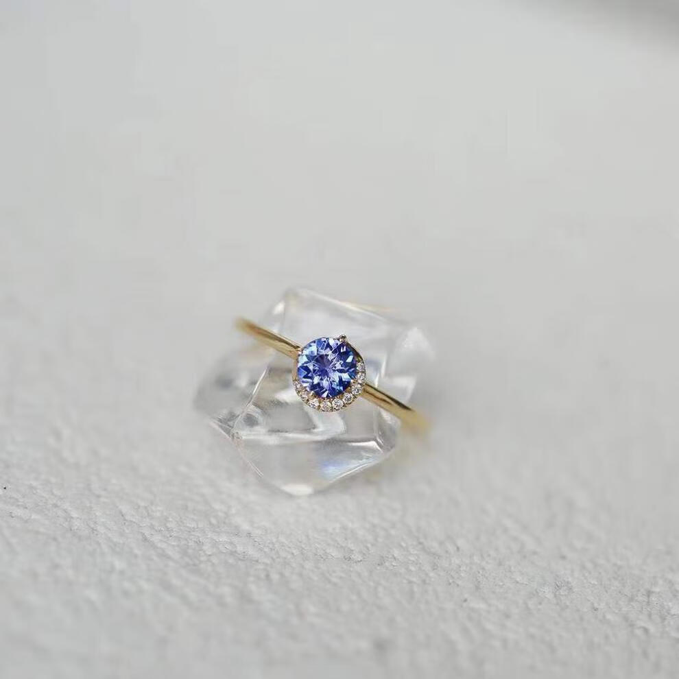 Luxurious new model inlaid with natural tanzanite and diamonds, retro gold-plated open ring for women, simple temperament ring, tanzanite, yellow gold, adjustable opening
