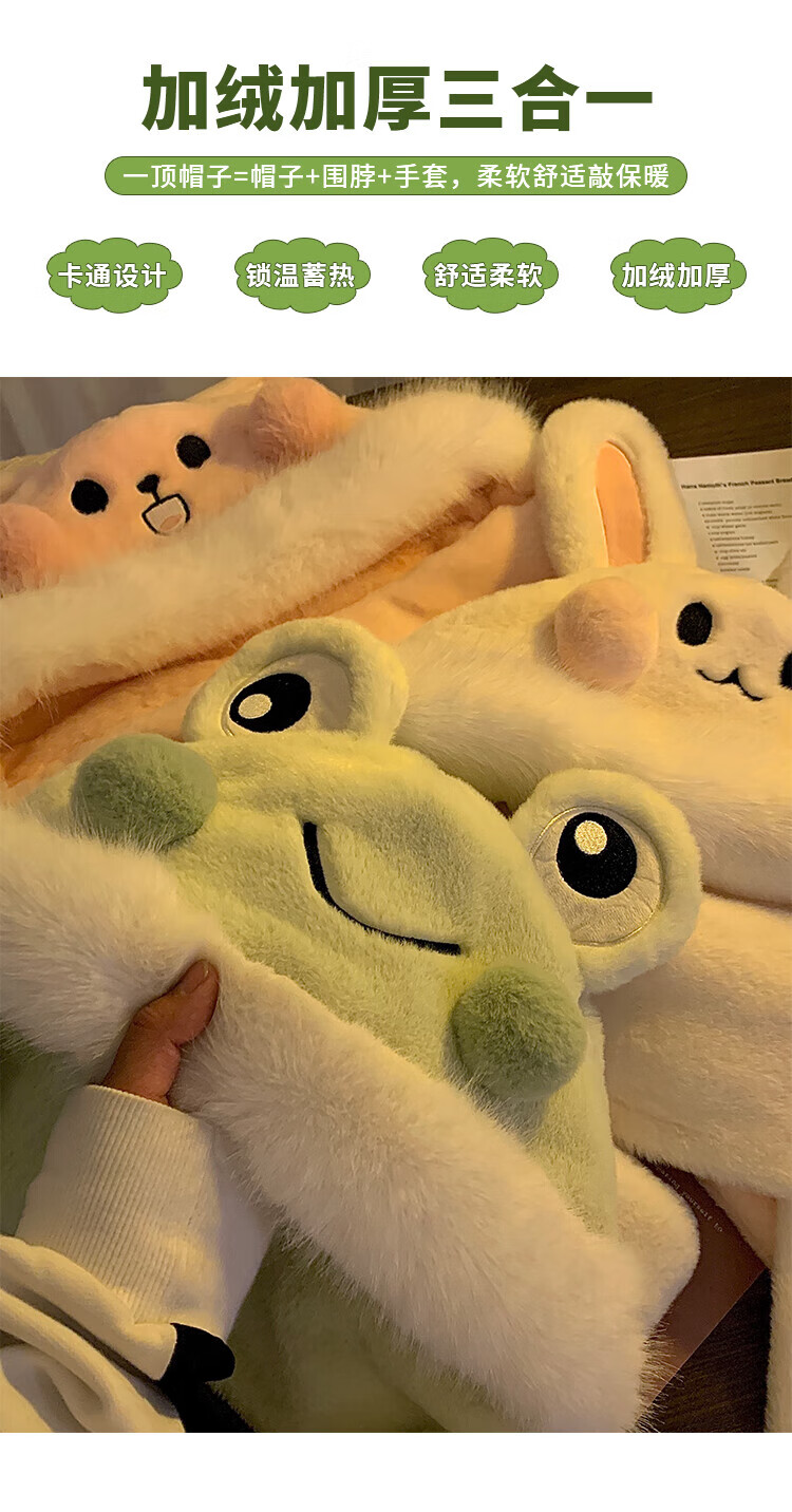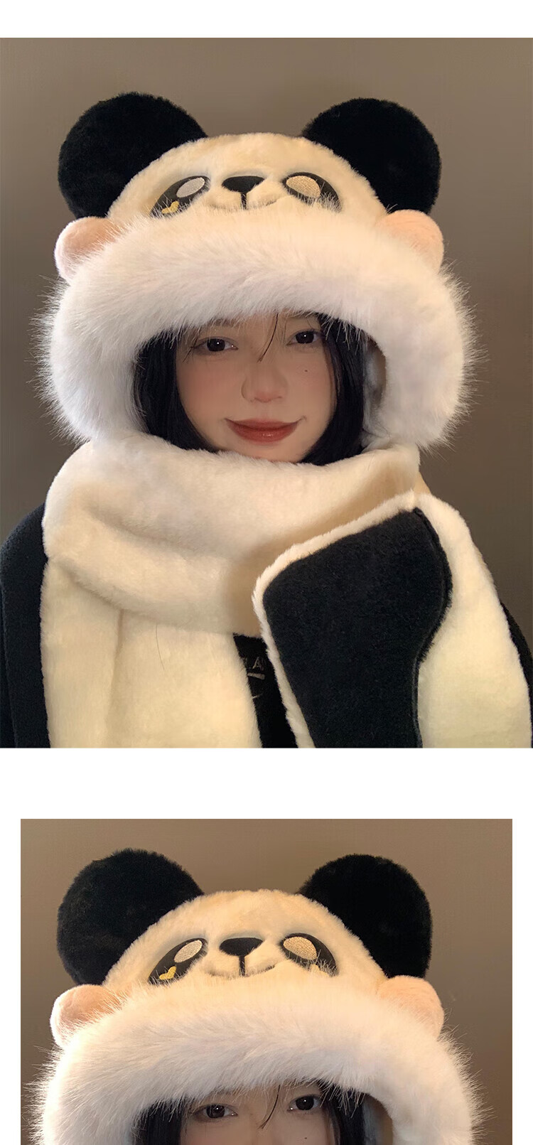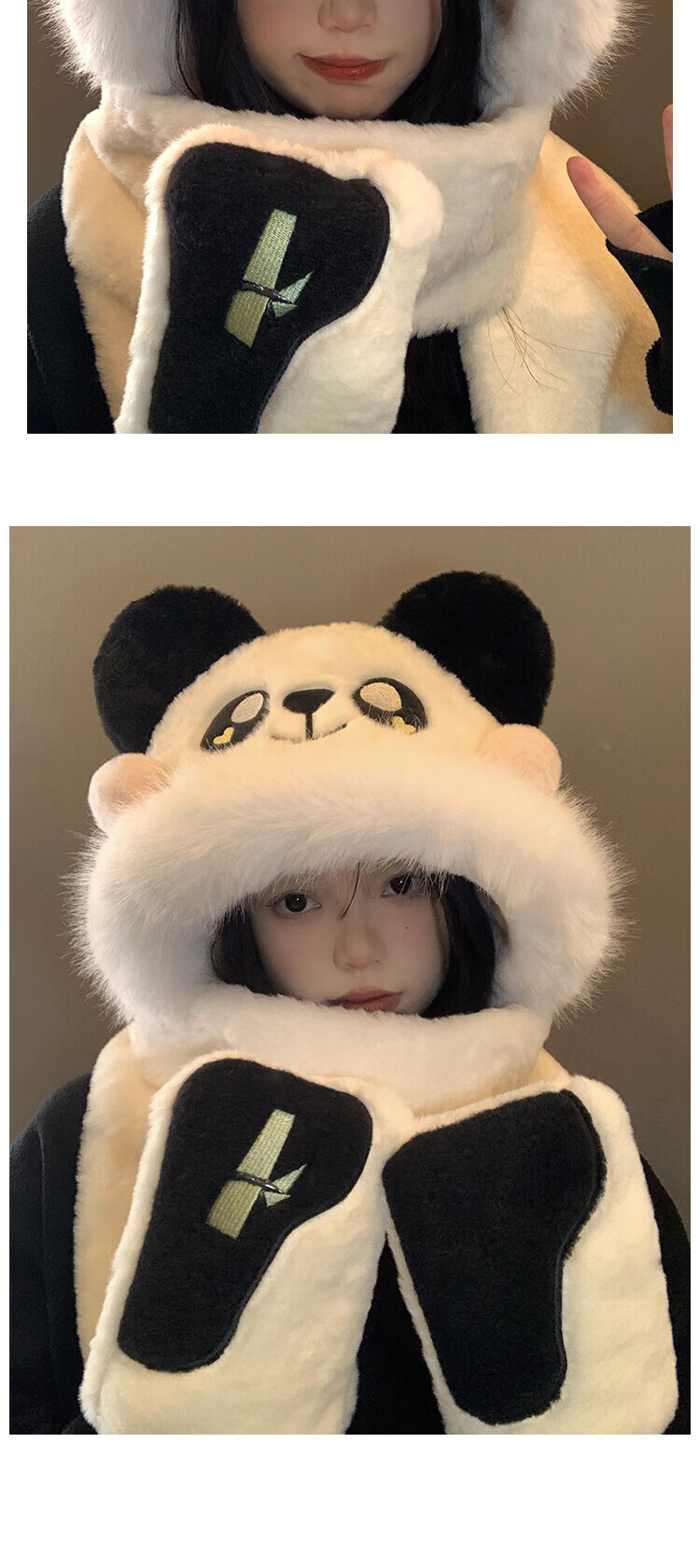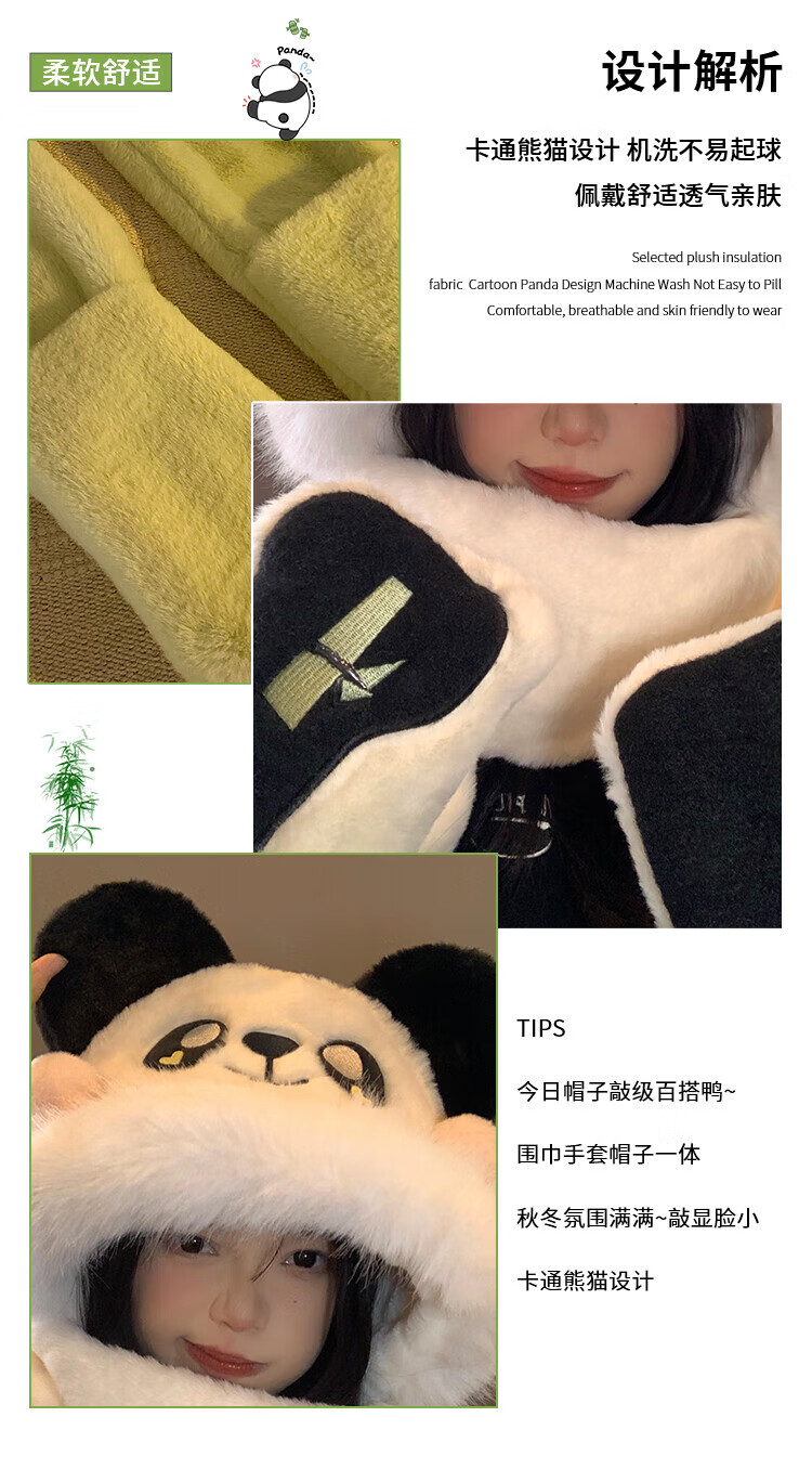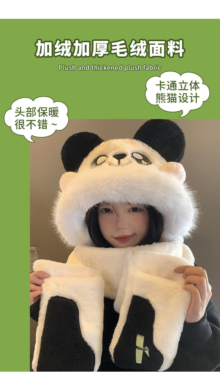 SOMUBAY Panda Plush Hat Scarf All-in-One Women's Winter Cycling Cute Thickened Warm Scarf Gloves New Year's Gift for Women Panda Three-piece Set One-size-fits-all Quality (Gift Bags Need to Contact Customer Service)