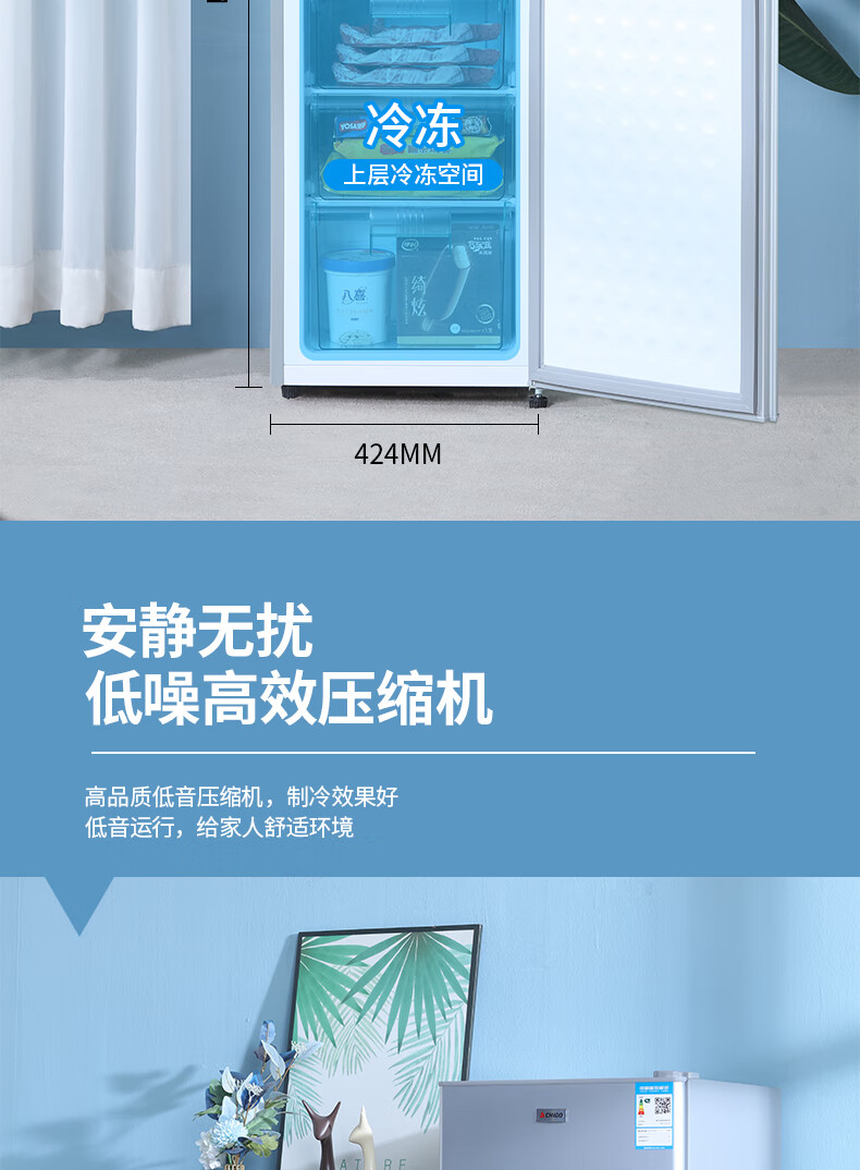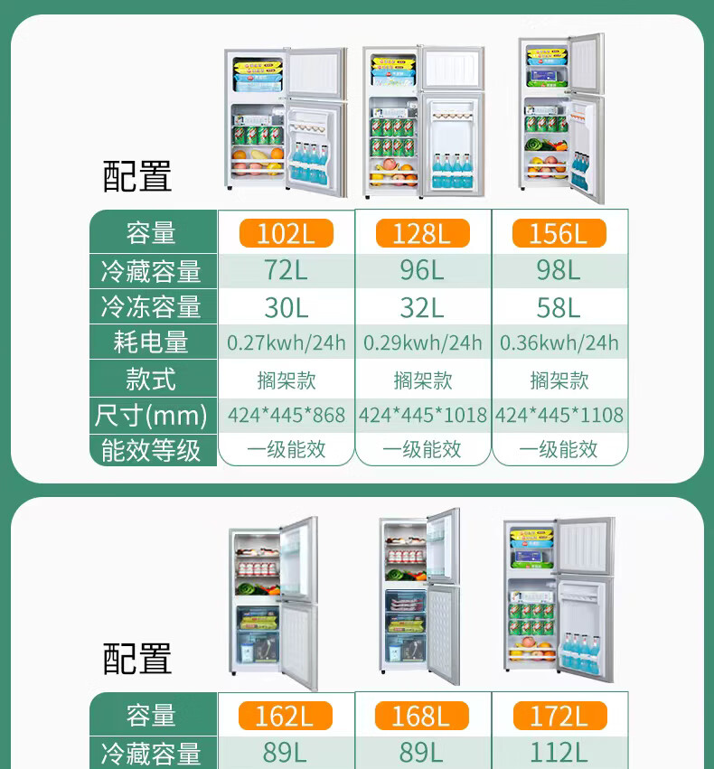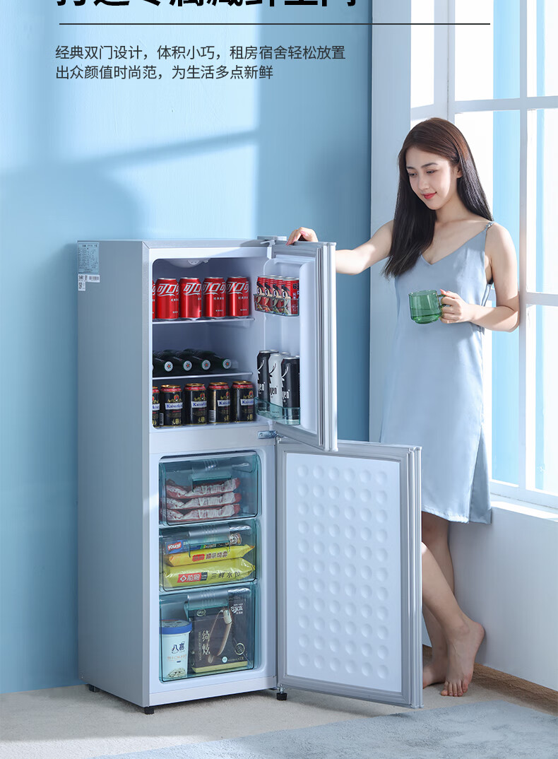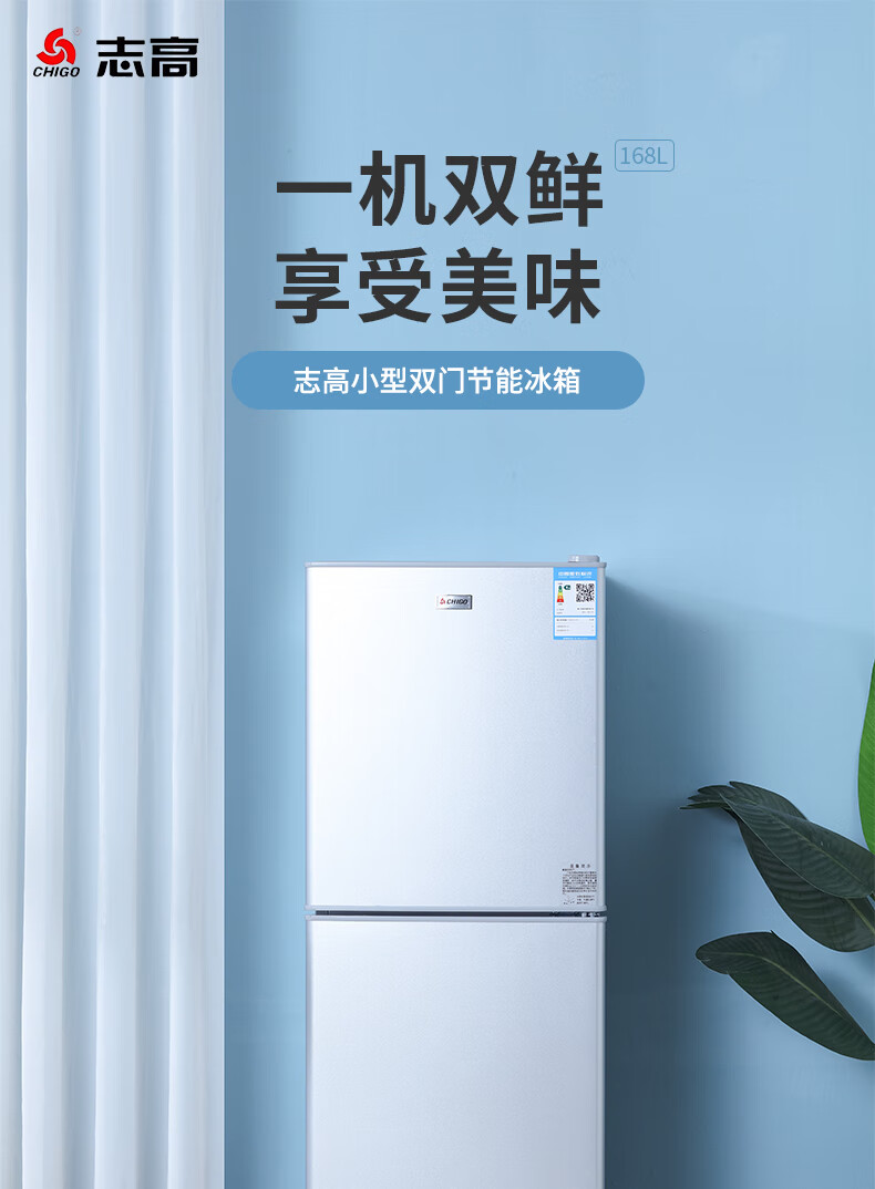 CHIGO double-door refrigerator for home small first-class energy efficiency office rental dormitory double-door medium-sized two-door refrigerator energy saving first-class energy efficiency-shelf model 102L one layer of freezing and three layers of refrigeration