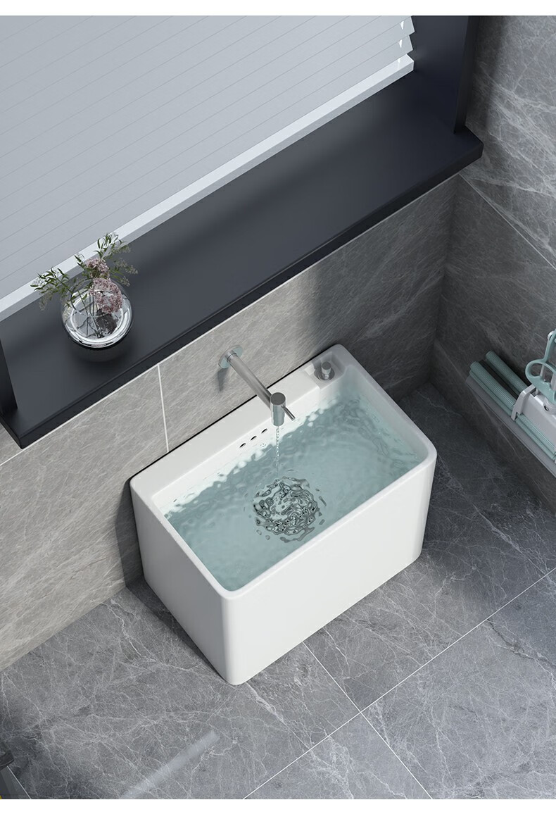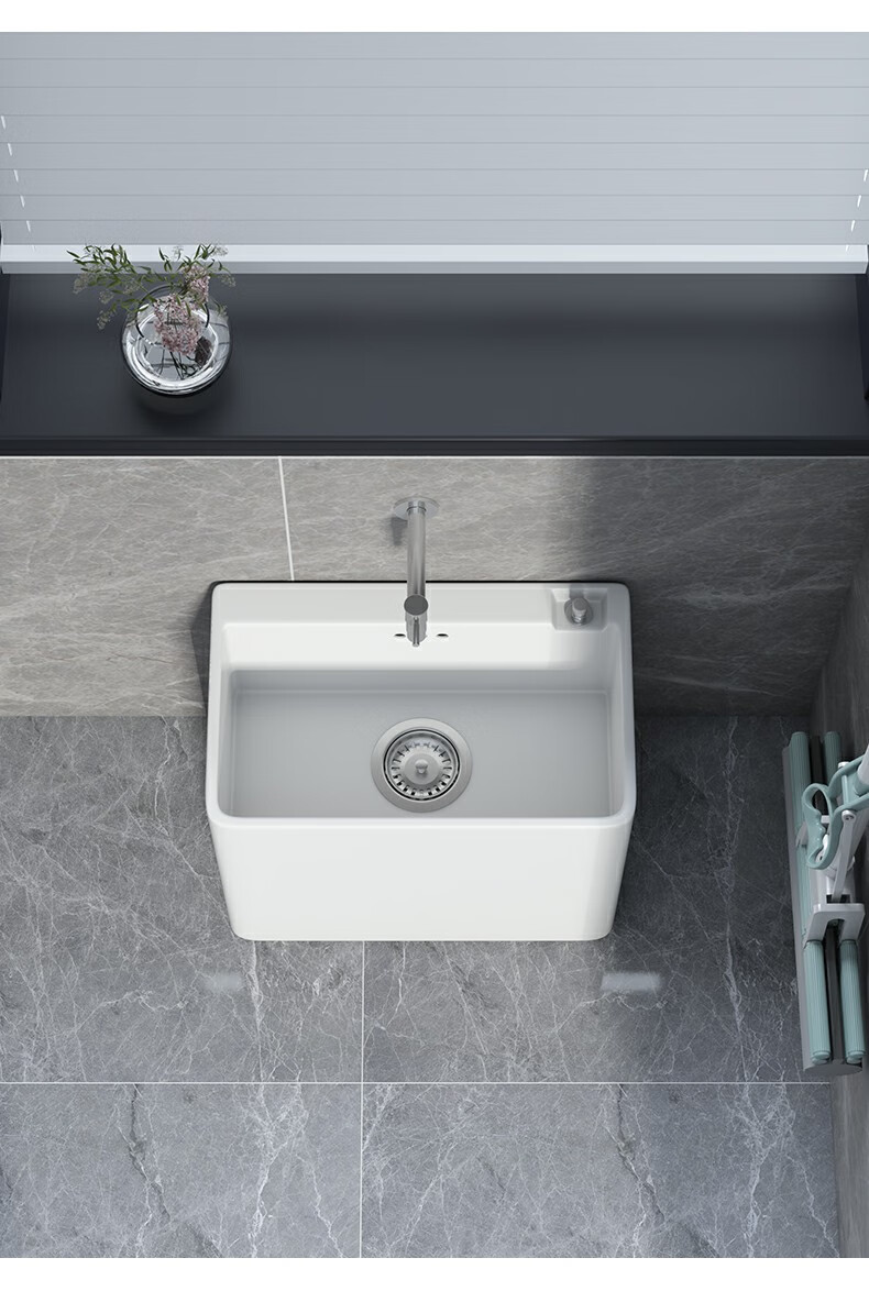 Bailey's ceramic mop pool household balcony basin one-piece rectangular heightened bathroom wash mop pool with faucet sink B165 desk control + spray gun faucet