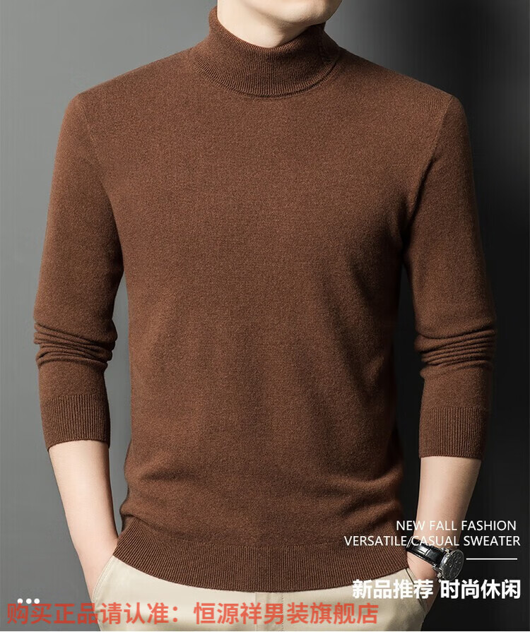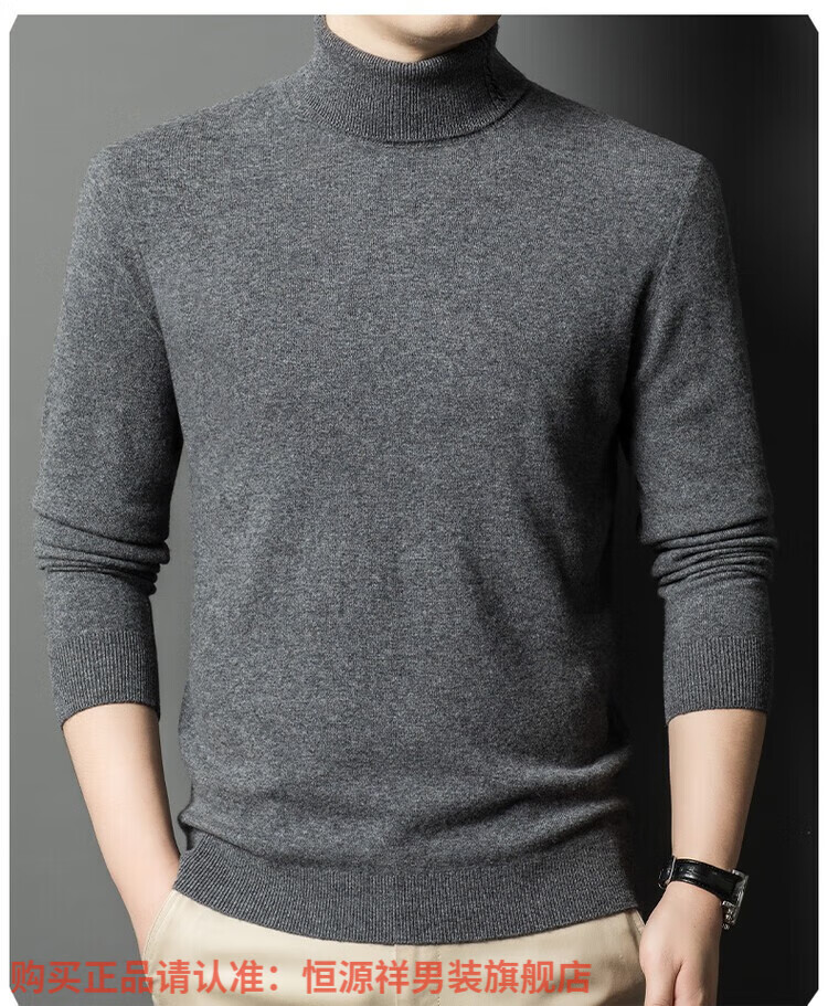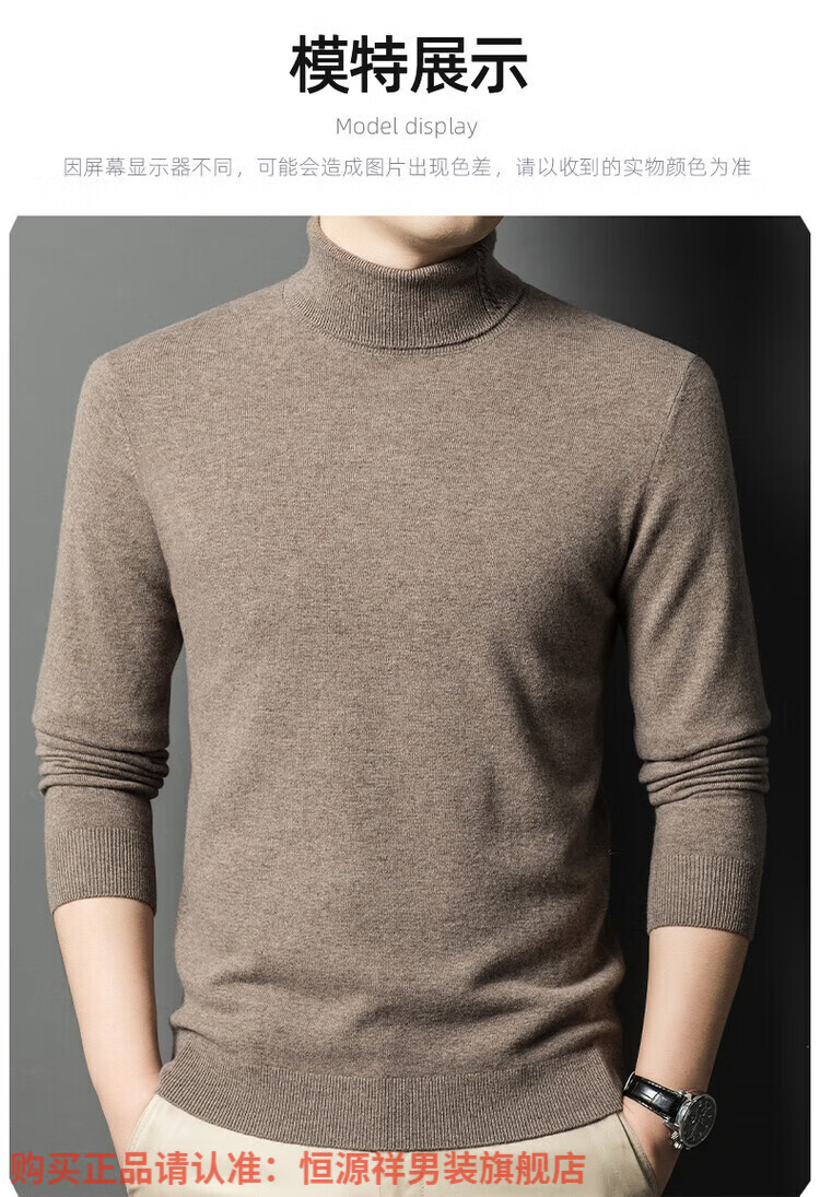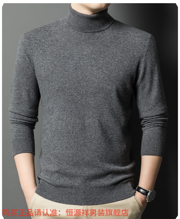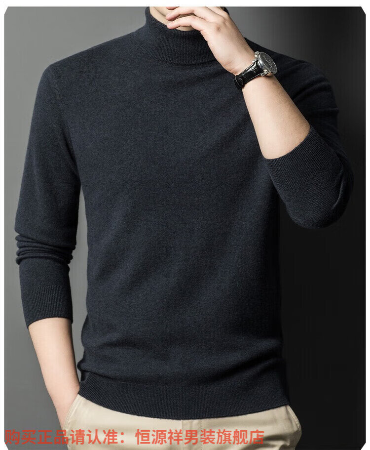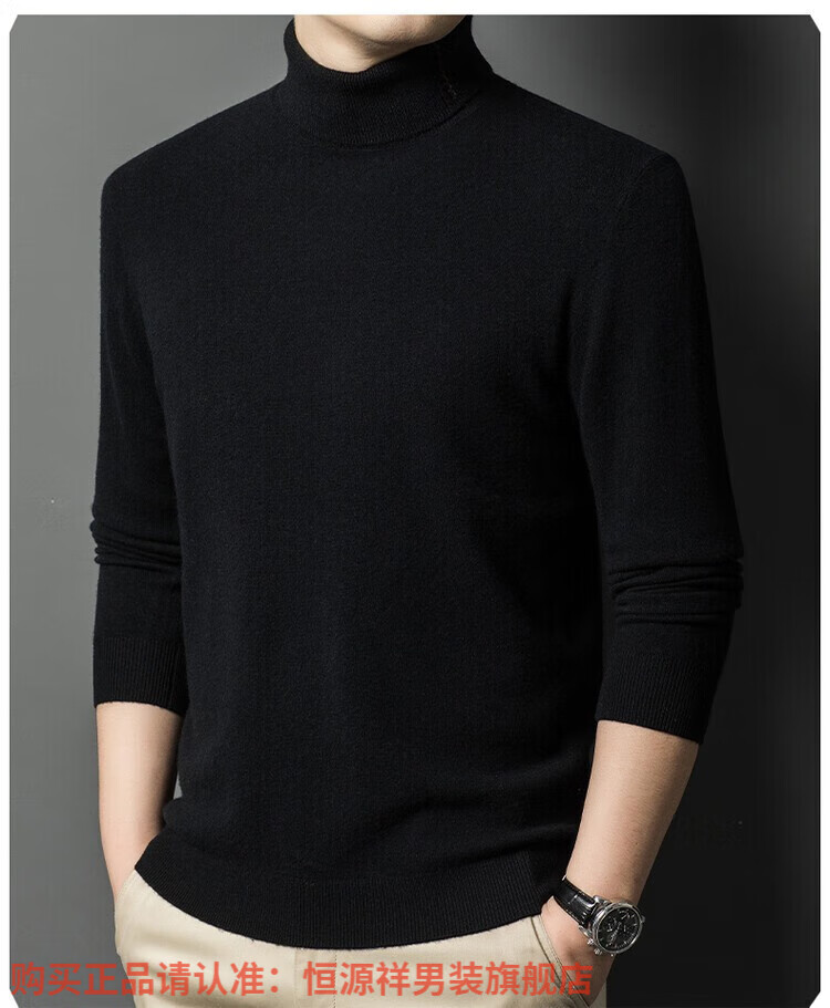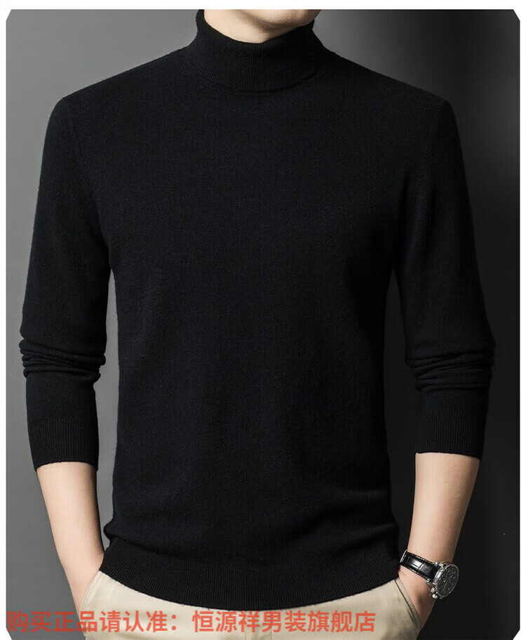Hengyuanxiang high-end cashmere blended turnable turtleneck sweater for men 2025 autumn and winter new solid color sweater warm sweater black L 175/115