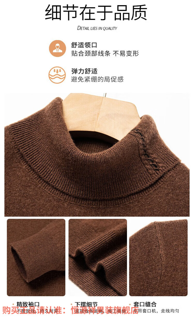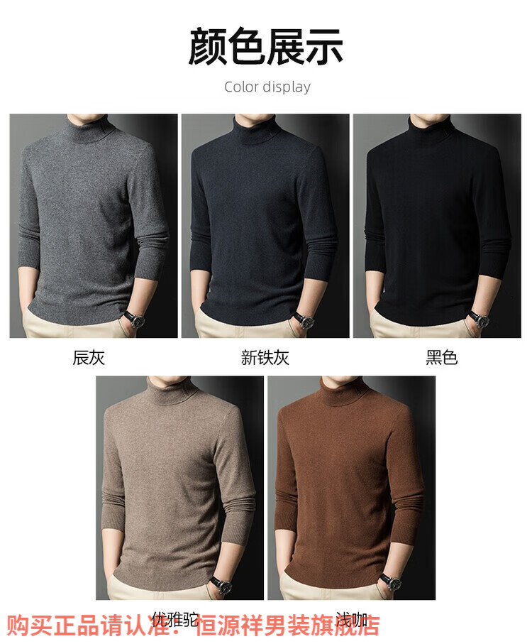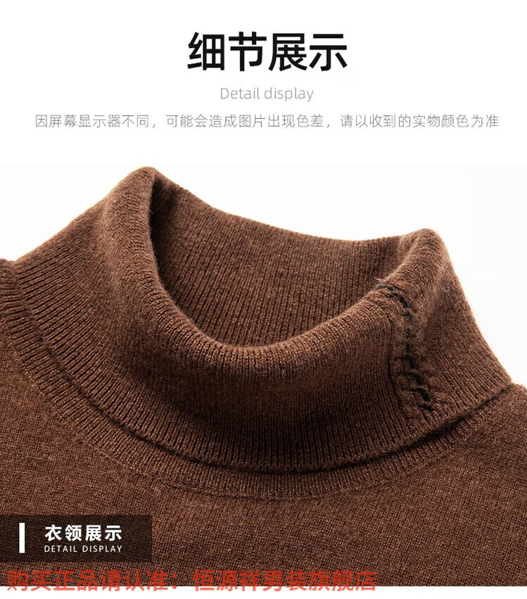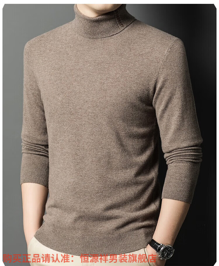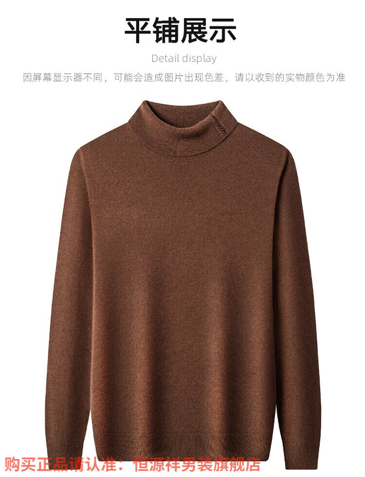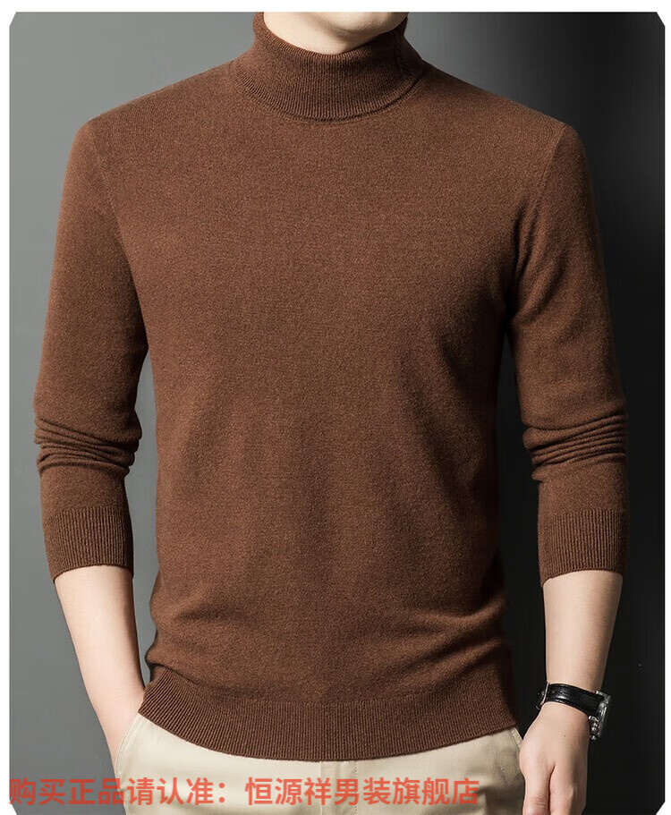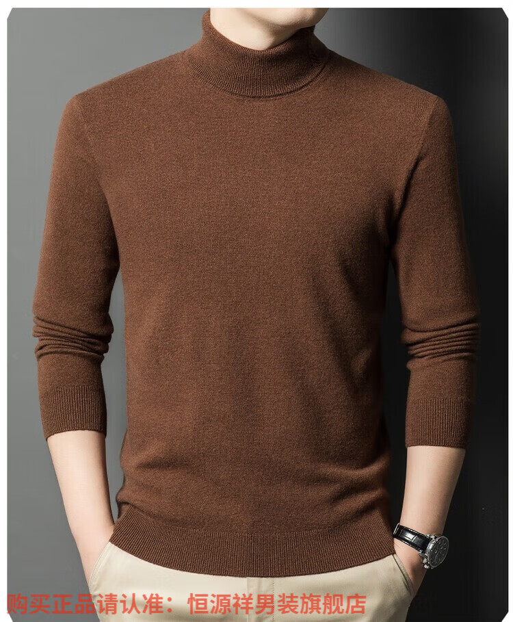 Hengyuanxiang high-end cashmere blended turnable turtleneck sweater for men 2025 autumn and winter new solid color sweater warm sweater black L 175/115