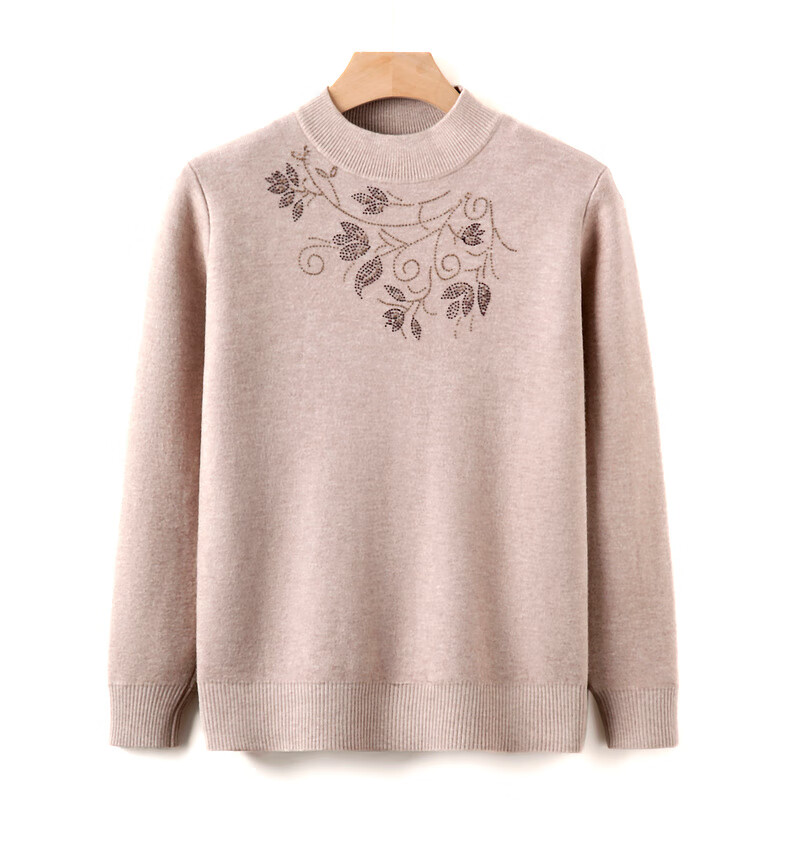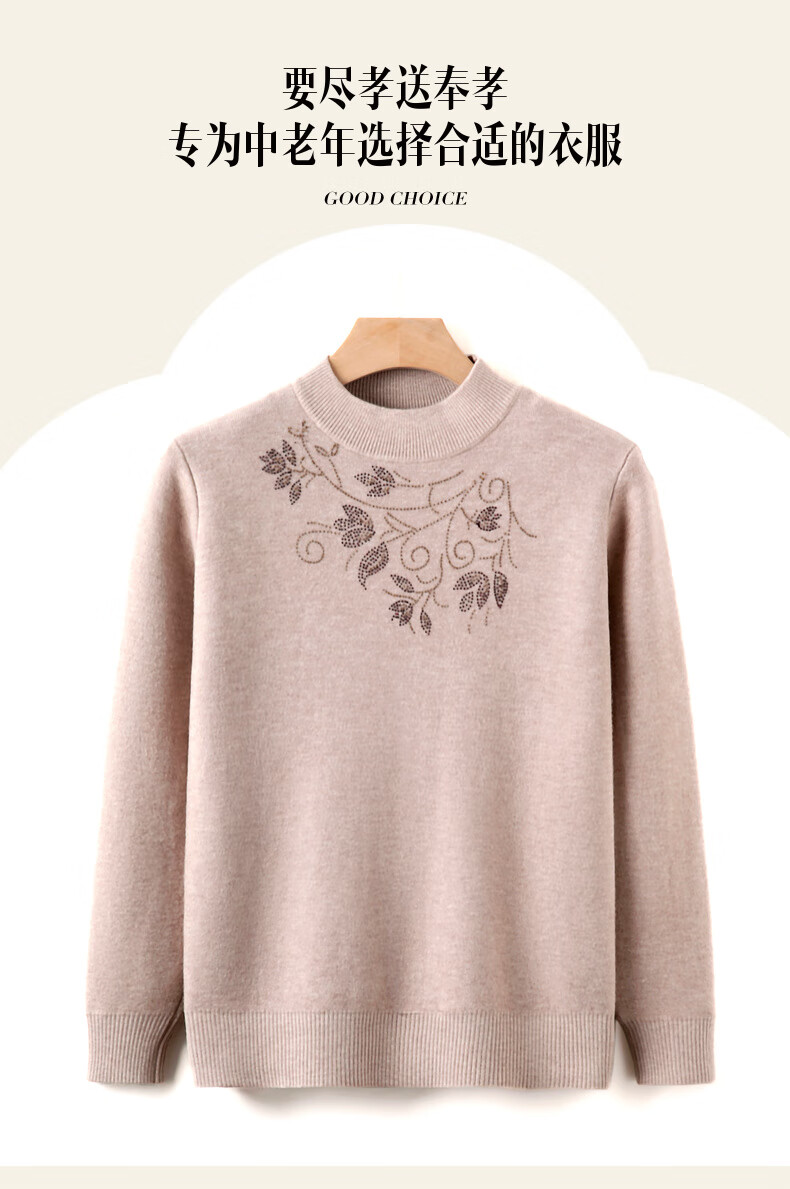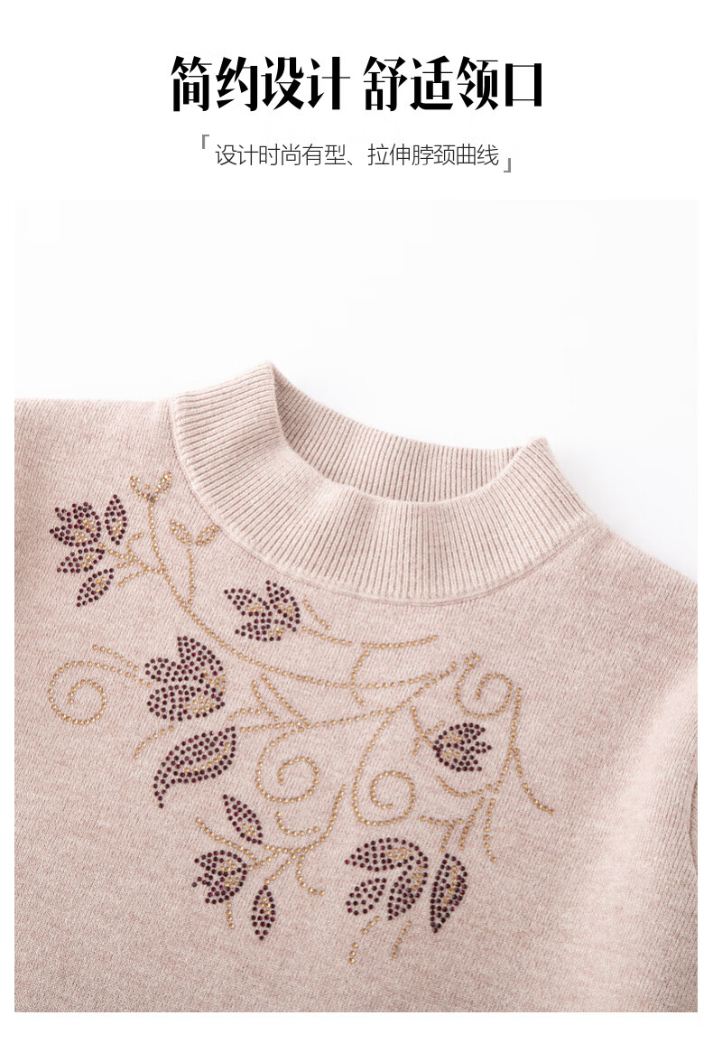 Fengxiao middle-aged mother autumn and winter all-in-one velvet bottoming shirt thickened warm sweater middle-aged and elderly women's tops plus velvet elderly clothes plus velvet khaki 3XL (recommended 115-130 Jin Jin equals 0.5 kg)