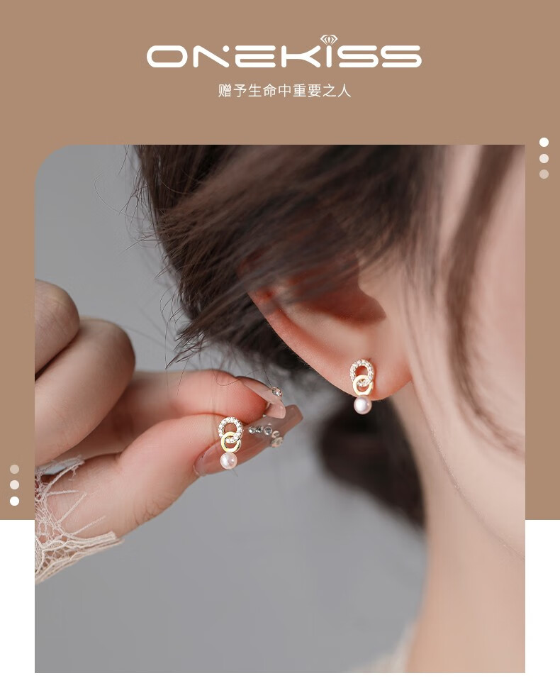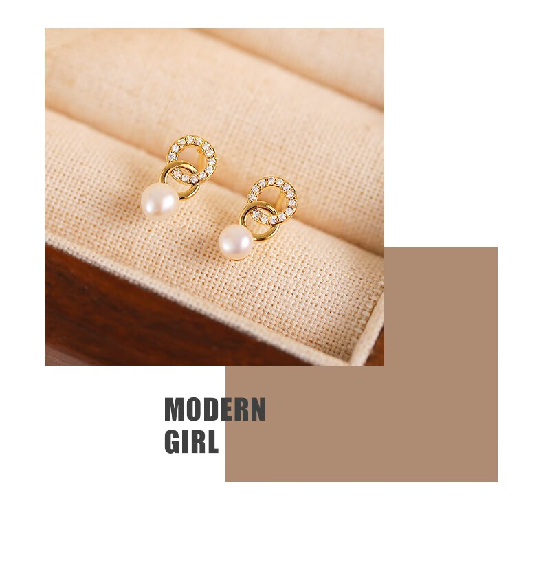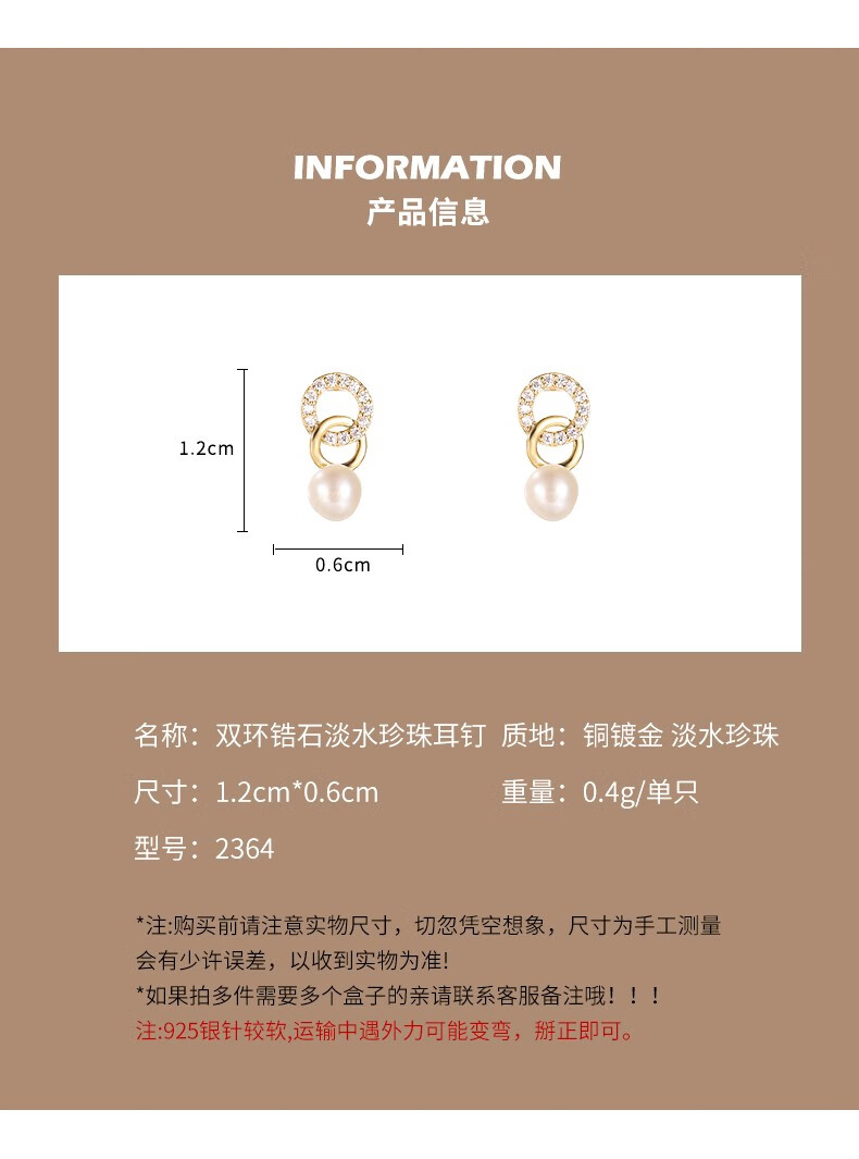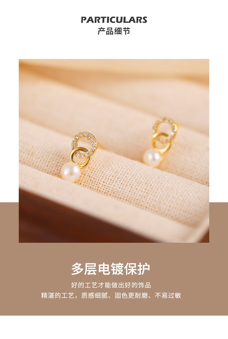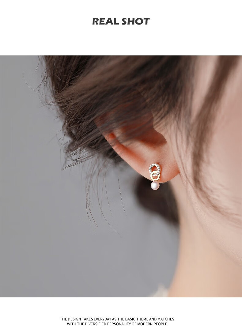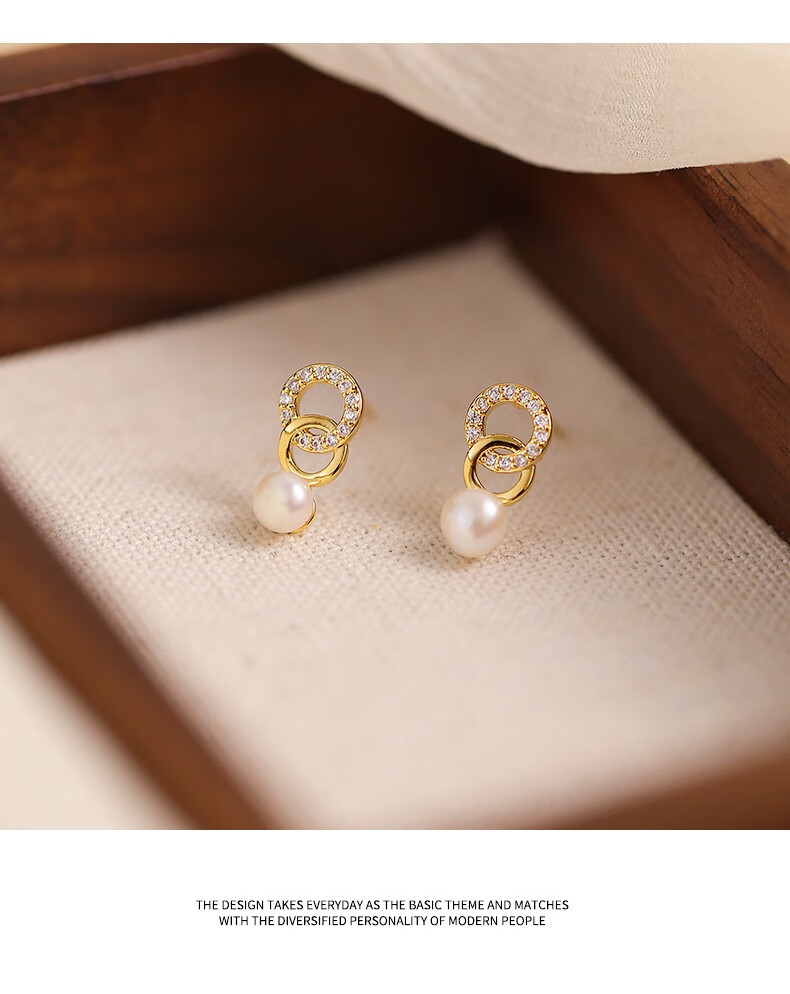 BOMP Shijiahua Roski Zirconium S sterling silver needle double ring pearl earrings 2025 new hot style earrings women's autumn and winter earrings S999 sterling silver needle pearl double ring earrings 2364