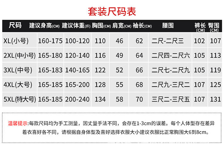 China (cm) 165 / 88-90 170 / 96-98 175 / 108-110 180 / 118-122 185 / 126-130