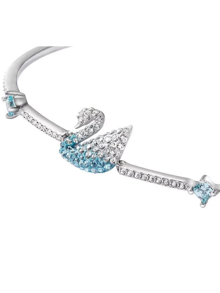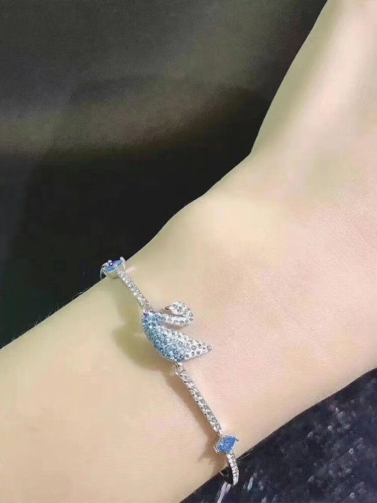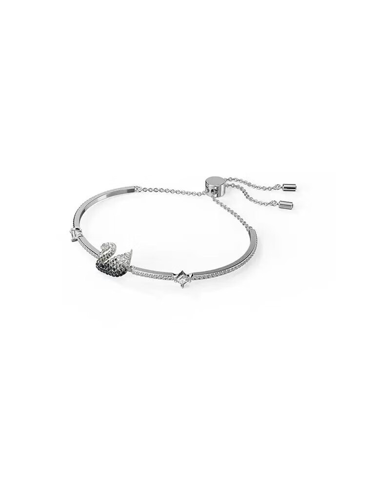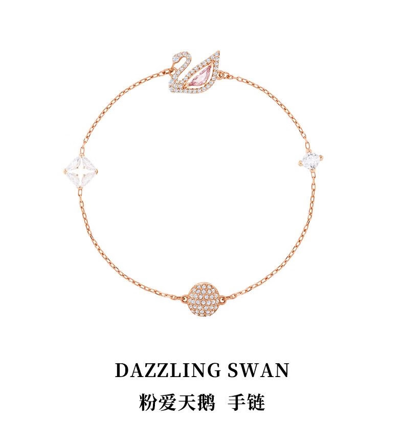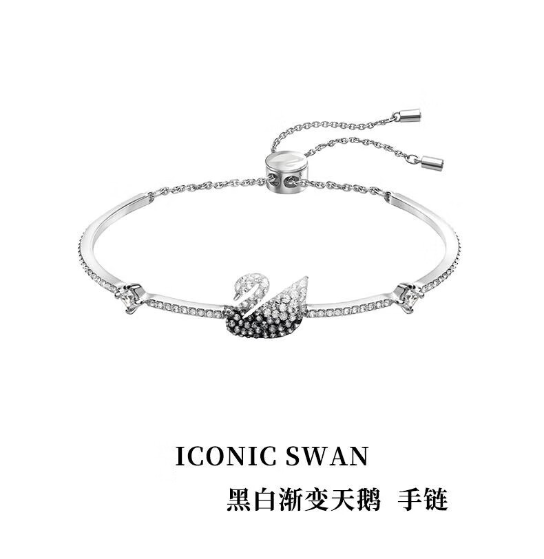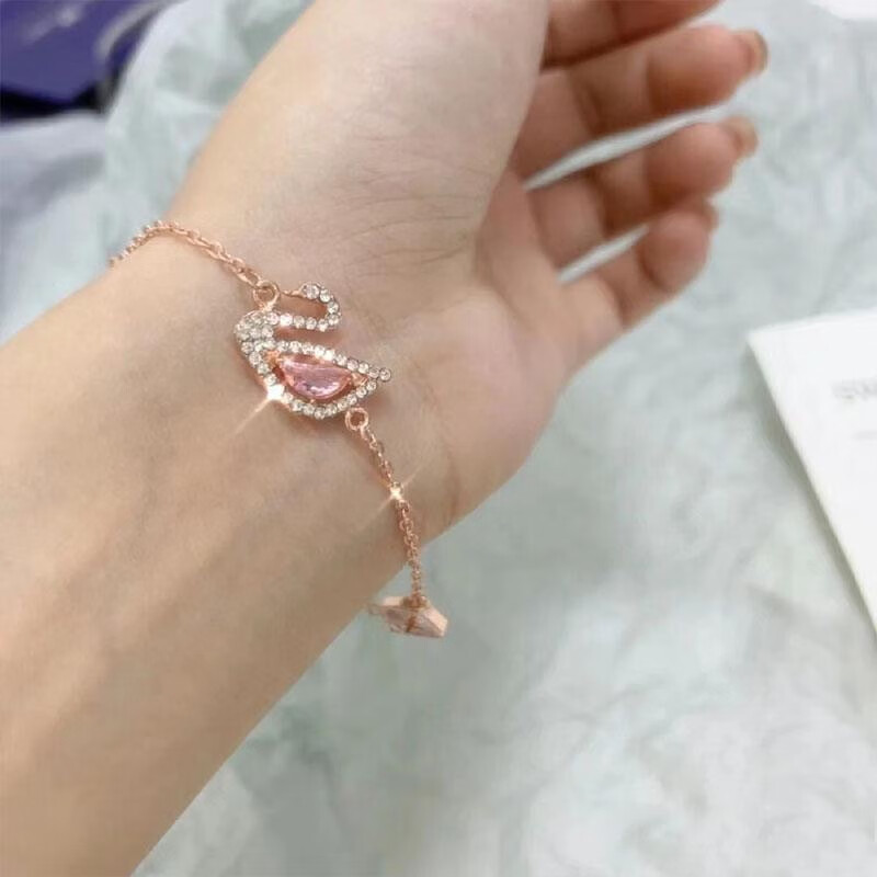 Duchen set new classic black and white gradient swan bracelet for women, pink swan bracelet + box + hand bag