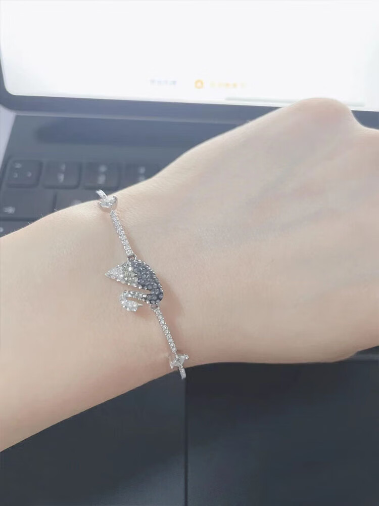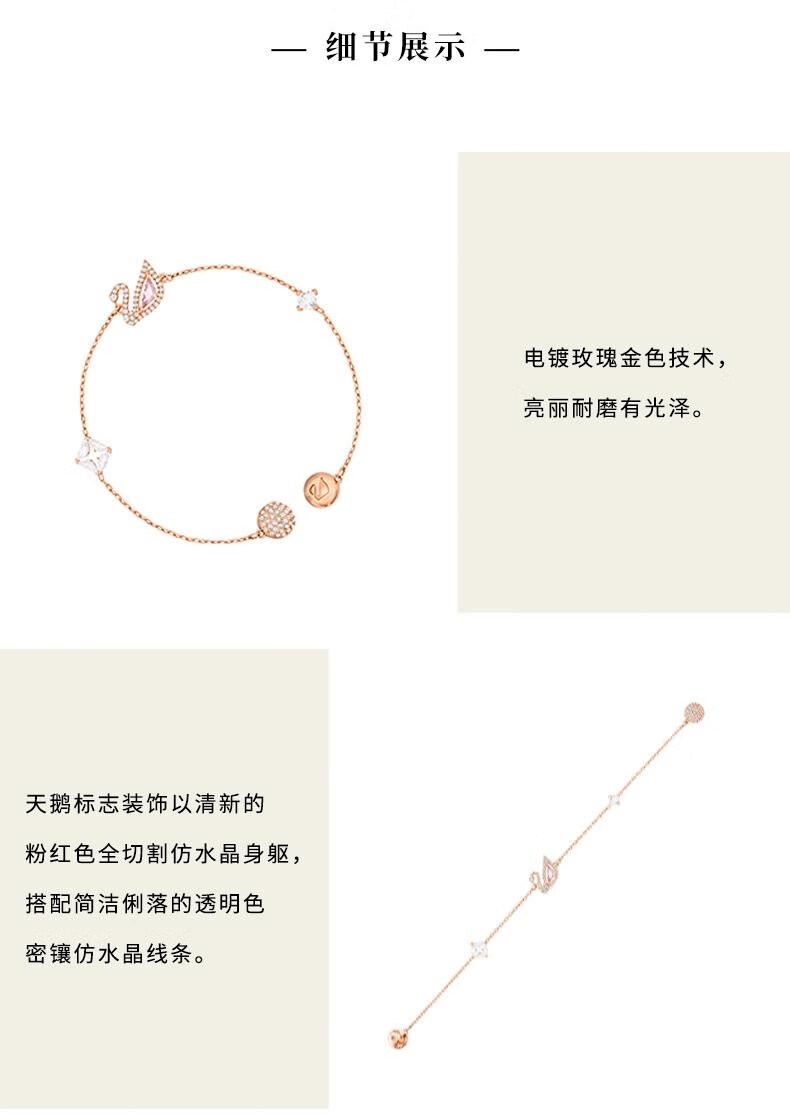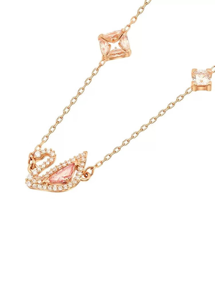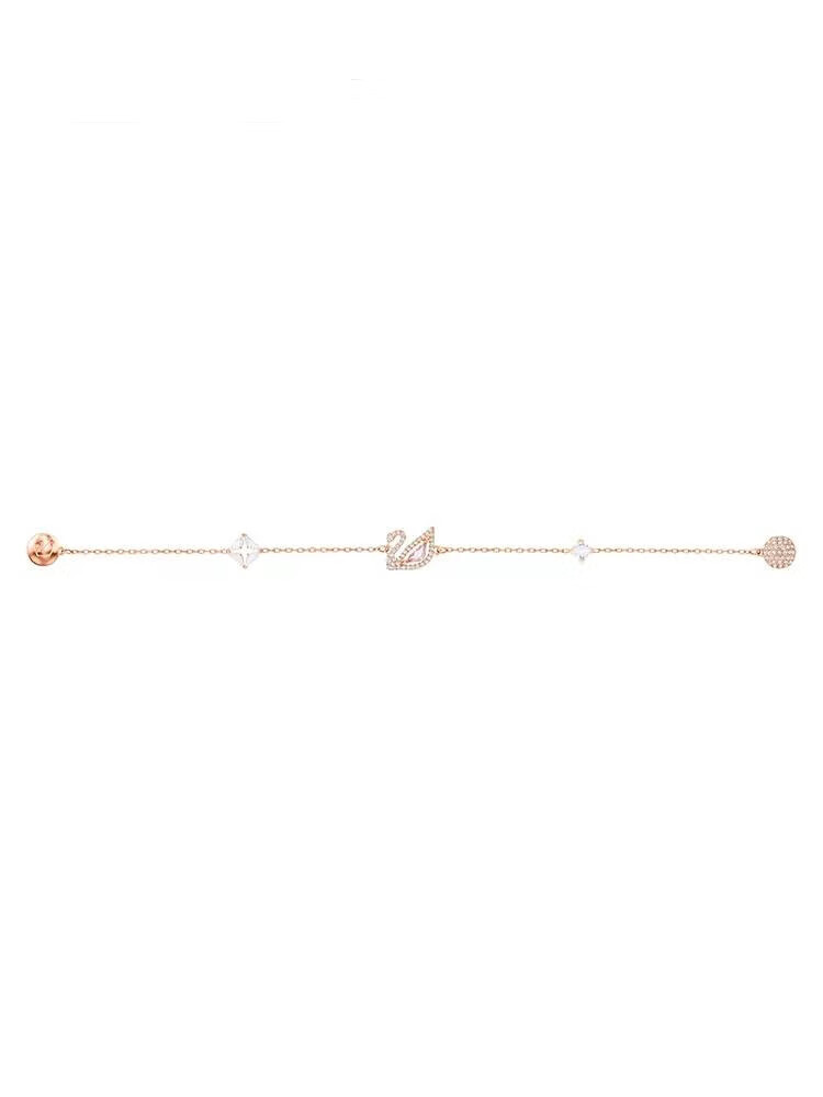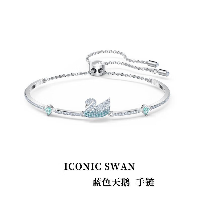 Duchen set new classic black and white gradient swan bracelet for women, pink swan bracelet + box + hand bag