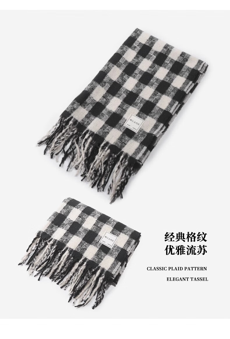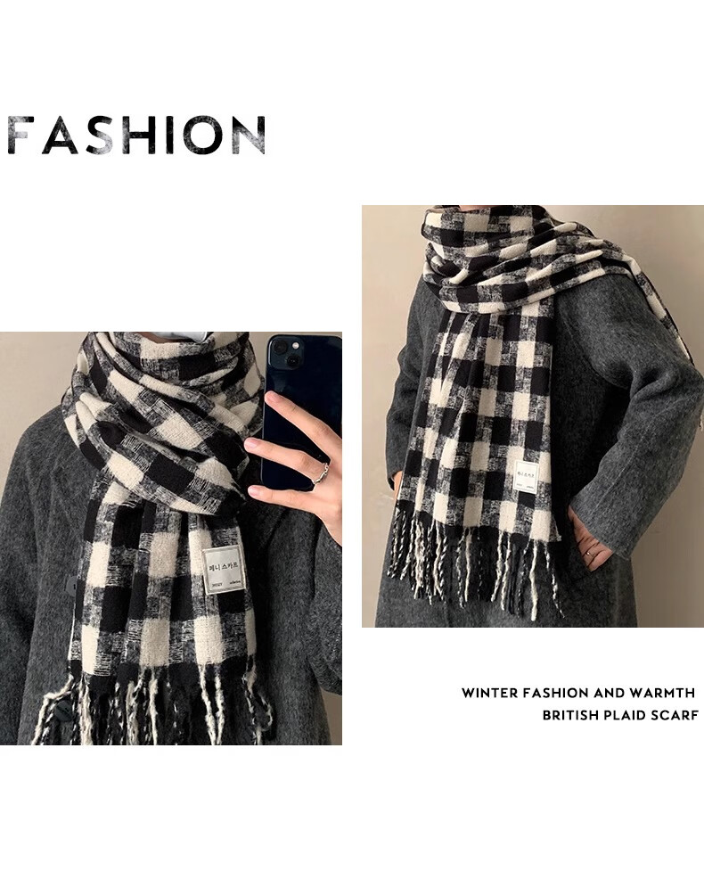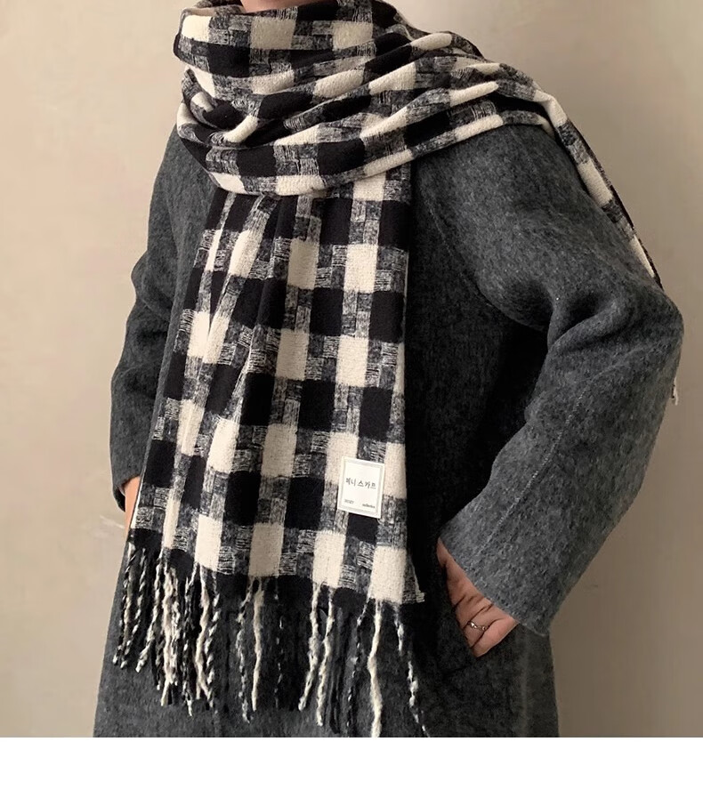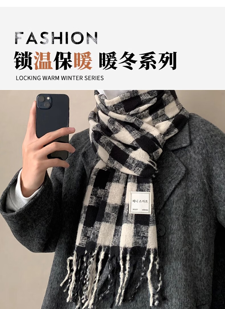 Caikaying new autumn and winter scarf men's Korean style fashion versatile tassel shawl thickened warm scarf men's windproof and cold plaid patch scarf black