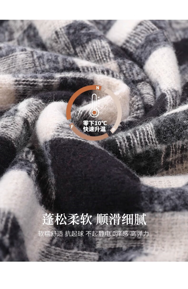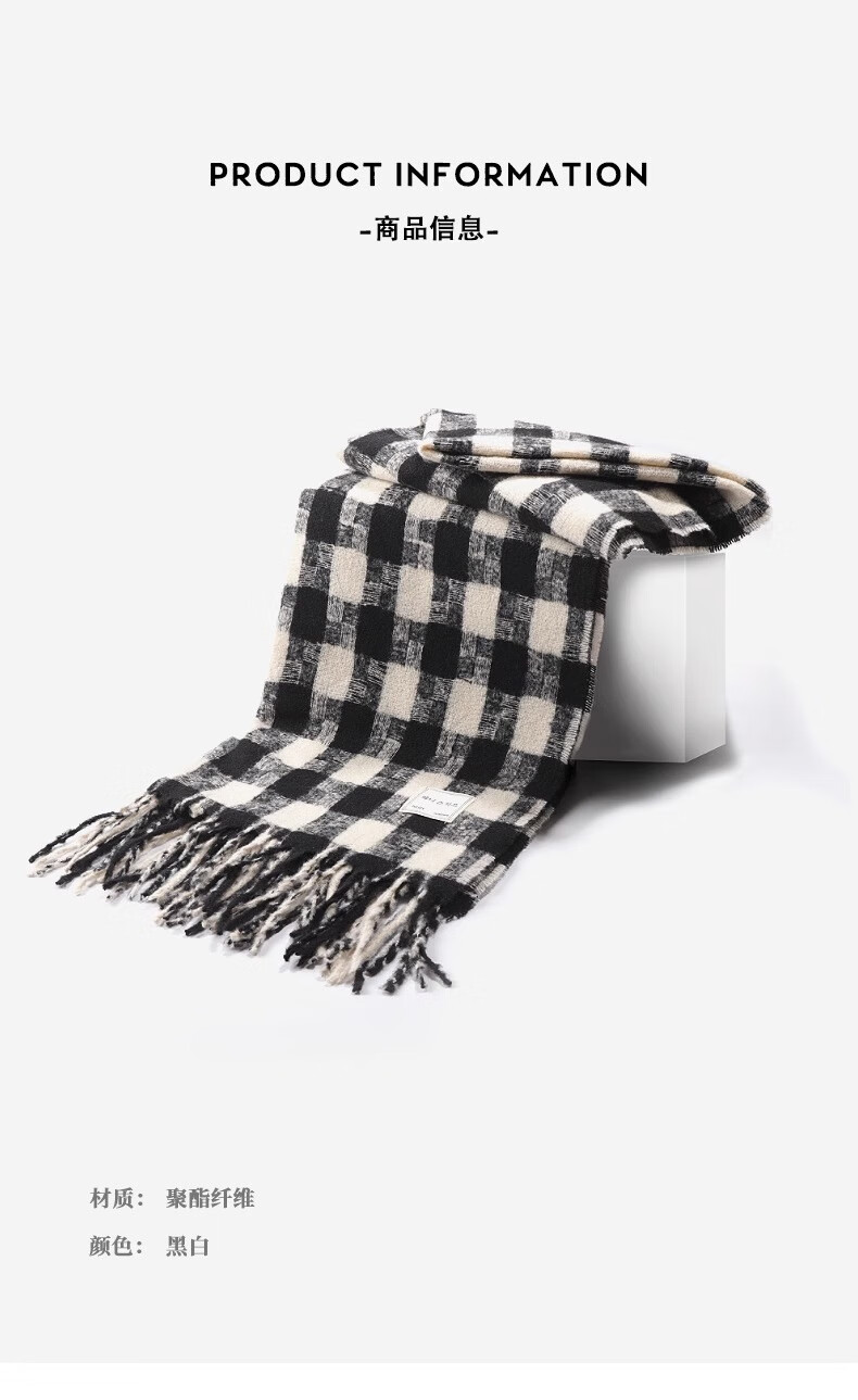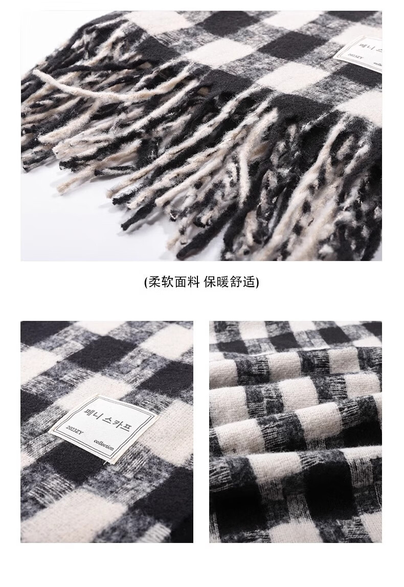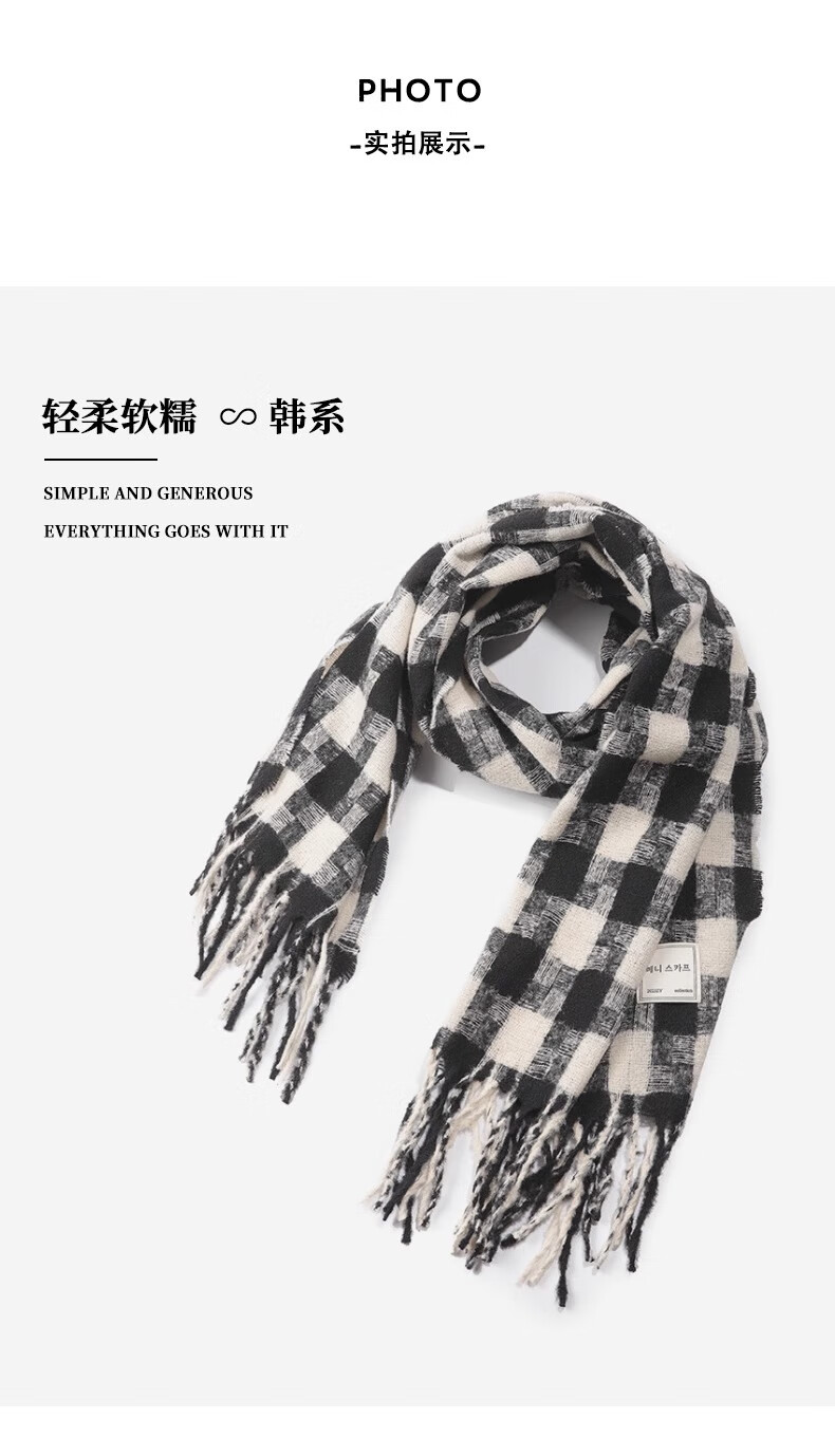 Caikaying new autumn and winter scarf men's Korean style fashion versatile tassel shawl thickened warm scarf men's windproof and cold plaid patch scarf black