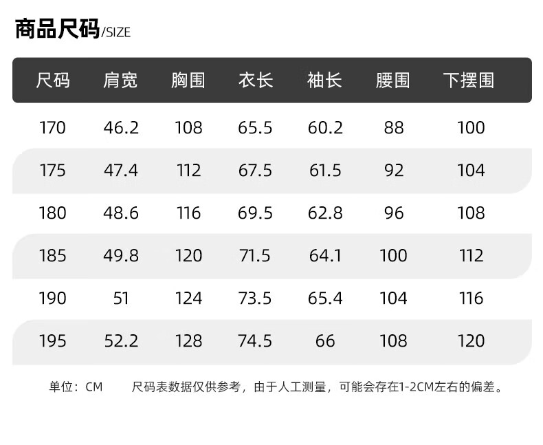 China (cm) 160-165/84-86 165-170 / 88-90 167-172 / 92-96 168-173 / 98-102 170-176 / 106-110