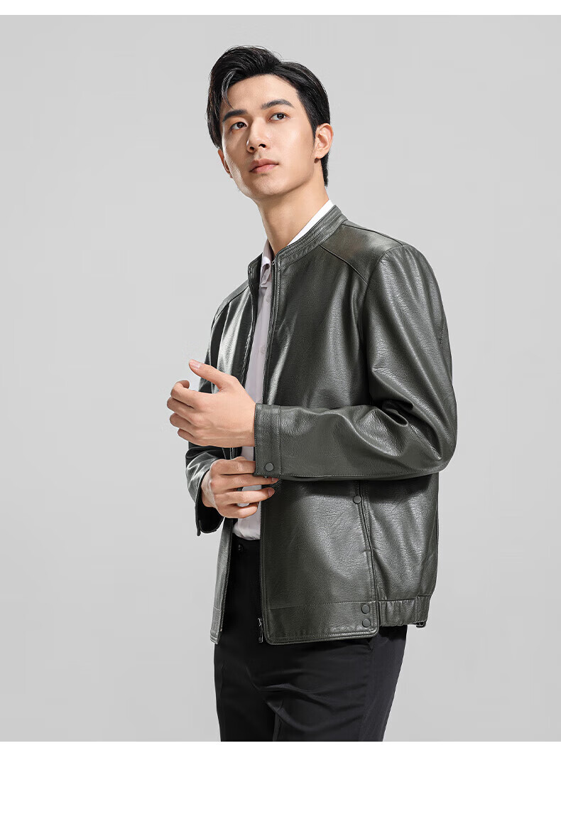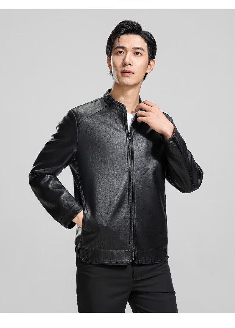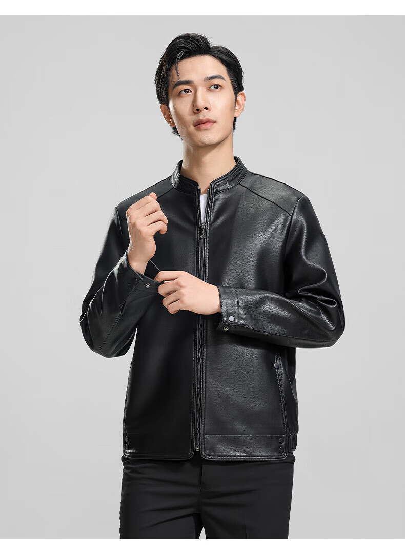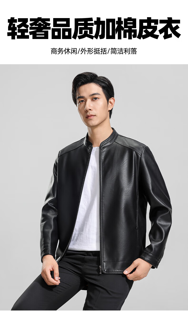 ROMON cotton imitation PU leather jacket for men winter new business casual light luxury fashion versatile warm leather jacket Hongka L 175