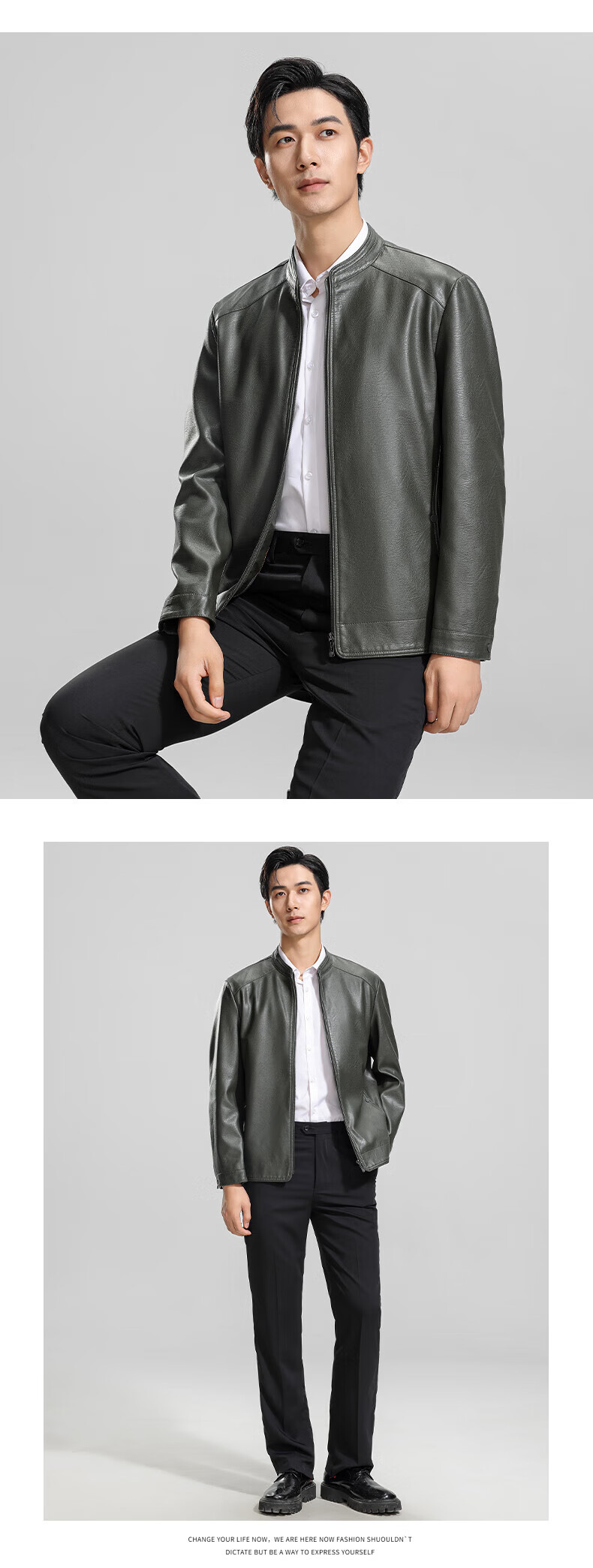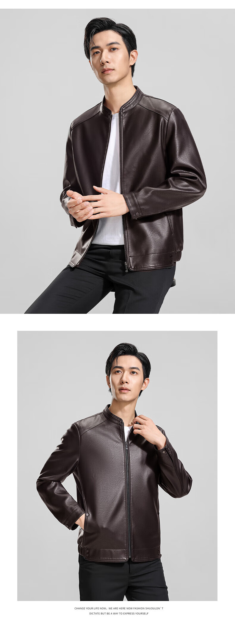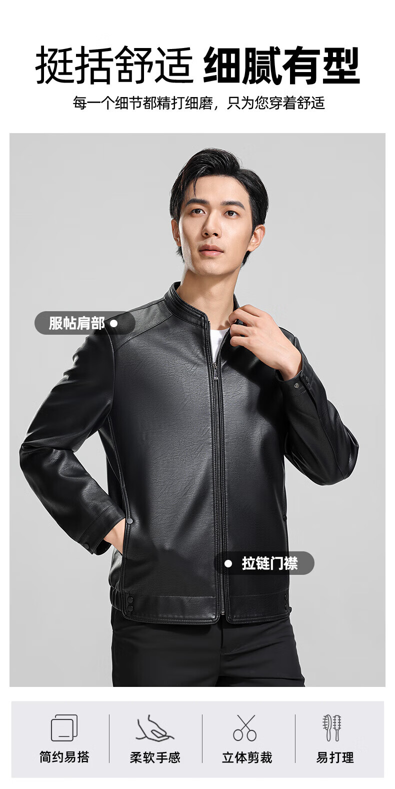 ROMON cotton imitation PU leather jacket for men winter new business casual light luxury fashion versatile warm leather jacket Hongka L 175