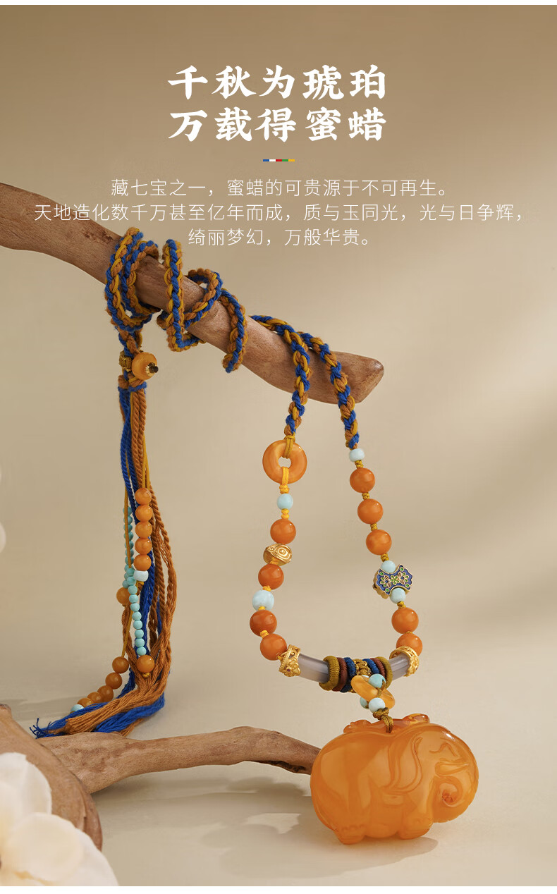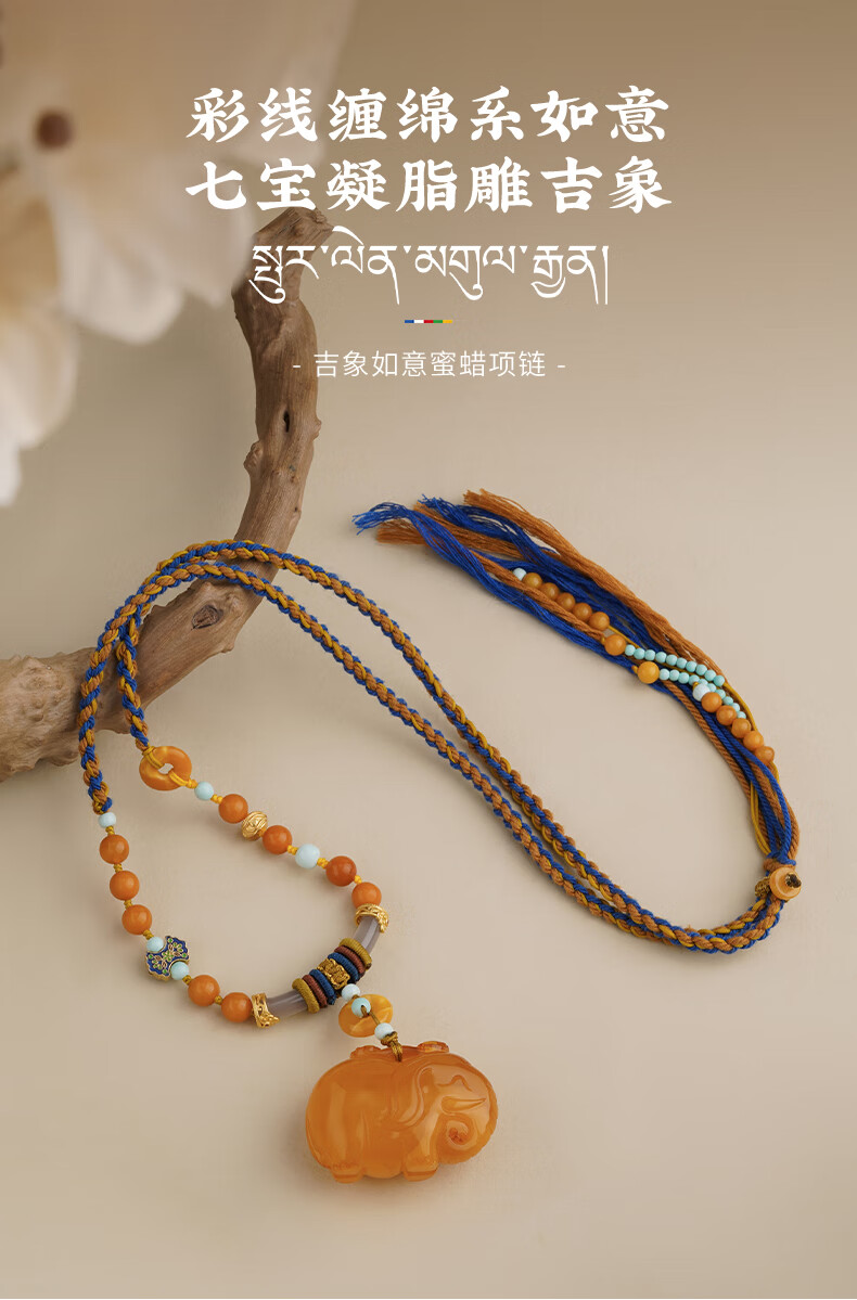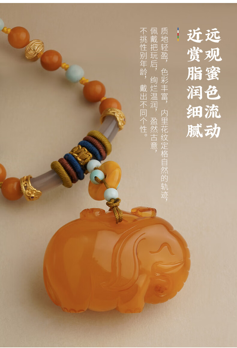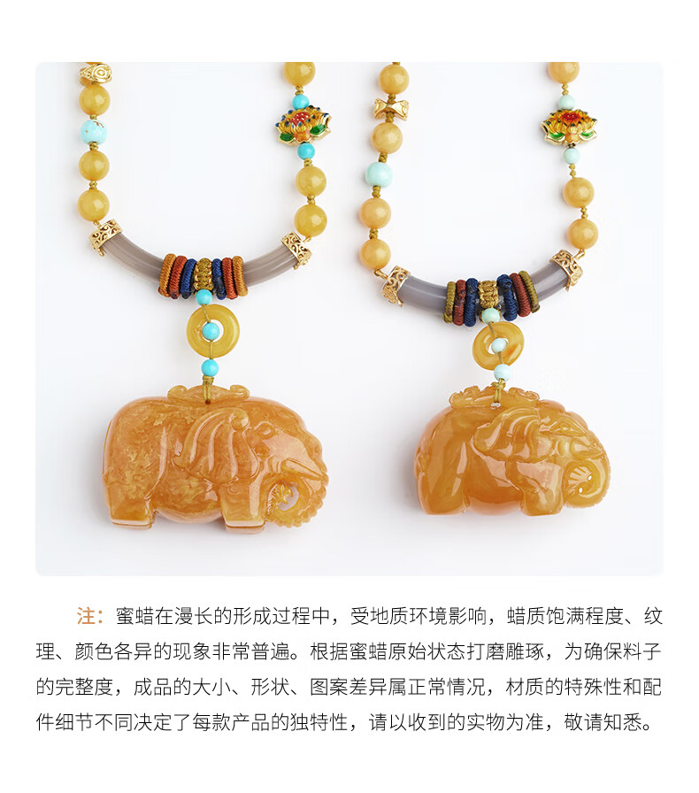 Potala Palace beeswax pendant auspicious elephant necklace safety buckle amber silver inlaid agate turquoise birthday gift for girlfriend and wife beeswax auspicious elephant 925 silver pendant (new style)
