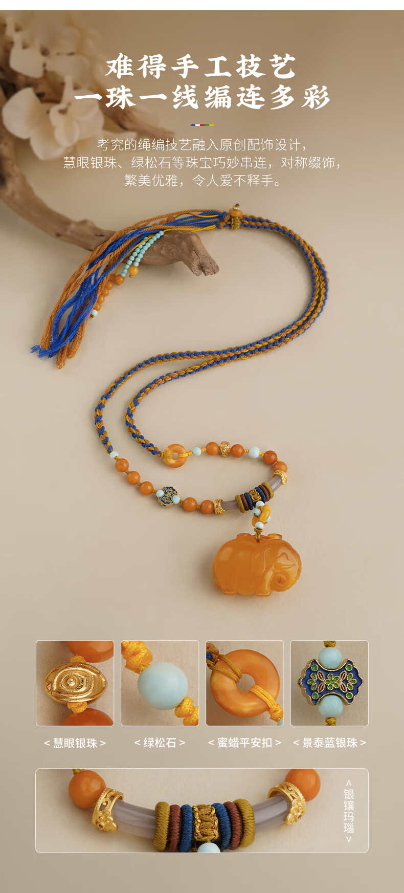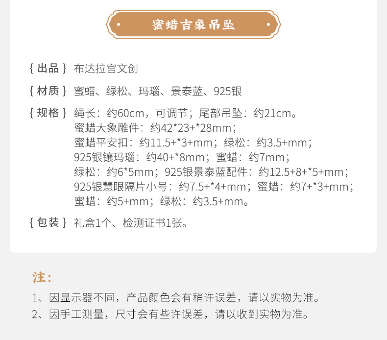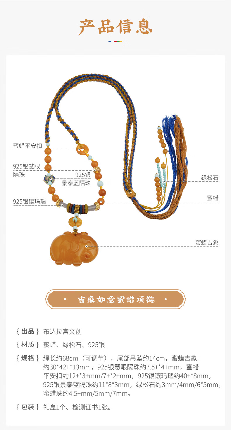Potala Palace beeswax pendant auspicious elephant necklace safety buckle amber silver inlaid agate turquoise birthday gift for girlfriend and wife beeswax auspicious elephant 925 silver pendant (new style)