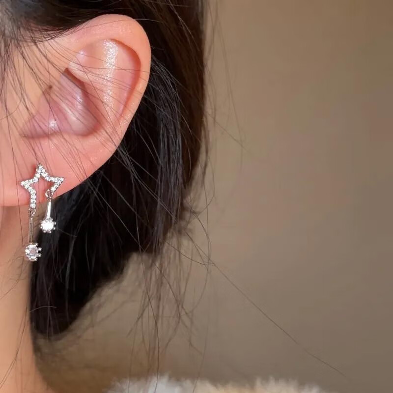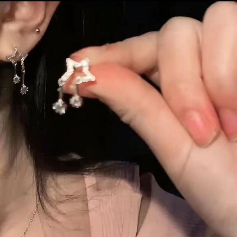 DING FEI S925 Silver Needle Star Earrings Women's Niche Earrings 2025 New Trendy Earrings Women's Exquisite Earrings Diamond Square Earrings Silver Needle Four-piece Set A16-309