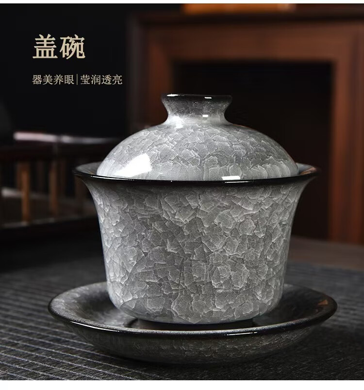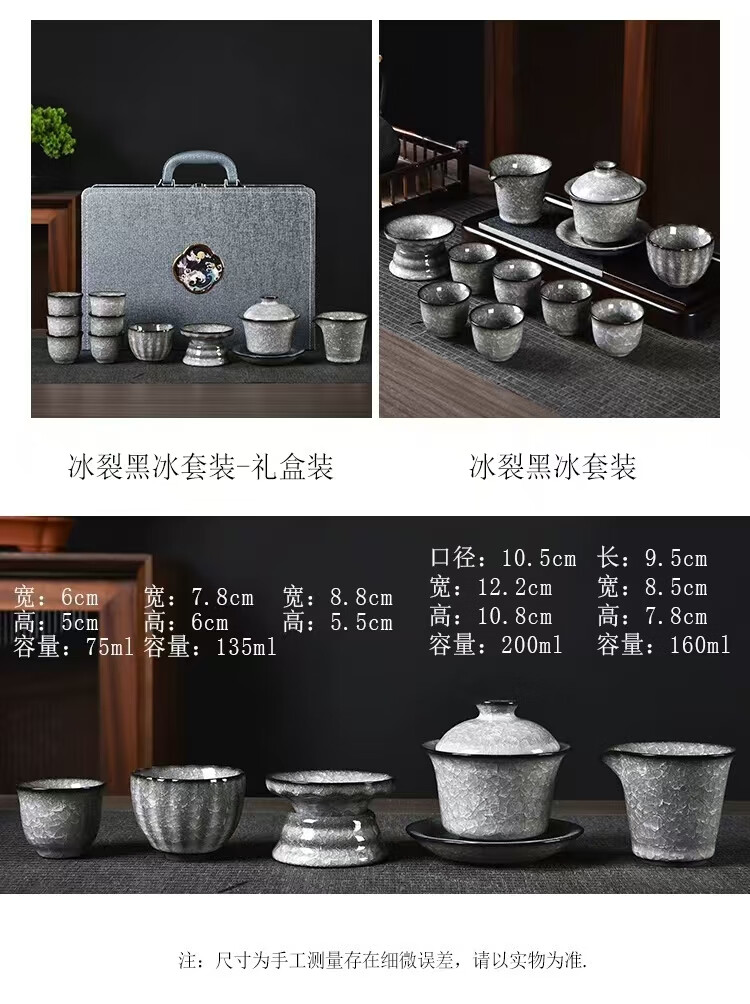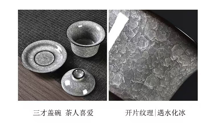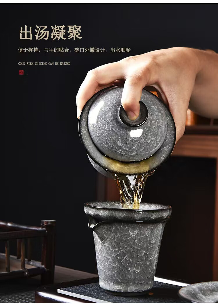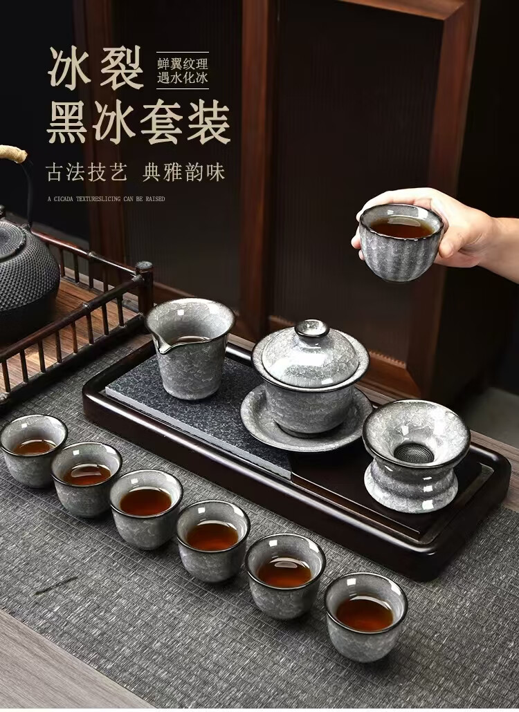 Black Ice Flower Teacup Kung Fu Tea Set Home Office Host Cup High-end Kung Fu Complete Tea Set Black Ice Sancai Bowl