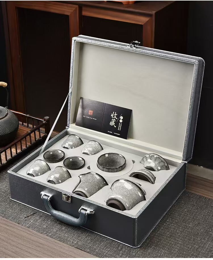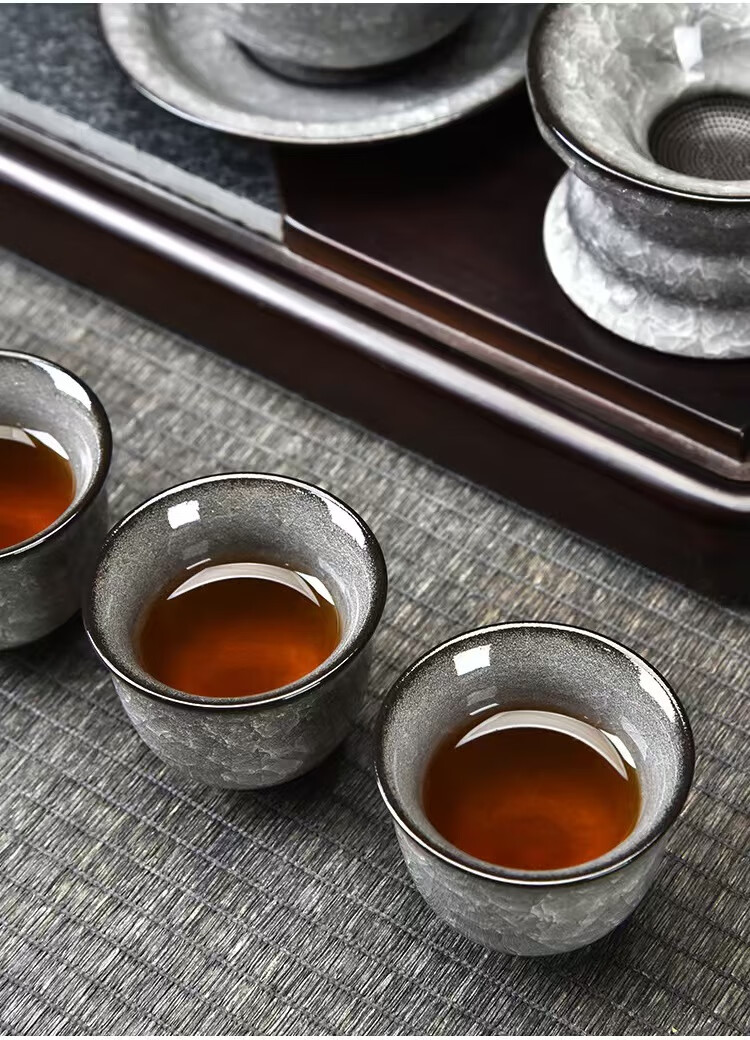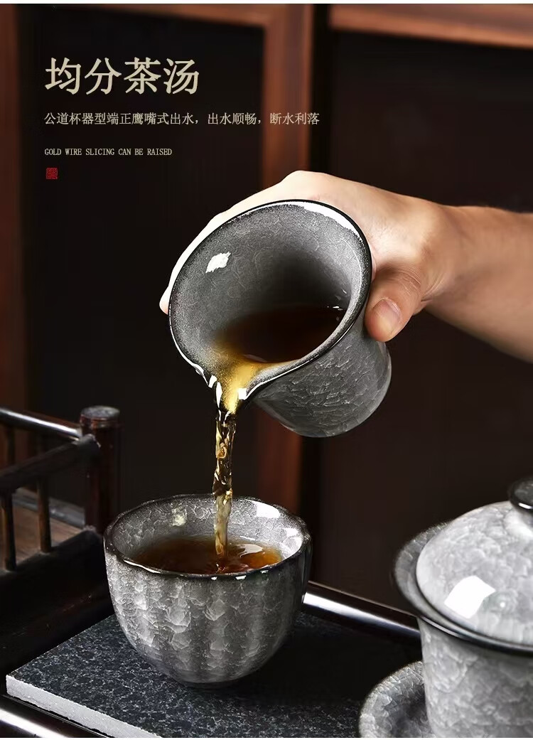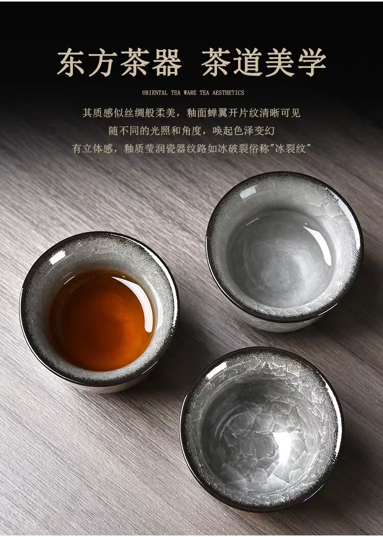 Black Ice Flower Teacup Kung Fu Tea Set Home Office Host Cup High-end Kung Fu Complete Tea Set Black Ice Sancai Bowl