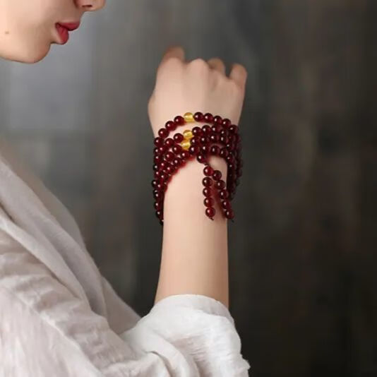 Chenru Natural Baltic Blood Amber 108 Buddha Beads Bracelet Amber Beeswax Men's and Women's Simple Versatile Bracelet Jewelry 10mm