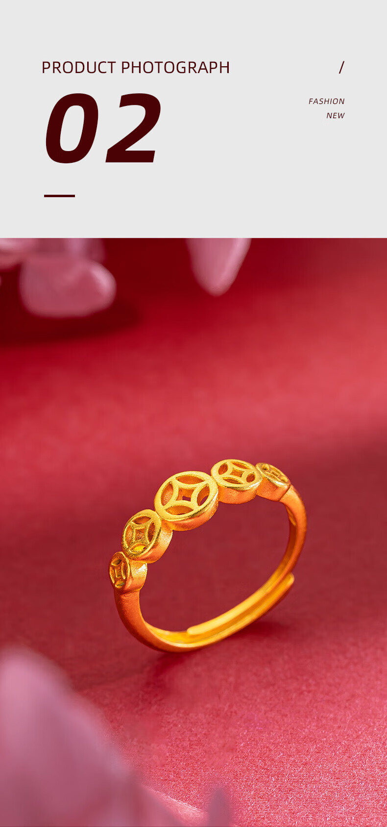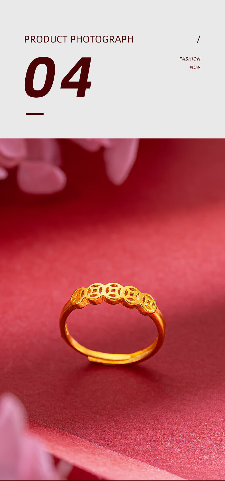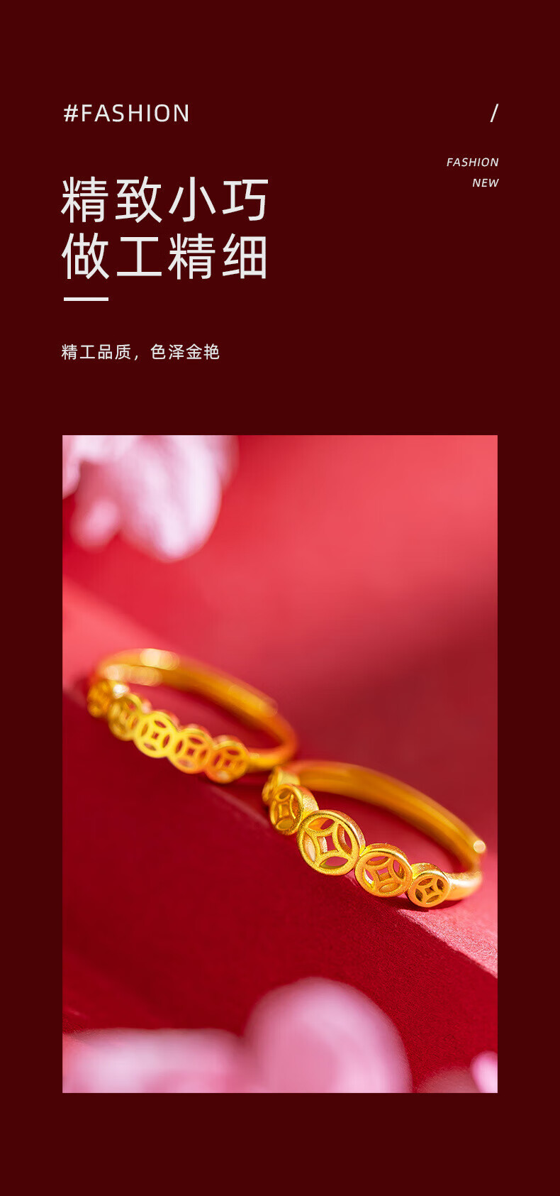 Chenru 18K gold ring, national trend, retro money live ring, rich imitation 18k gold copper coin couple ring, small money ring for women