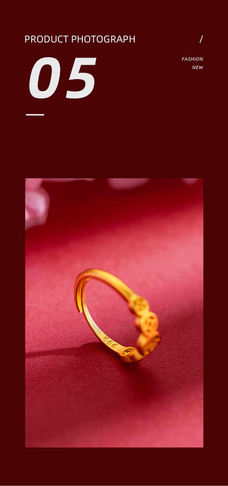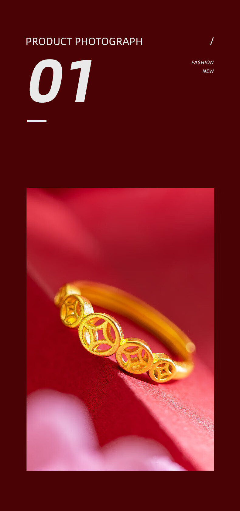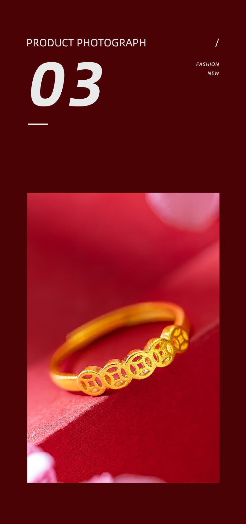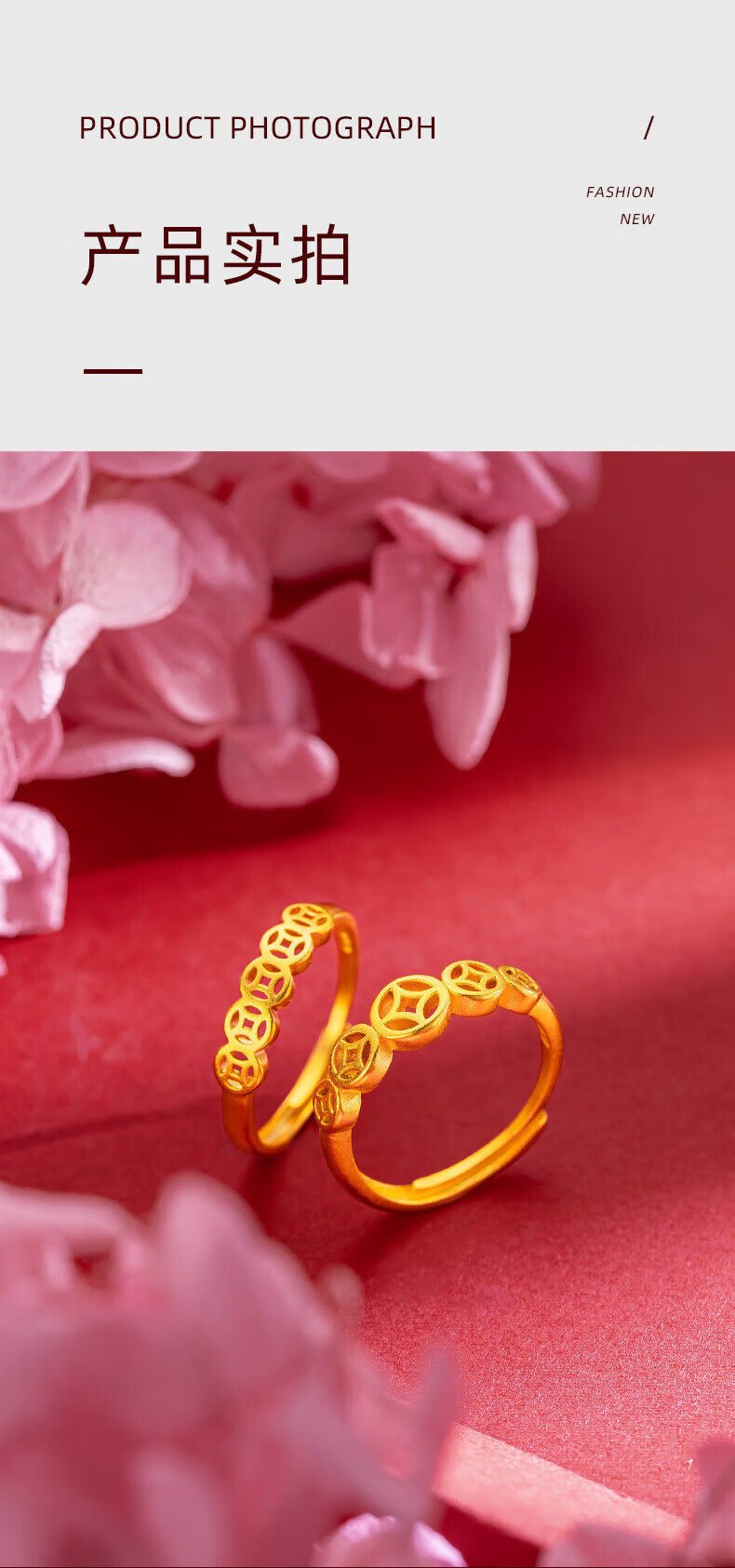 Chenru 18K gold ring, national trend, retro money live ring, rich imitation 18k gold copper coin couple ring, small money ring for women