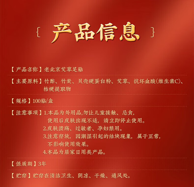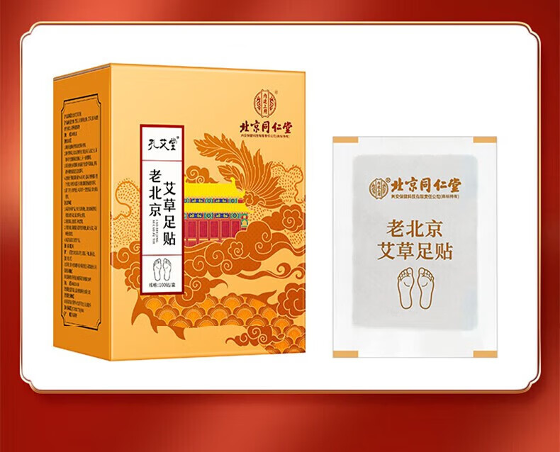 Beijing Tongrentang Old Beijing Mugwort Foot Patch Self-heating Patch Warm Foot Patch Remove Mugwort Leaves Sleeping Foot Patch Wet Self-heating Warm Foot Patch Hot Compress Patch 1 box/100 patches effective pack
