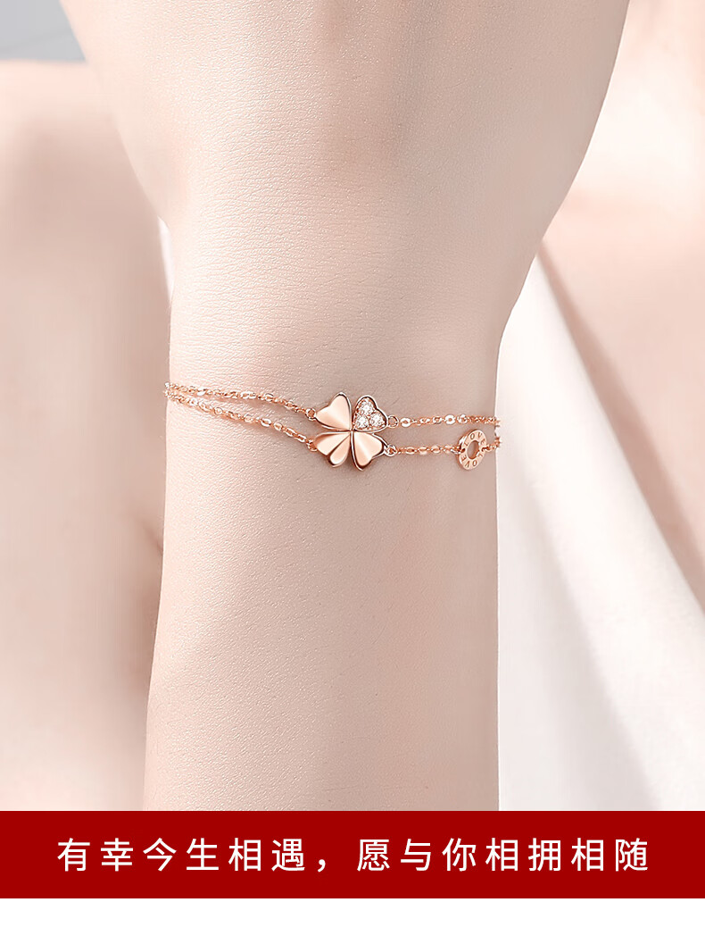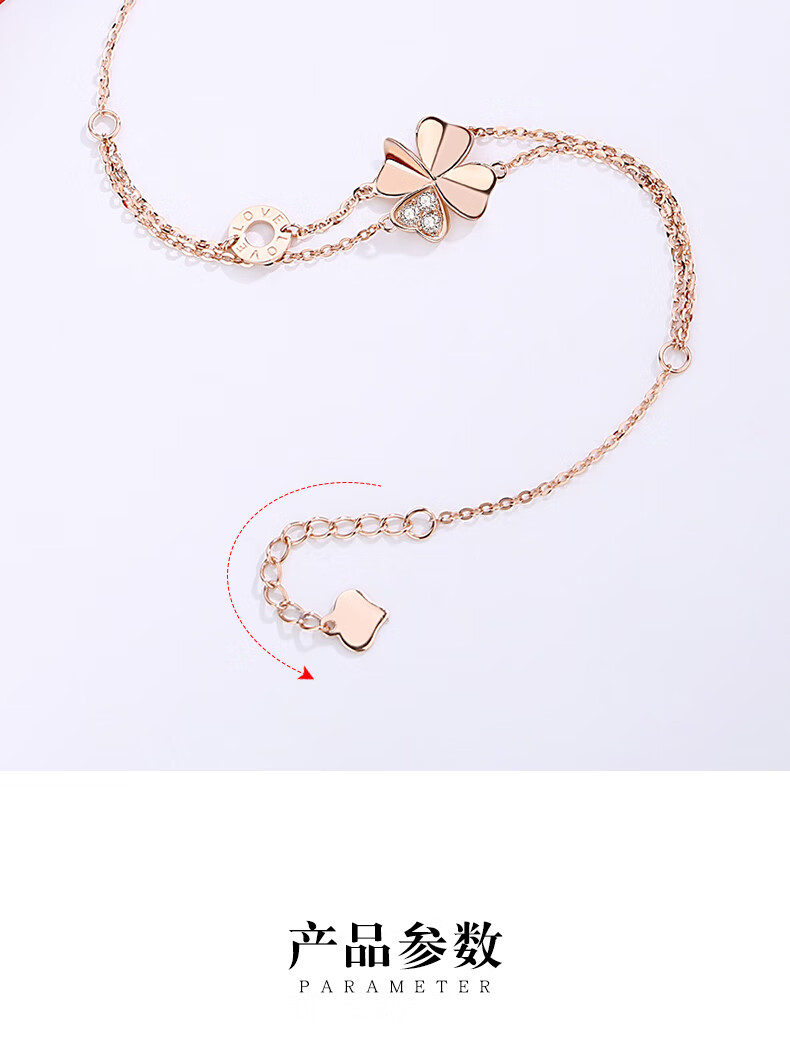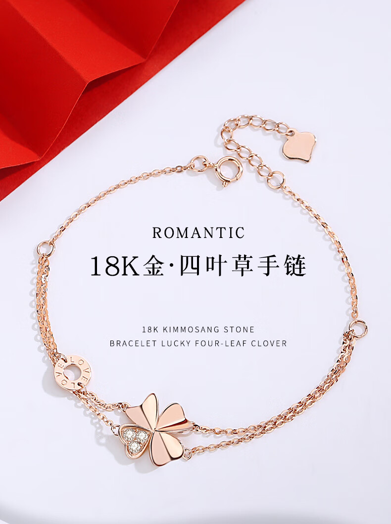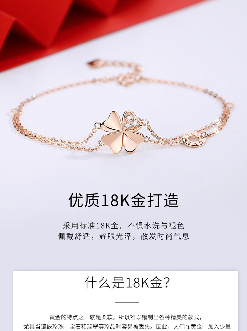 Duchen Light Luxury Four Leaf Clover 18k Gold Bracelet Girls High Quality Hand Jewelry Valentine's Day Birthday Gift for Girlfriend and Wife 1