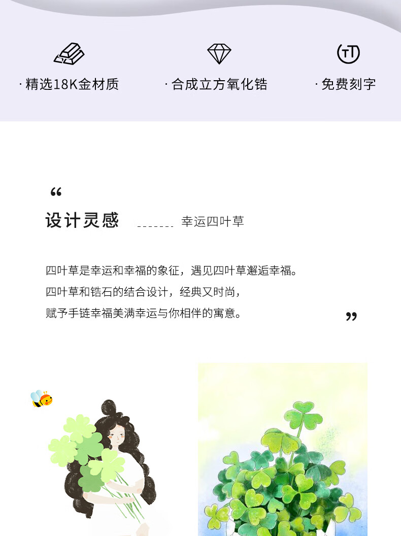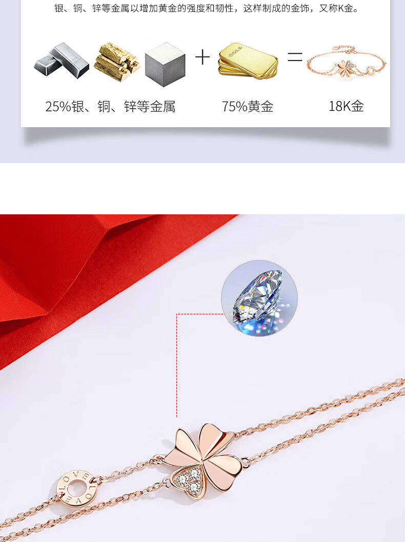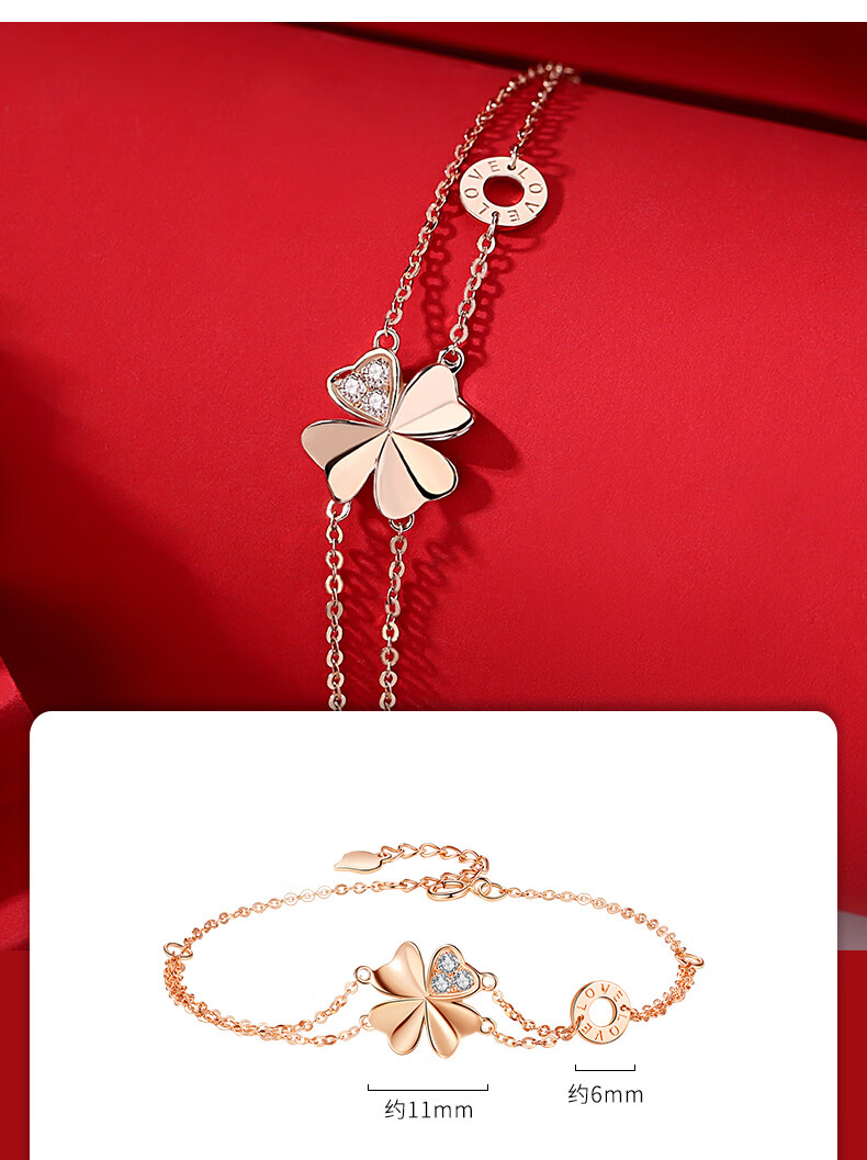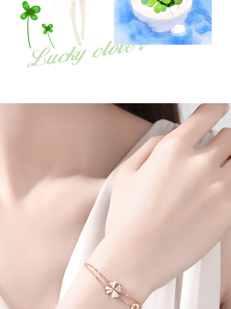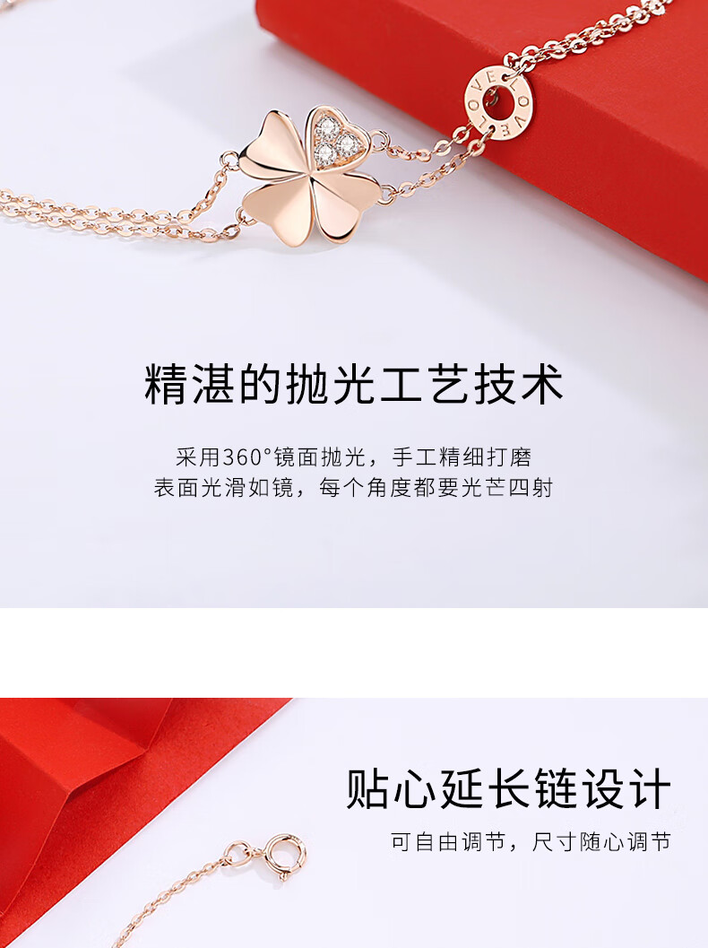 Duchen Light Luxury Four Leaf Clover 18k Gold Bracelet Girls High Quality Hand Jewelry Valentine's Day Birthday Gift for Girlfriend and Wife 1