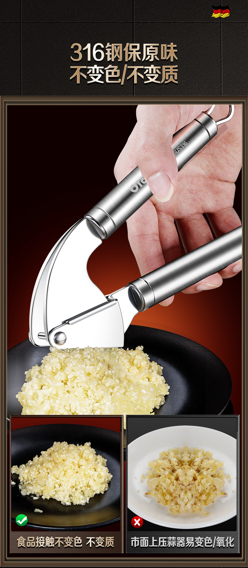 Olodo 316 stainless steel garlic press household garlic smasher garlic masher hand pressed garlic artifact garlic beater 316 stainless steel garlic press + free 304 garlic scraper