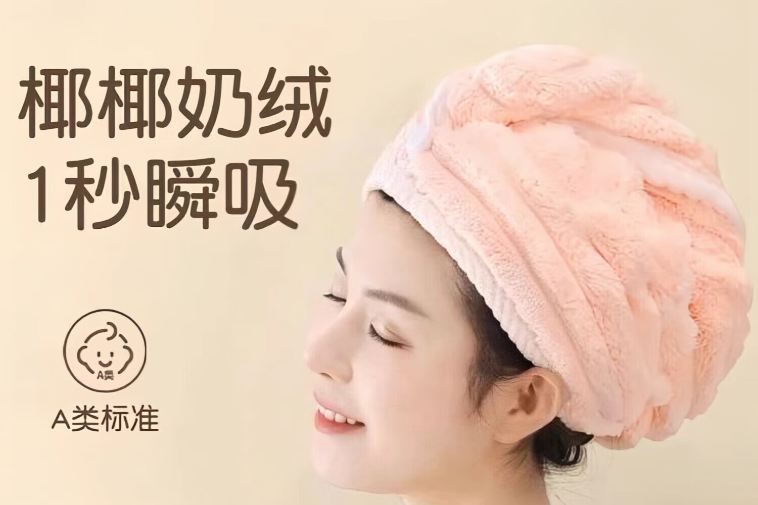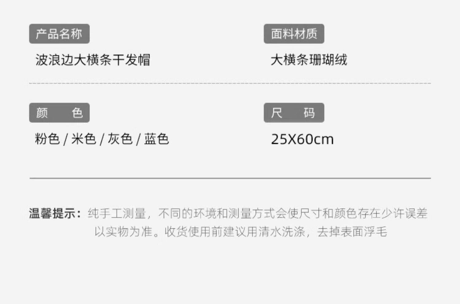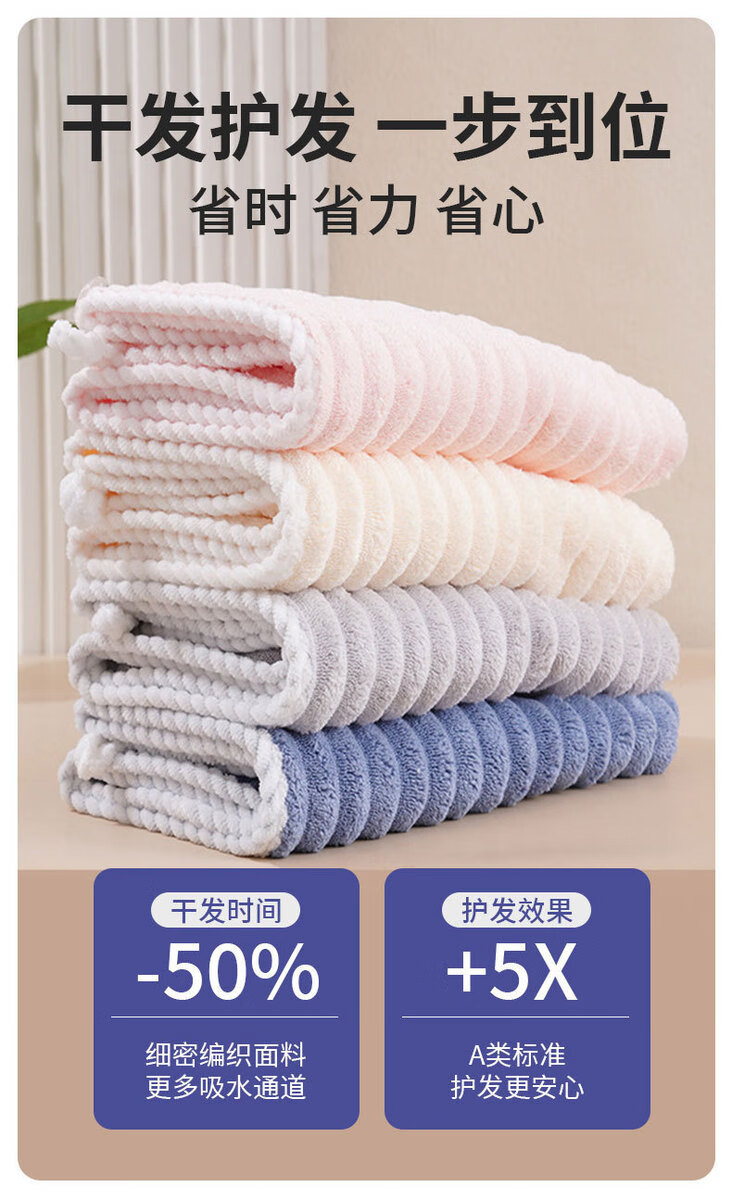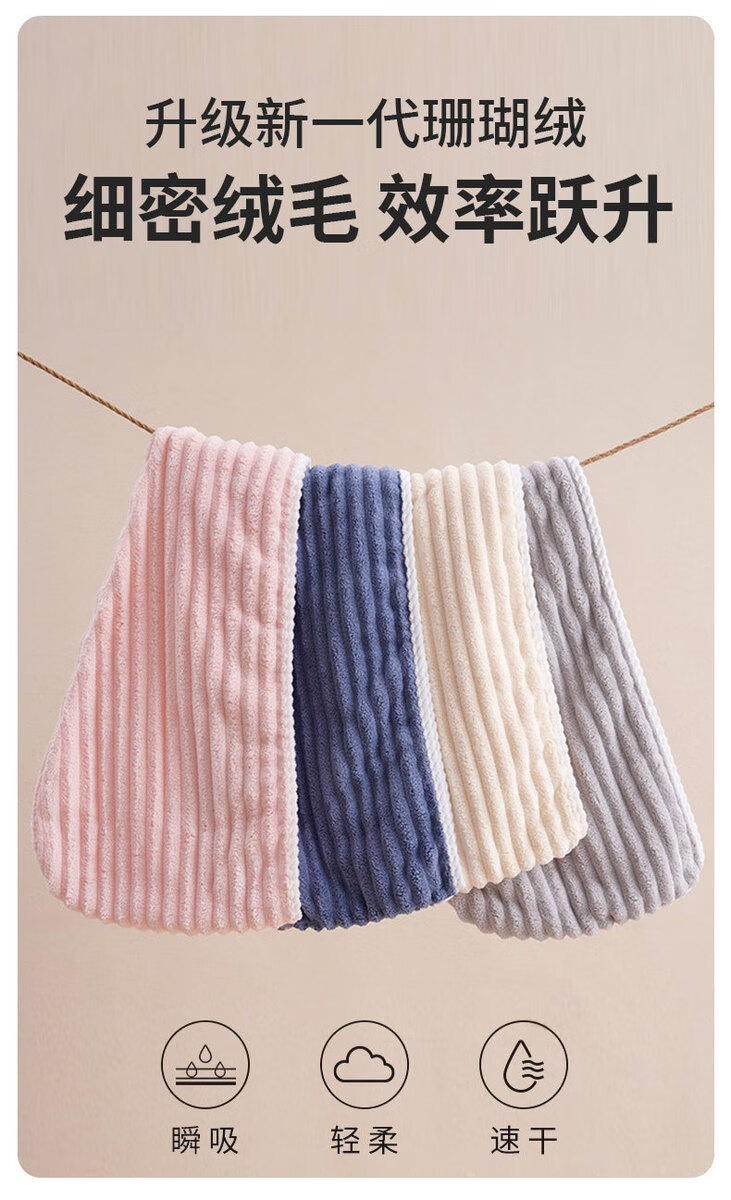 Dry hair cap, thickened and super absorbent, children's shampoo and wiping hair, quick-drying hair towel, coral velvet, thickened wavy pattern, coconut white, 1 pack 26*65cm