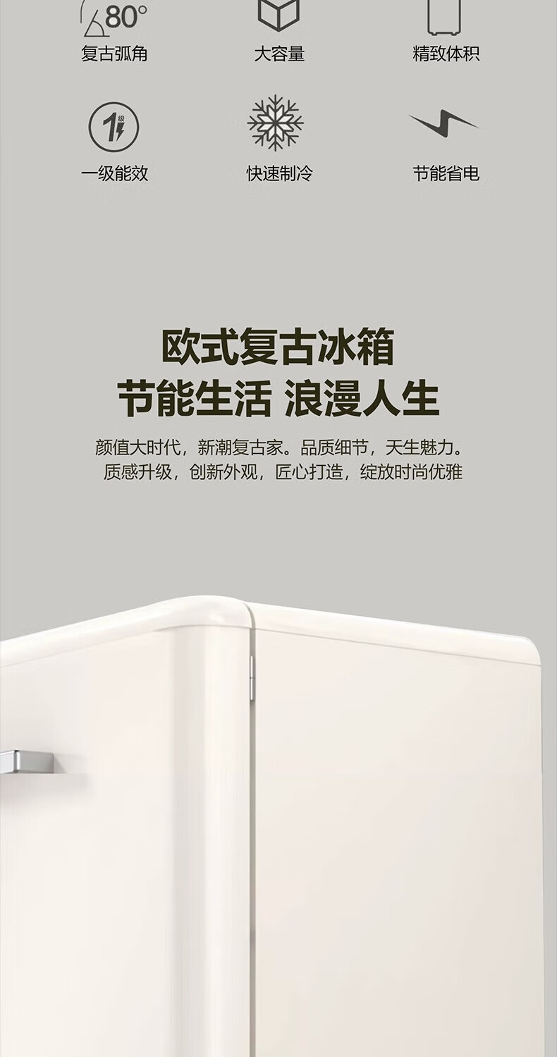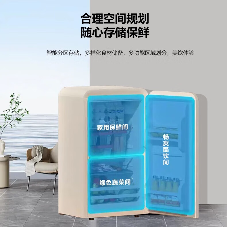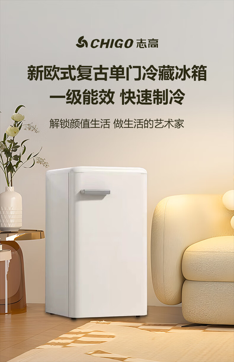 CHIGO first-level energy efficiency new European retro mini double-door refrigerator low energy consumption silent household small refrigerator living room rental dormitory moisture-proof refrigeration freezing energy saving 92 retro white single refrigeration only about one kilowatt hour in three days + light energy saving