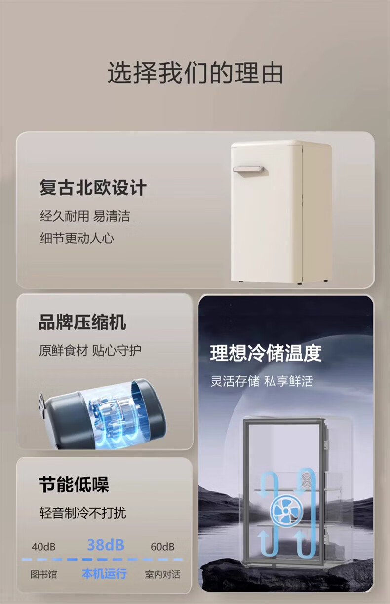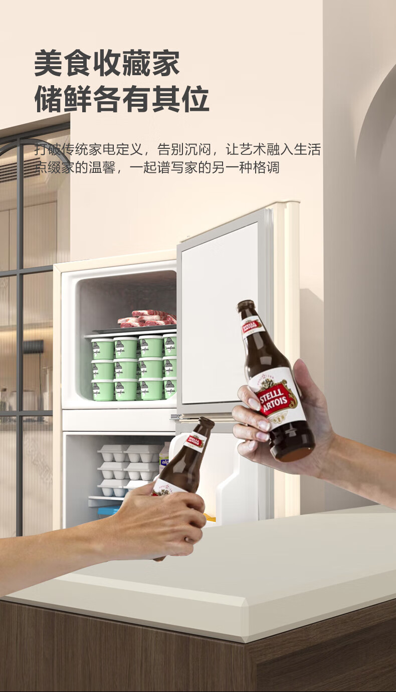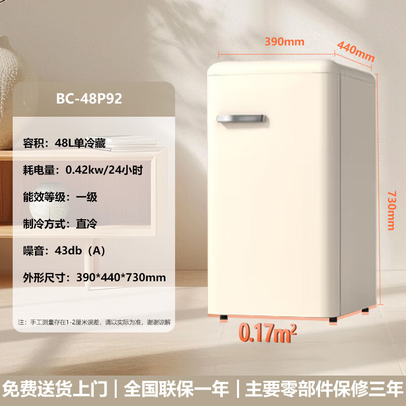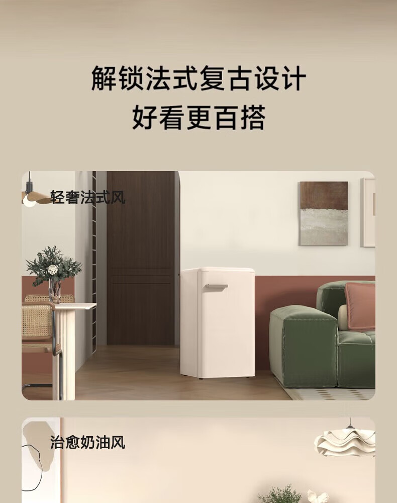 CHIGO first-level energy efficiency new European retro mini double-door refrigerator low energy consumption silent household small refrigerator living room rental dormitory moisture-proof refrigeration freezing energy saving 92 retro white single refrigeration only about one kilowatt hour in three days + light energy saving